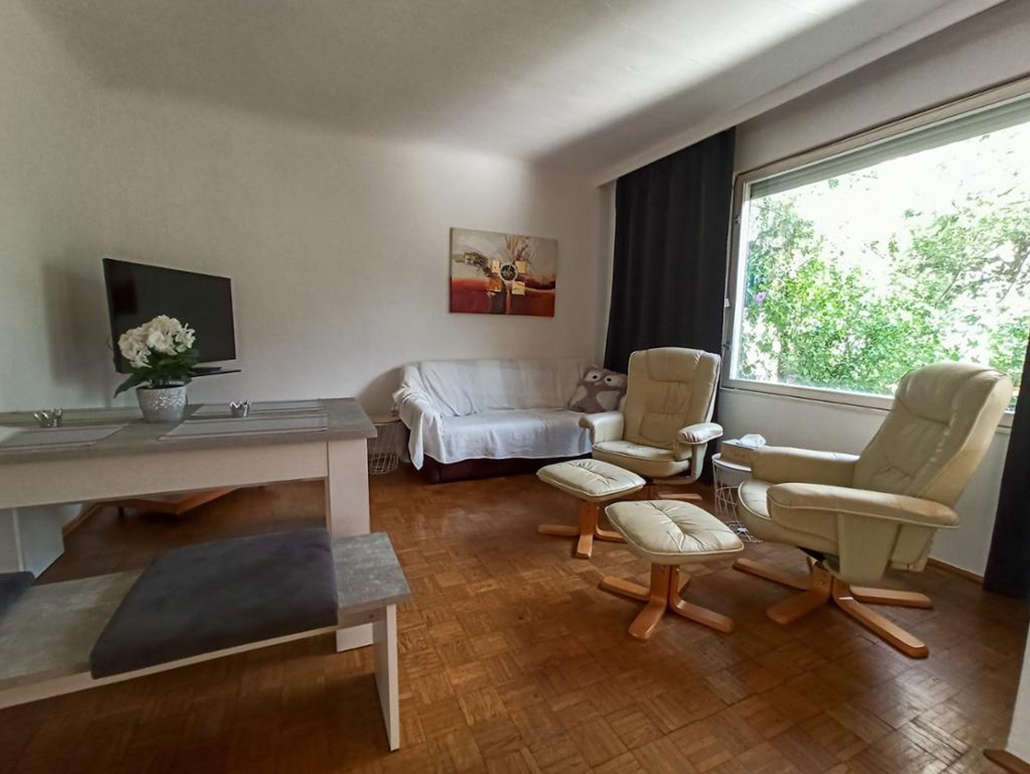 Im Wohnzimmer befindet sich eine ausziehbare Couch und bequeme Sesseln. Der Fernseher verfügt über Satelliten TV.