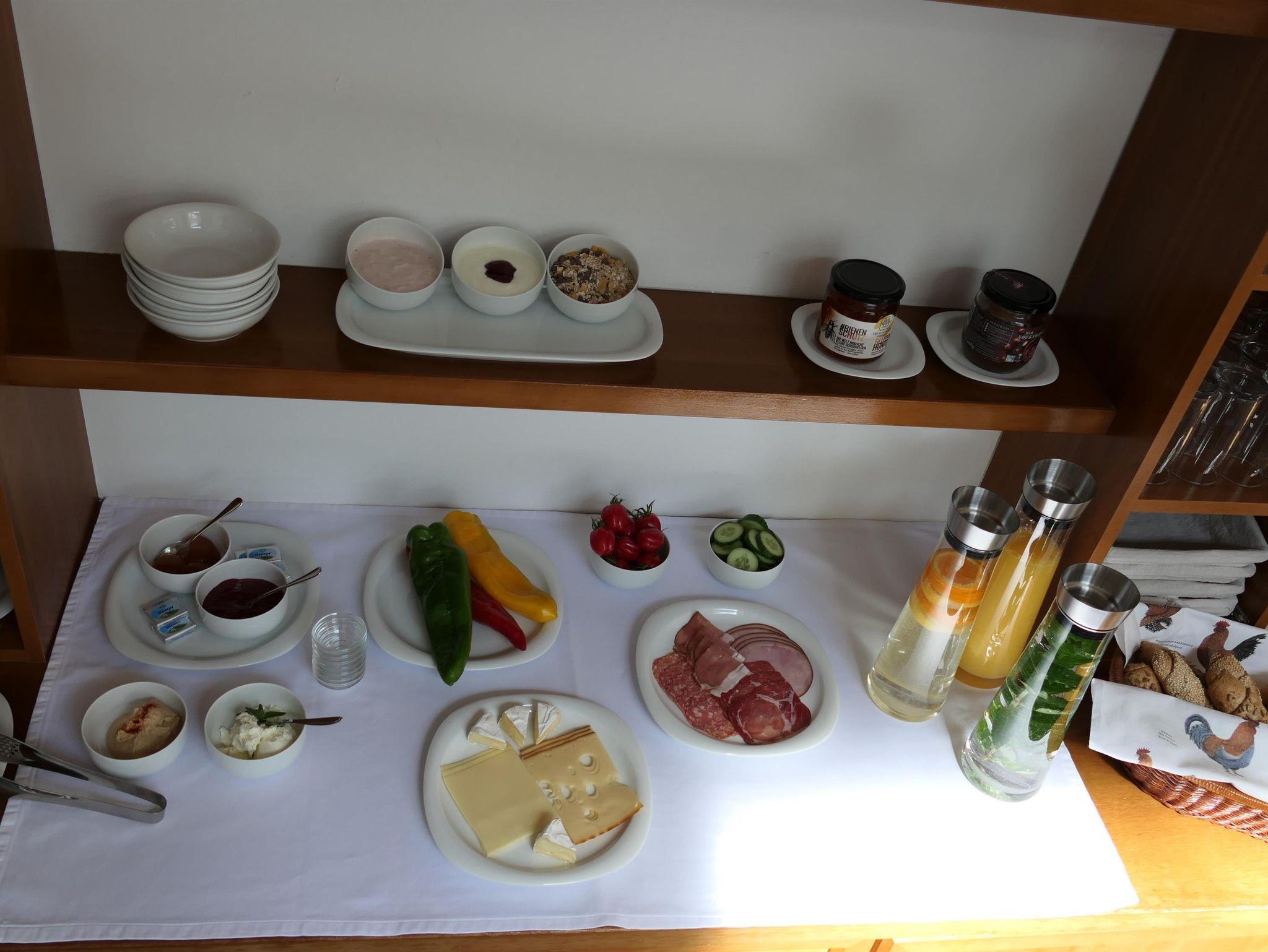 Starten Sie den Tag mit einem köstlichen Frühstücksbuffet, das im einladenden Frühstücksraum serviert wird, oder genießen Sie es im gemütlichen Innenhof!