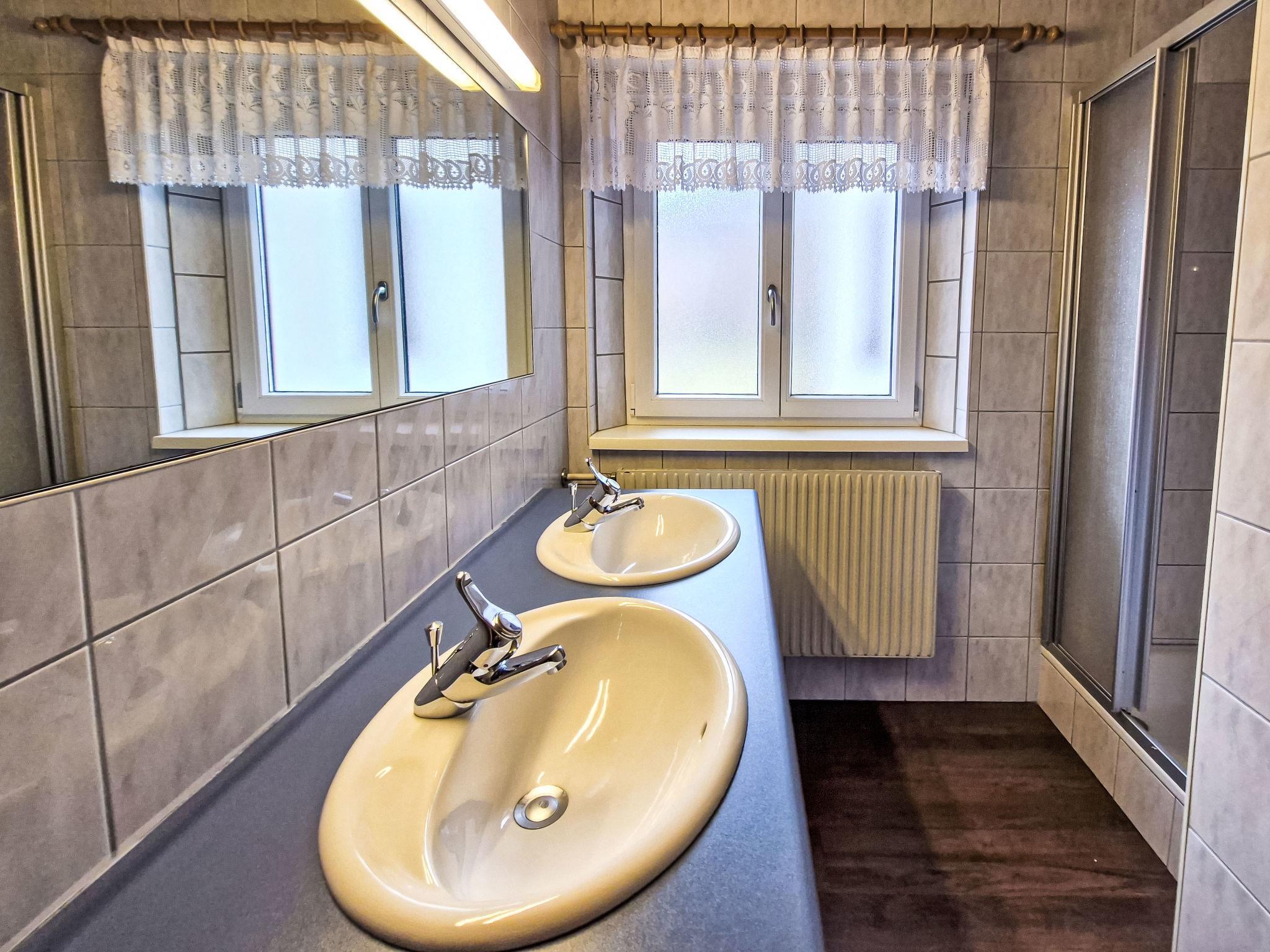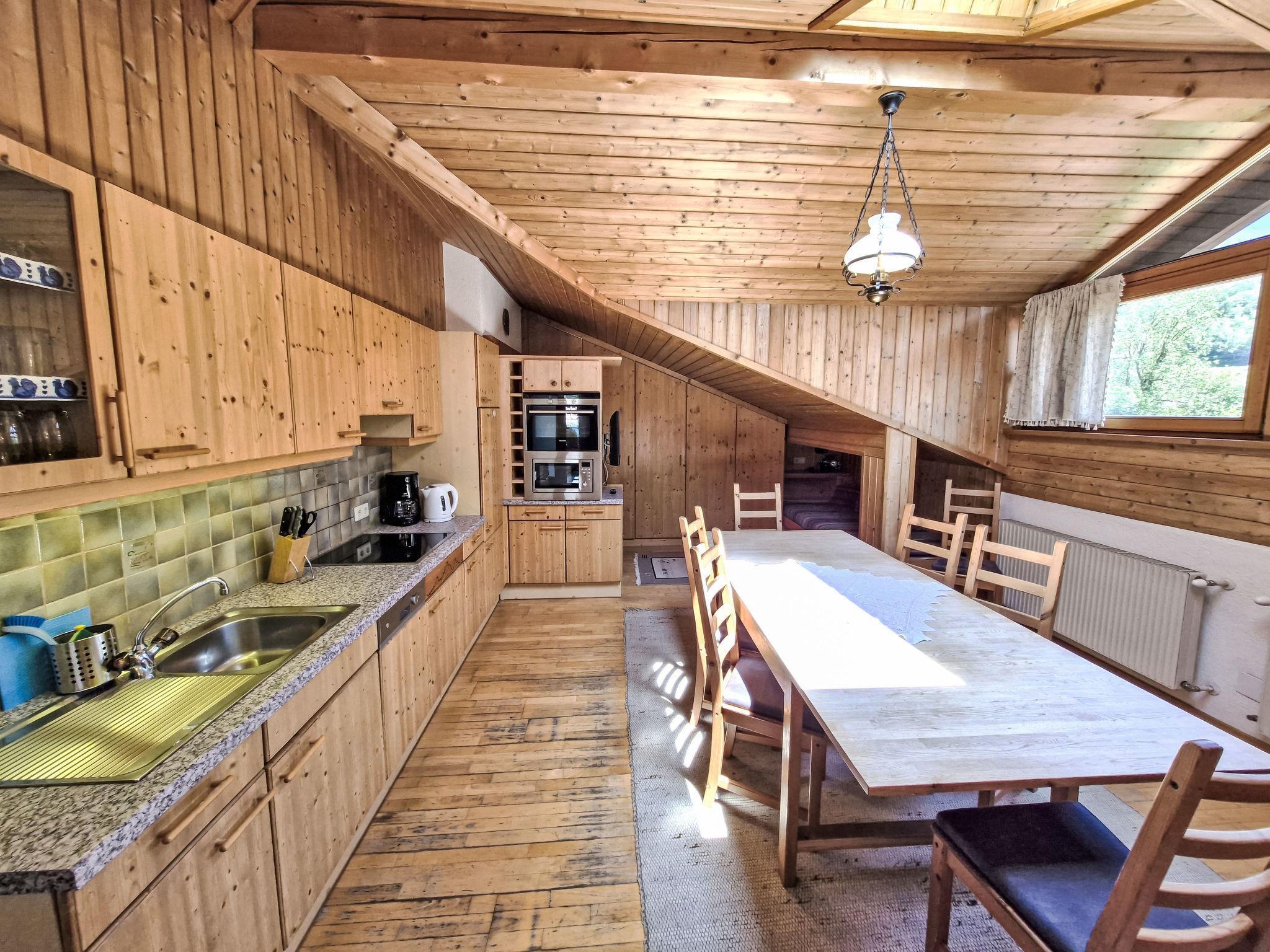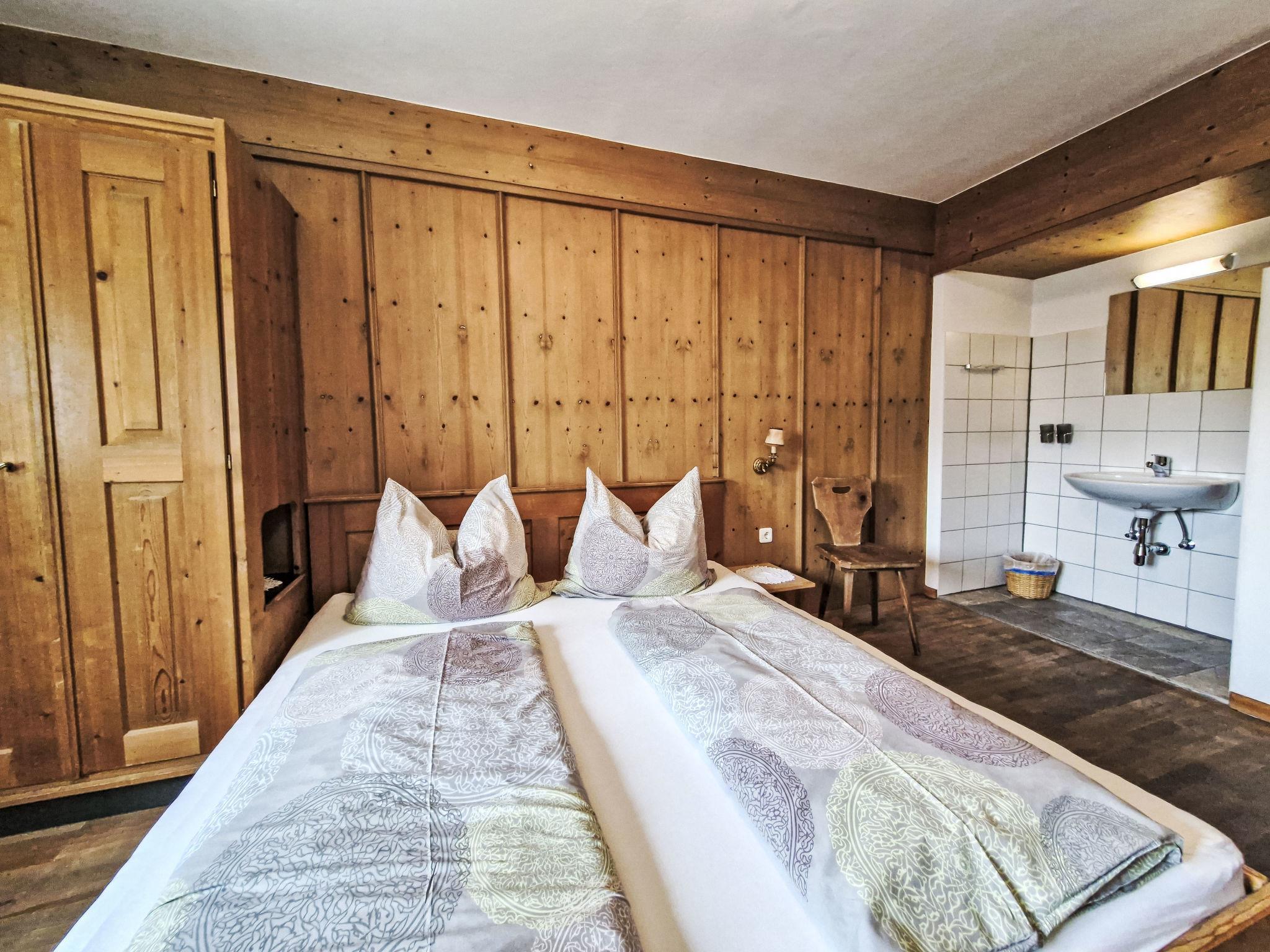 "Leo", 5-room apartment 115 m2 on 2nd floor, south-east facing position. Cosy and wooden furniture furnishings: small living room with satellite TV. 2 double bedrooms, each room with hand-basin. 1 room with 1 bed, 1 double bed and hand-basin. With sloping ceilings kitchen-/living room (4 hot plates, oven, dishwasher, toaster, kettle, microwave, electric coffee machine) with 1 bed, dining table, satellite TV, radio and CD-player. Exit to the balcony. 2 showers/WC, sep. WC, double hand-basin. Heating. Parquet floors. Balcony. Balcony furniture, barbecue. View of the mountains. Facilities: children's high chair, baby cot. Internet (WiFi, free). Please note: private entrance, smoke alarm.