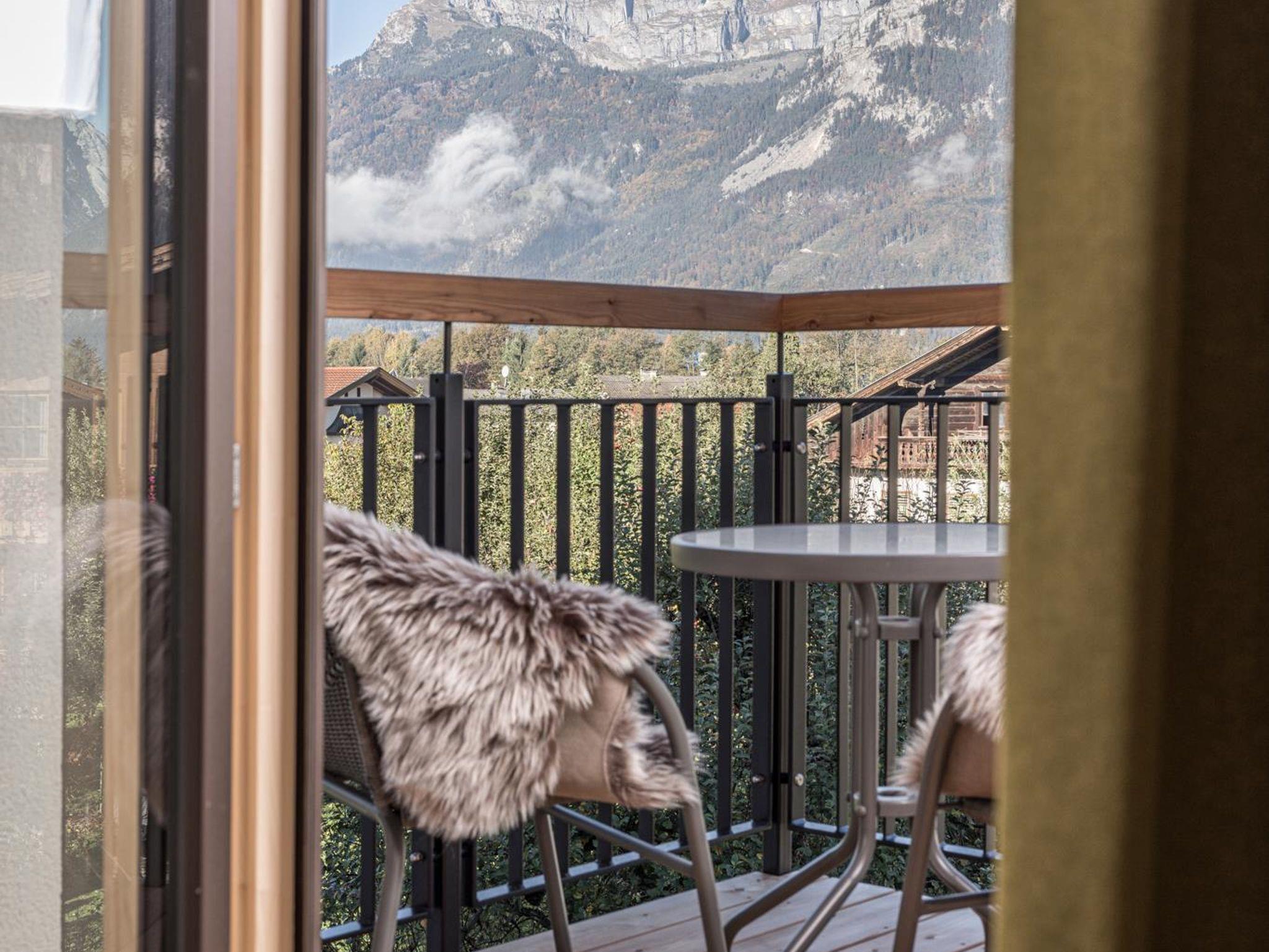Das Appartement Freude befindet sich im 2. Obergeschoss und verfügt über 35m2 und bietet Platz für bis zu zwei Personen. Das modern eingerichtete Appartement hat einen Blick auf das Sonnwendjoch.