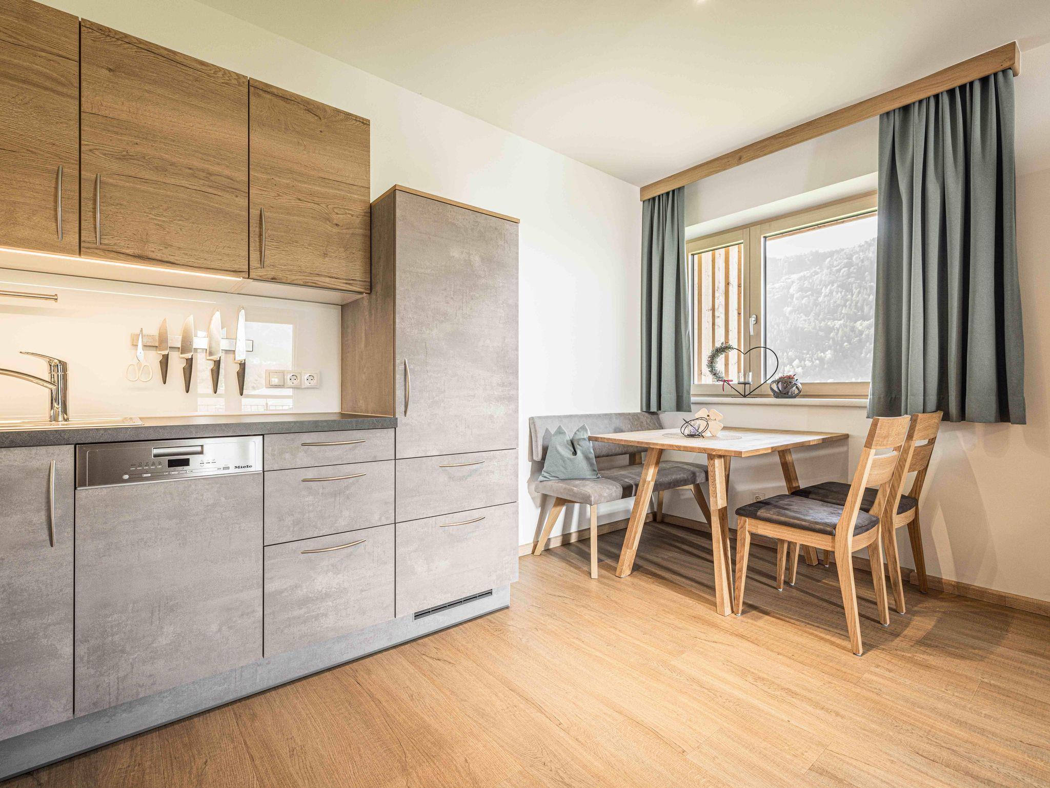 Das Appartement Glück befindet sich im 2. Obergeschoss und verfügt über 47m2 und bietet Platz für bis zu vier Personen. Das modern eingerichtete Appartement mit Blick auf den Rattenberger Schlossberg sowie das Inntal verfügt über ein Schlafzimmer mit einem großzügigen Doppelbett und einem Wohn - Essbereich. Die Küche ist voll ausgestattet mit einer Nespresso Maschine, Wasserkocher, Kühlschrank mit Gefrierfach, Backofen, 4- Platten Cerankochfeld, Geschirrspüler, Kochuntensilien und Geschirrtücher. TV Geräte finden Sie im Wohn - Essbereich wie auch im Schlafzimmer vor. Ebenfalls bietet das Appartement eine gemütliche Essecke sowie ein Sofa mit Ausziehfunktion an.