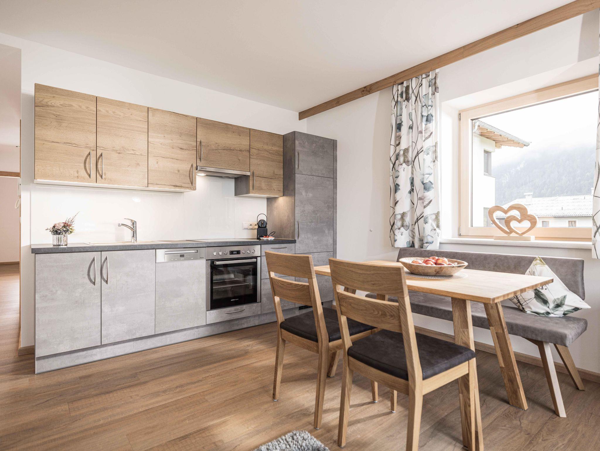 Das Appartement Zuversicht befindet sich im 3. Obergeschoss (47m2) und bietet Platz für bis zu vier Personen. Das moderne Appartement mit Blick auf den Rattenberger Schlossberg sowie das Inntal verfügt über zwei getrennte Schlafzimmer mit einem großzügigen Doppelbett sowie einem Stockbett und einem Wohn - Essbereich. Die Küche ist voll ausgestattet: Nespresso Maschine, Wasserkocher, Kühlschrank mit Gefrierfach, Backofen, 4- Platten Cerankochfeld, Geschirrspüler, Kochuntensilien und Geschirrtücher. TV Geräte finden Sie im Wohn - Essbereich wie auch in den Schlafzimmern vor. Ebenfalls bietet das Appartement eine gemütliche Essecke sowie ein Sofa an.