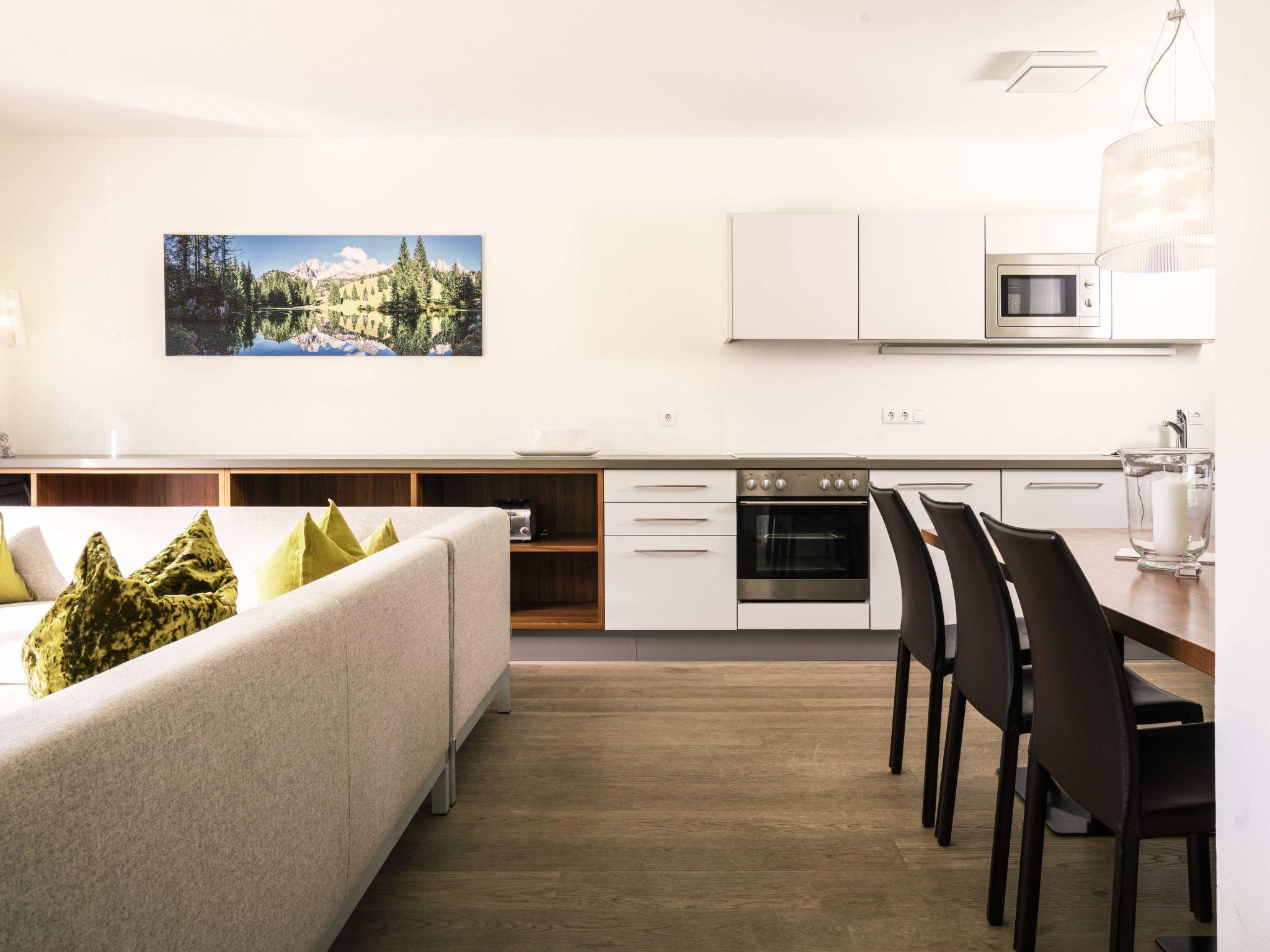 Radstadt: Modern resort "Tauernresidence by Alps Resorts". 5 km from the centre, in a quiet, sunny position, 1.7 km from the skiing area, in the countryside. For shared use: swimming pool (seasonal availability: 13.May. and 11.Sep.). In the house: sauna, fitness room, steam room, infrared sauna, spa area for shared use, central heating system. Parking at the house. E-charging station. Supermarket 500 m, restaurant 500 m, outdoor swimming pool 3.3 km, thermal baths "Therme Amadé" 6 km. Golf course (18 hole) 50 m, skisport facilities 1.7 km. Nearby attractions: Dachstein 30 km, Salzbergwerk 58 km, Hallstatt 63 km, Lichtensteinklamm 25 km, Stadt Salzburg 70 km, Eisriesenwelt 35 km. Well-known ski regions can easily be reached: Skischaukel Radstadt Altenmarkt 1.7 km. Hiking paths: Fageralm 2 km. The photo is just an example.