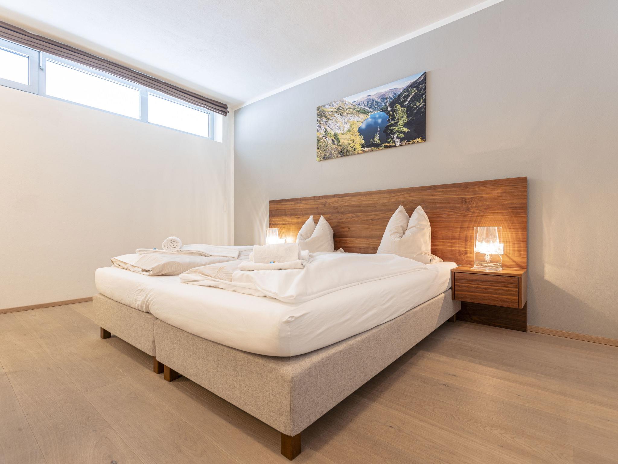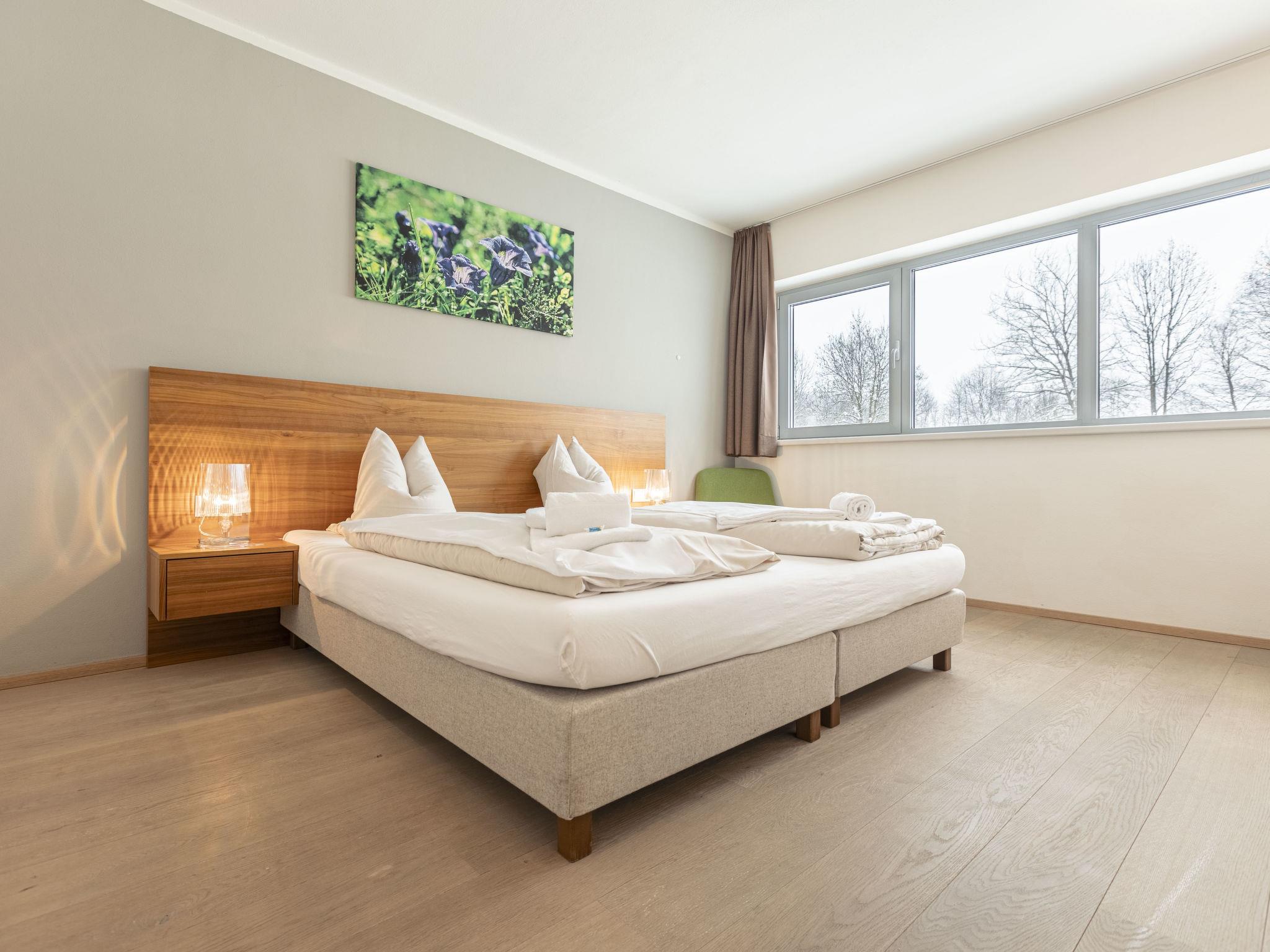 "Penthouse mit 3 Schlafzimmern & Pool", 4-room apartment 118 m2. Bright, comfortable and tasteful furnishings: open living/sleeping room with 1 double sofabed, dining table, satellite TV and flat screen. 1 double bedroom with shower/WC. 1 room with 2 beds. 1 double bedroom with shower. Open kitchen (oven, dishwasher, 4 ceramic glass hob hotplates, microwave, electric coffee machine, Capsules for coffee machine (Nespresso) extra). Sep. WC. Balcony. Balcony furniture. Beautiful view of golf course. Facilities: Internet (WiFi, free). Parking, garage. Please note: non-smokers only. Maximum 1 pet/ dog allowed. The property is one of a type of property or apartment. 50417-000027-2020