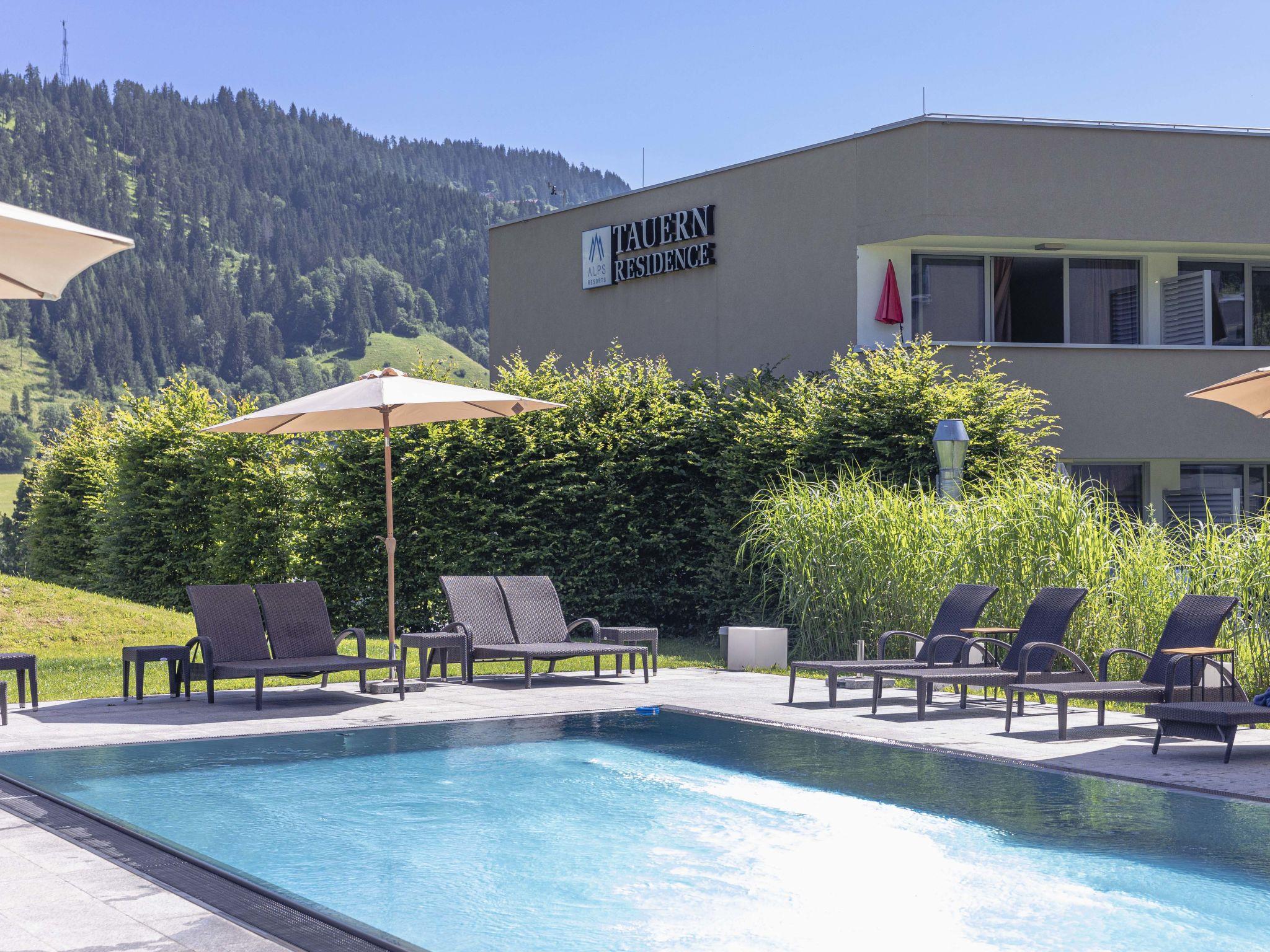 Radstadt: Modern resort "Tauernresidence by Alps Resorts". 5 km from the centre, in a quiet, sunny position, 1.7 km from the skiing area, in the countryside. For shared use: swimming pool (seasonal availability: 13.May. and 11.Sep.). In the house: sauna, fitness room, steam room, infrared sauna, spa area for shared use, central heating system. Parking at the house. E-charging station. Supermarket 500 m, restaurant 500 m, outdoor swimming pool 3.3 km, thermal baths "Therme Amadé" 6 km. Golf course (18 hole) 50 m, skisport facilities 1.7 km. Nearby attractions: Dachstein 30 km, Salzbergwerk 58 km, Hallstatt 63 km, Lichtensteinklamm 25 km, Stadt Salzburg 70 km, Eisriesenwelt 35 km. Well-known ski regions can easily be reached: Skischaukel Radstadt Altenmarkt 1.7 km. Hiking paths: Fageralm 2 km. The photo is just an example.