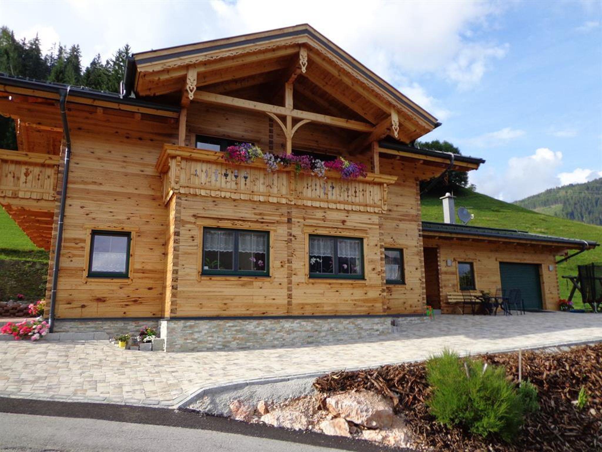 Unser neuerrichtetes Kiefernholzhaus liegt auf einer Anhöhe neben unserem Bauernhof, mit traumhaftem Blick auf die Schladminger Tauern und den Dachstein.