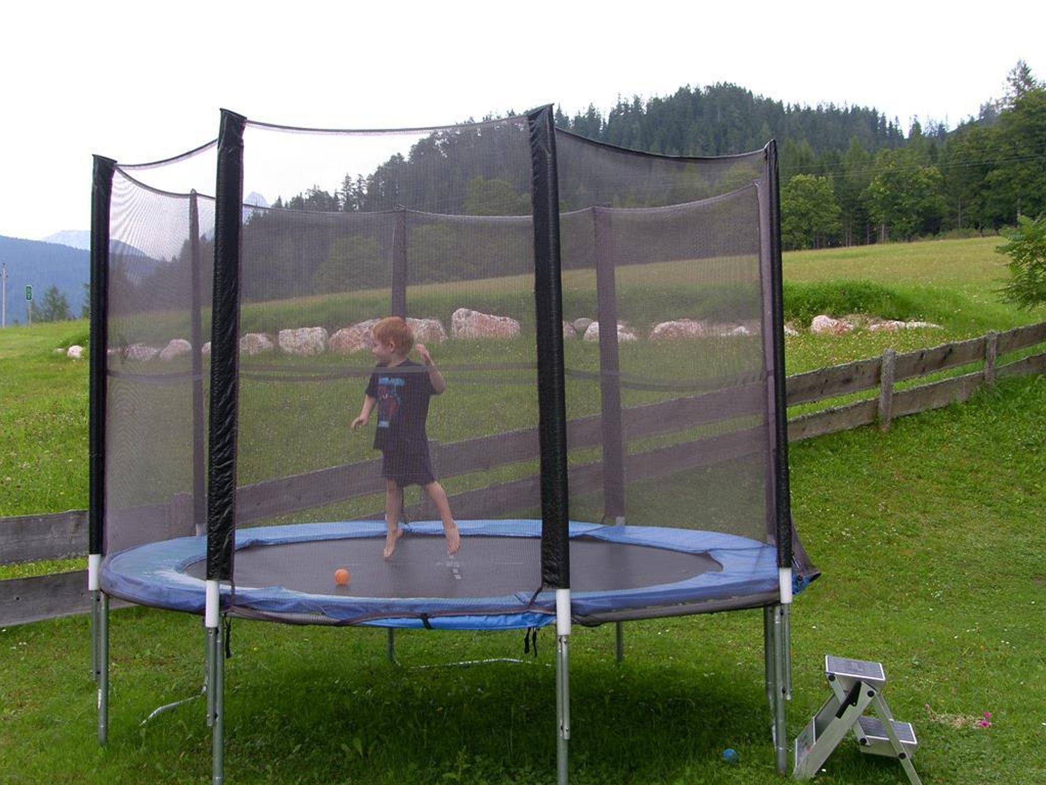 • Kleiner Spielplatz mit Rutsche, Schaukel, Trampolin, Fußballtore