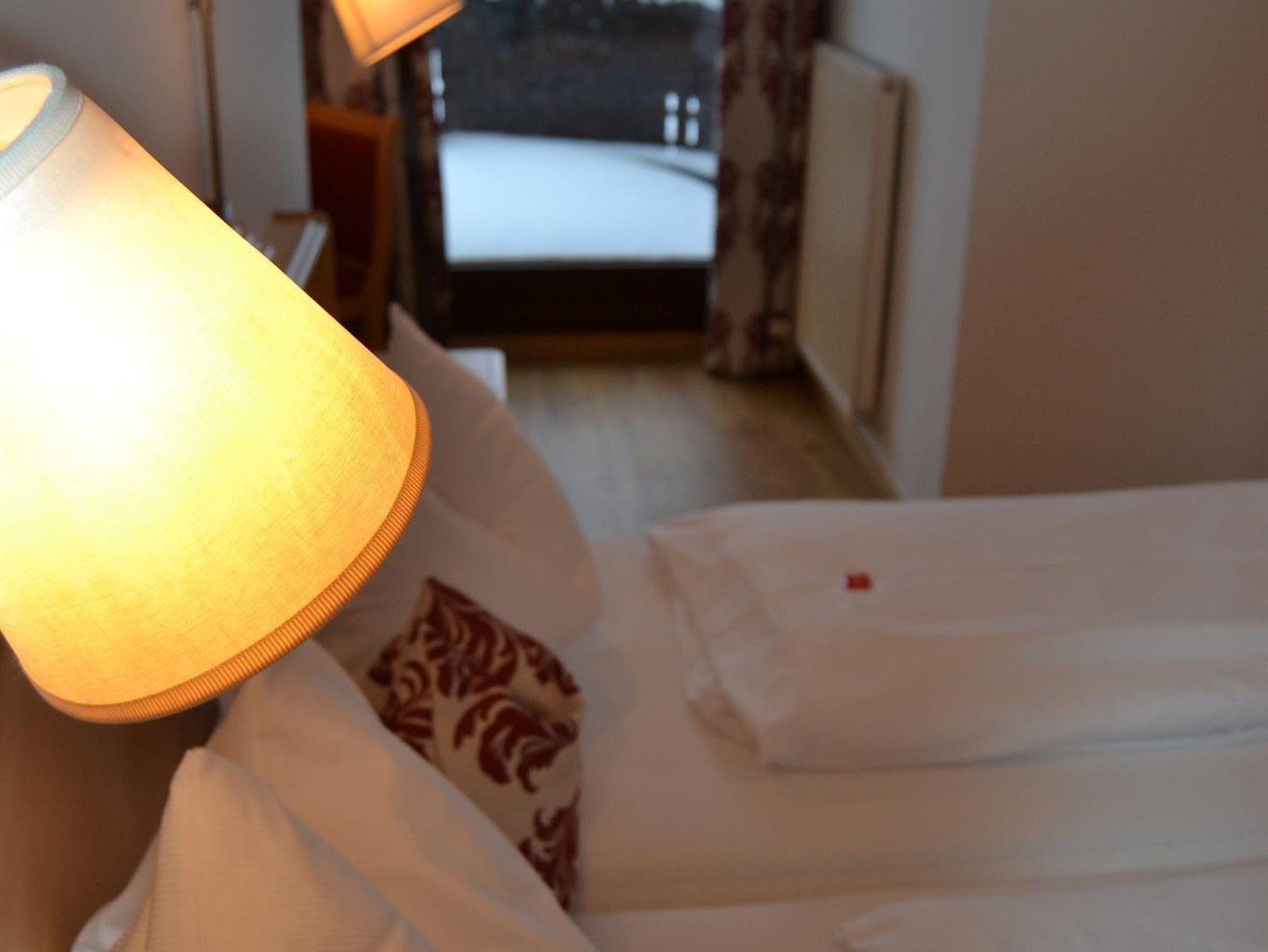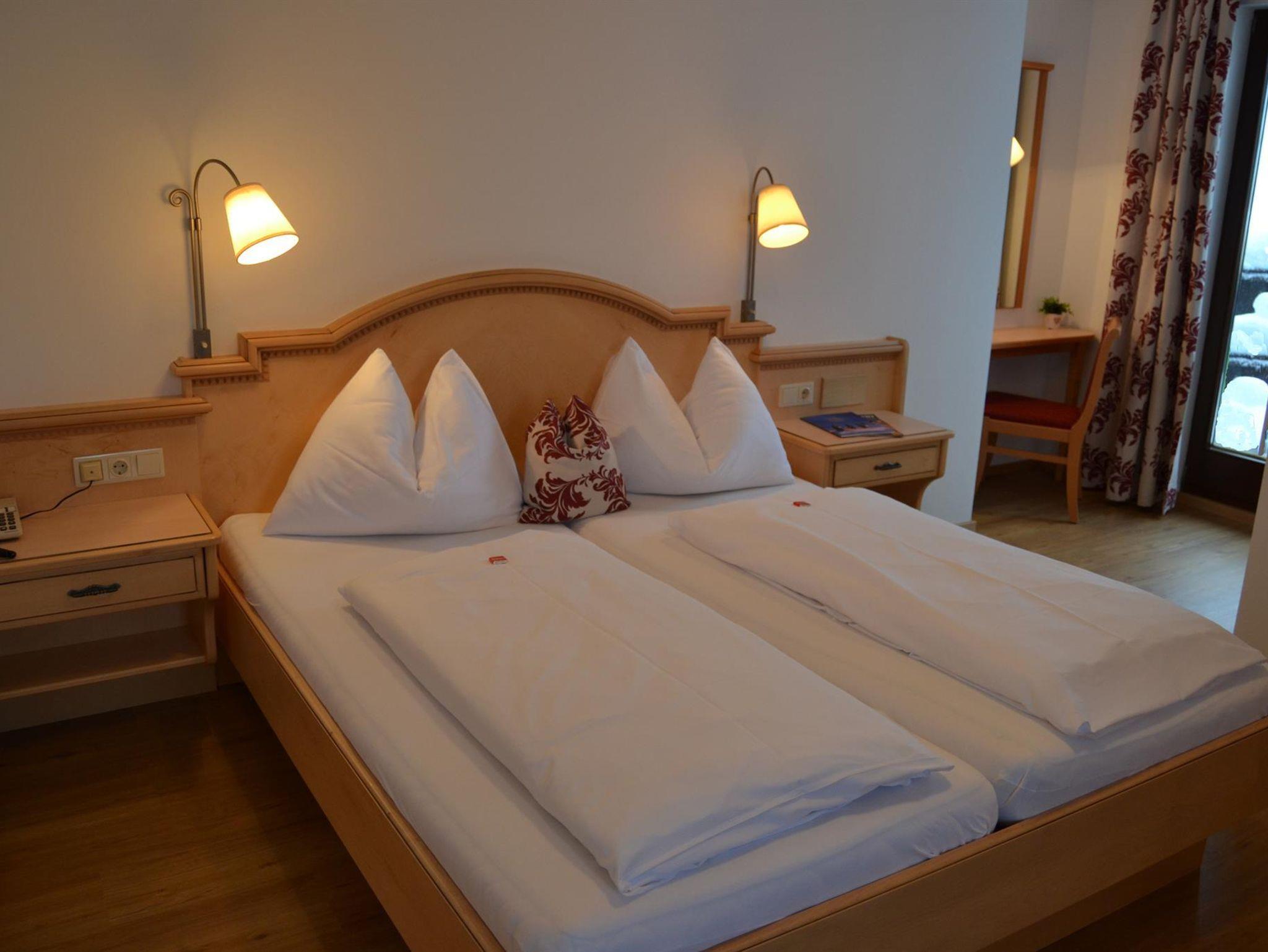 In einigen unserer Doppelzimmer befindet sich ein drittes Bett. Ein Doppelzimmer ohne Balkon.