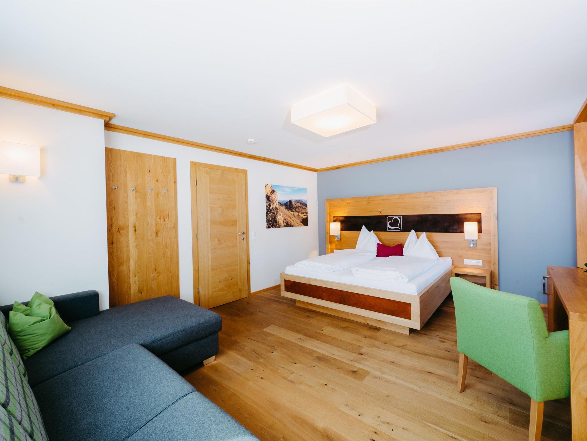 Die NEUE Familiensuite Edelweiß erfüllt alle Ansprüche an einen traumhaften Familienurlaub, geräumig, gemütlich und exklusiv: 40 m², Schlafzimmer mit Schreibtisch, getrennter Wohnraum mit Schlafcouch, Badezimmer mit Dusche, Badewanne, WC getrennt, Kosmetikspiegel, Fön, Handtuchtrockner, Radio, freies WLAN, Flat Kabel TV in jedem Zimmer, Telefon, Safe, Minibar, Balkon mit herrlicher Aussicht.