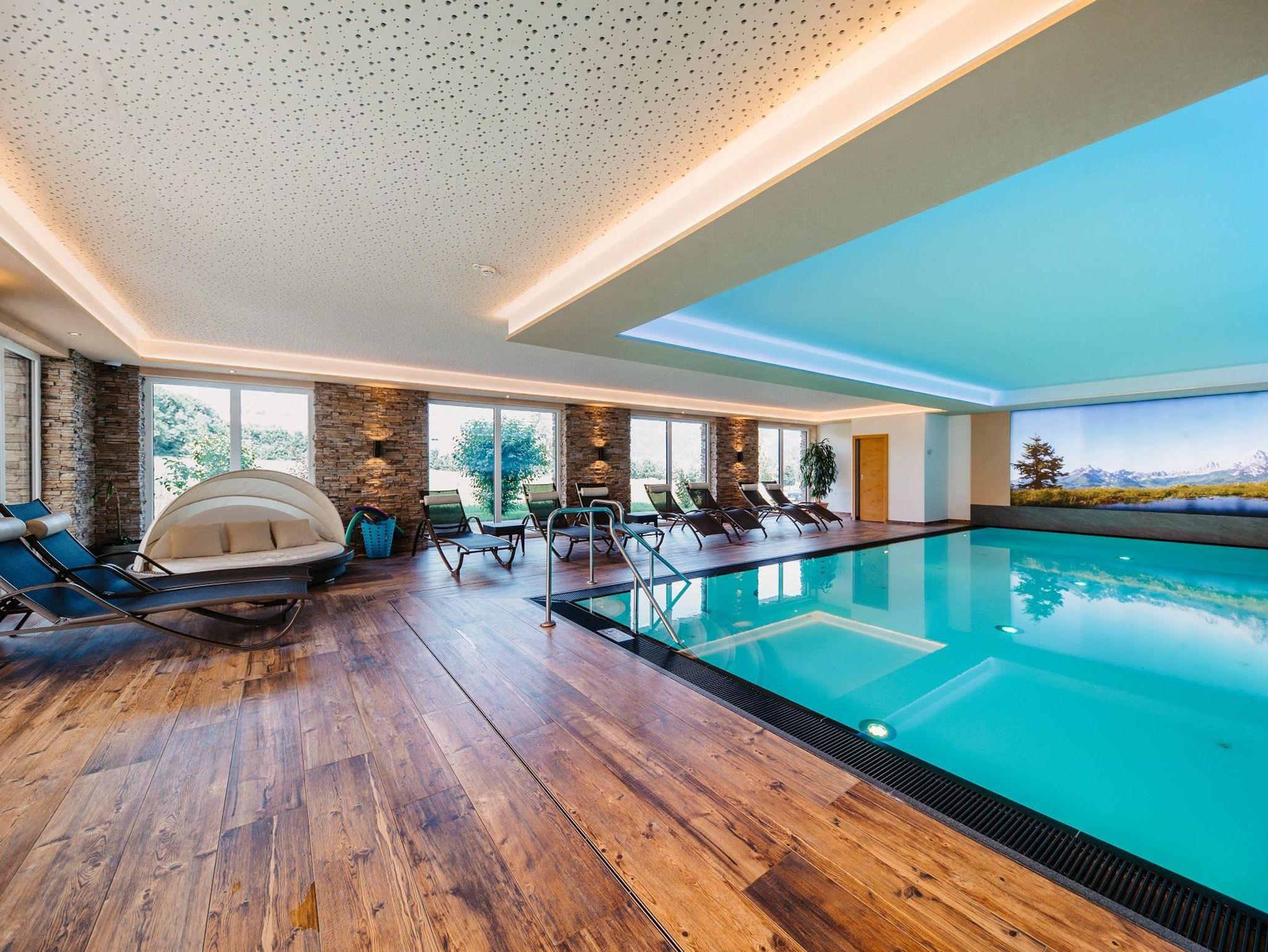 Ausgiebige Entspannung finden Sie im Wellnessbereich mit Hallenbad, Panorama-Sauna, Panorama-Ruheraum sowie Außenpool.