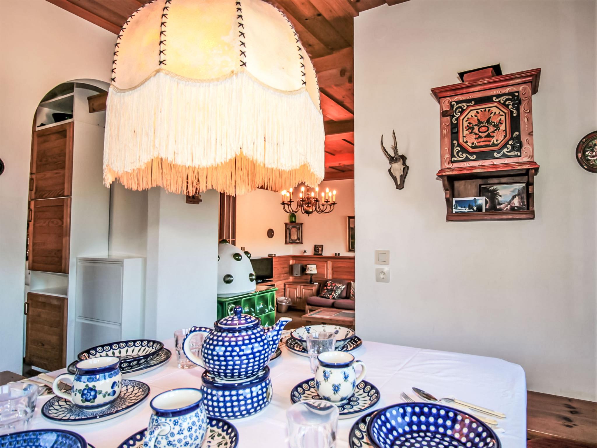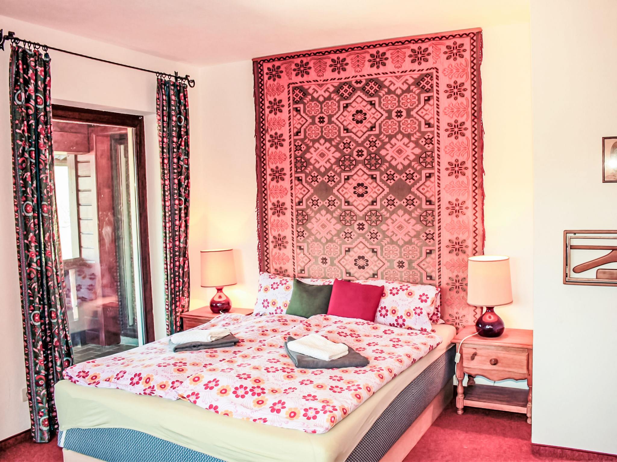 5-room house 150 m2 on 2 levels. Object suitable for 6 adults + 2 children. Simple and cosy furnishings: entrance hall. Large living/dining room with open-hearth fireplace, dining nook and TV. Exit to the terrace. 1 room with 1 french bed (160 cm), shower/WC. Kitchen (oven, dishwasher, 4 ceramic glass hob hotplates, freezer, electric coffee machine). Sep. WC. Upper floor: 1 room with 1 french bed (160 cm), hand-basin. 1 room with 1 french bed (160 cm). 1 children's room with 1 x 2 bunk beds, hand-basin. Bath/shower/WC, Sauna. Large balcony. Balcony furniture. Very beautiful view of the mountains and the ski run. Facilities: children's high chair, baby cot for up to 3 year olds, hair dryer. Internet (WiFi). Please note: non-smokers only. Maximum 2 pets/ dogs allowed.