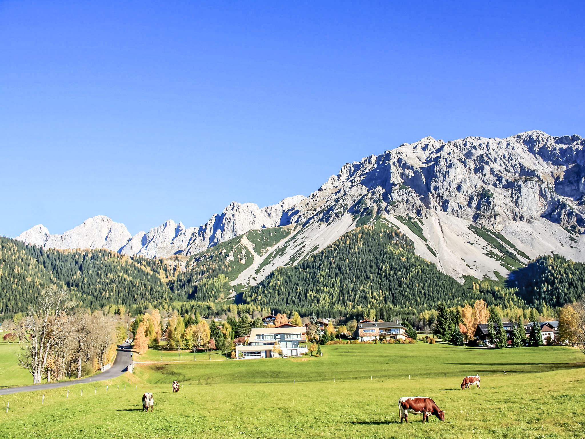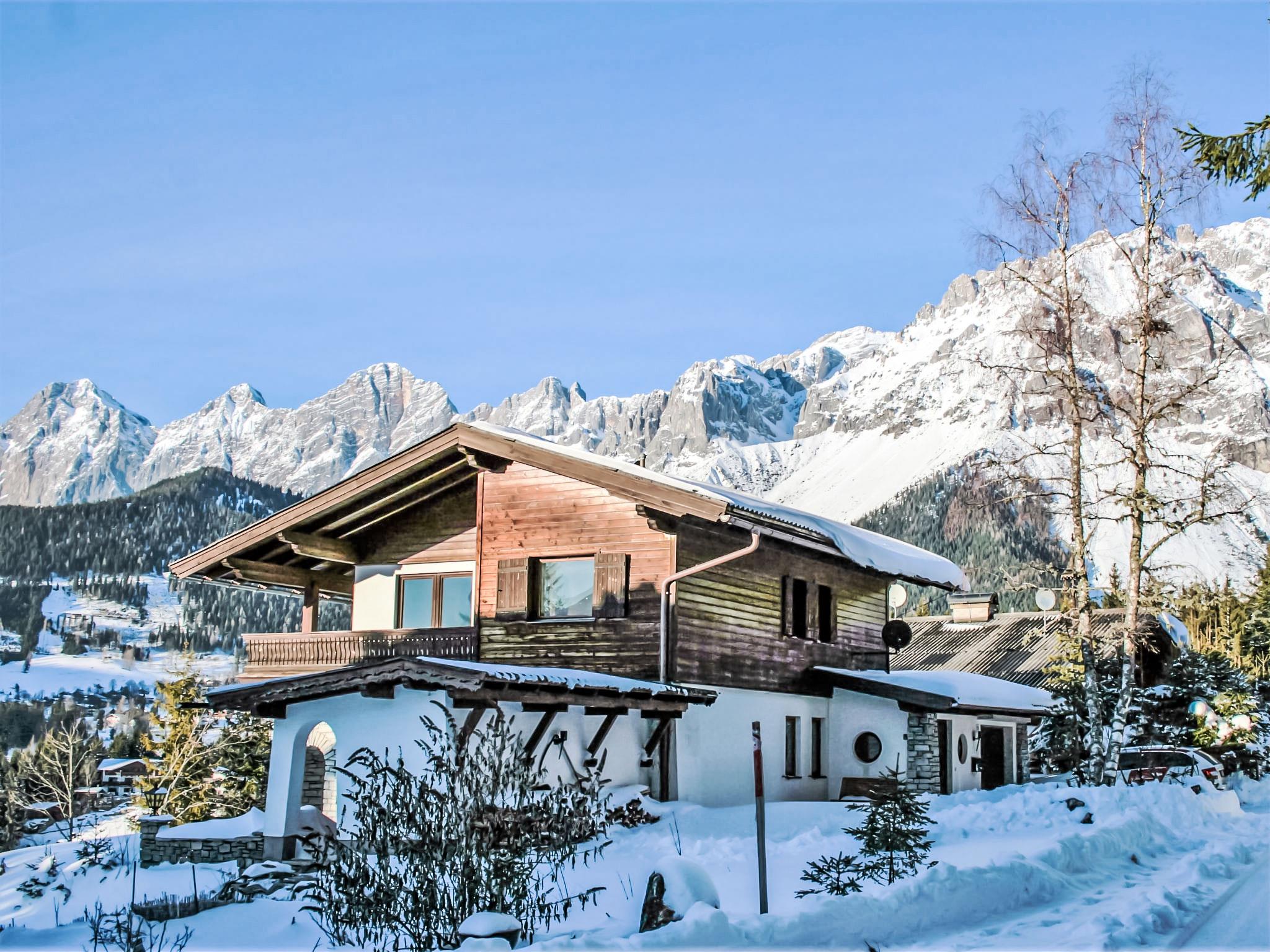 Ramsau am Dachstein: Cosy, comfortable country house "Berghaus Weitblick". In the district of Vorberg, 2.3 km from the centre, in a quiet position on a slope, 2.4 km from the lake, 1.2 km from the skiing area, in the countryside. Private: natural state property 1'300 m2 with lawn for sunbathing. Terrace, garden furniture, barbecue, fireplace. In the house: WiFi, sauna, storage room for skis, washing machine. Narrow motor access to the house. In Winter: please take snow chains. Parking (for 3 cars) on the premises. Shop 2 km, restaurant 900 m, bus stop "Ramsau Vorberg Panorama" 550 m, bathing lake "Ramsau Beach" 2.4 km. Riding stable 2 km, sports centre 3.2 km, walking paths from the house 1 m, ski lift 1.4 km, gondola lift 10 km, ski rental 2 km, ski bus stop 300 m, ski school 1.4 km, cross country ski track 350 m. Nearby attractions: nordisches Leistungszentrum Ramsau 3.2 km, Dachstein Gletscherbahn 9 km. Well-known ski regions can easily be reached: Hauser Kaibling 8 km, Schladming Planai 10 km, Dachstein 9 km. Hiking paths: Fageralm, Reiteralm.