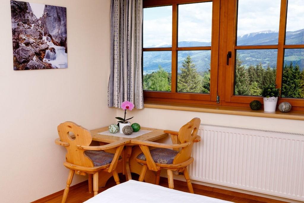 Vores landsted Birgbichler er en ikke-ryger ejendom beliggende i rolige omgivelser i skovbrynet, men centralt beliggende på en af de smukkeste skråninger i Ramsau-Kulm! Ferielejligheden TALBLICK er meget komfortabelt møbleret med massivt grantræ. Fra stuen har du adgang til den dejlige træbalkon og direkte udsigt over bjergene. Du vil helt sikkert føle dig hjemme! Lejligheden har: + stor stue med et smukt tekøkken og et hyggeligt opholdsområde + lyst soveværelse + entré + separat bruser/toilet + dejlig træbalkon med udsigt over bjergene + gratis Wi-Fi overalt + levering af rundstykker efter anmodning + støvlerum med støvlevarmere + skiopbevaring + gratis carport + cykelopbevaring