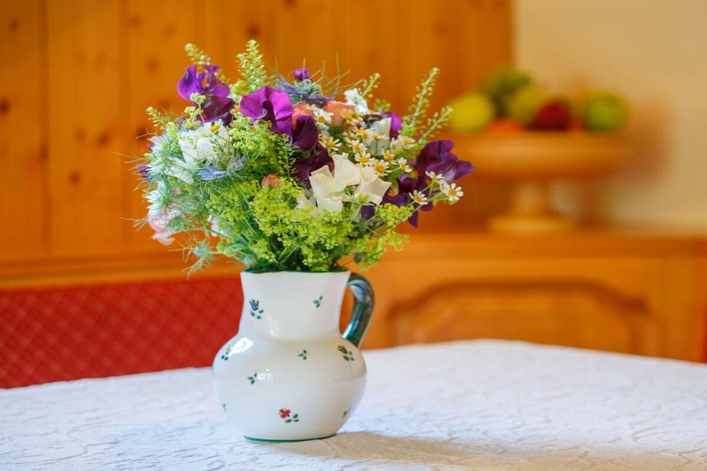 Vores Landhaus Birgbichler - Lejlighed Alpengarten er et ikke-ryger hus beliggende i rolige omgivelser i skovbrynet, men centralt beliggende på en af de smukkeste skråninger i Ramsau-Kulm! Appartement Alpengarten - Landhaus Birgbichler er meget komfortabelt møbleret med massivt grantræ. Stuen åbner direkte ud til haven. Et komfortabelt siddeområde, lænestole og en parasol inviterer dig til at slappe af og nyde naturen! Du vil helt sikkert føle dig hjemme! Lejligheden indeholder: + Stor stue med et dejligt tekøkken og hyggeligt siddeområde + Lyst soveværelse + Entré + Separat bad/toilet + Gratis Wi-Fi overalt + Rundstykkelevering efter anmodning + Støvlerum med støvlevarmere + Skiopbevaring + Gratis carport + Støvlerum med støvlevarmere + Gratis carport + Cykelopbevaring