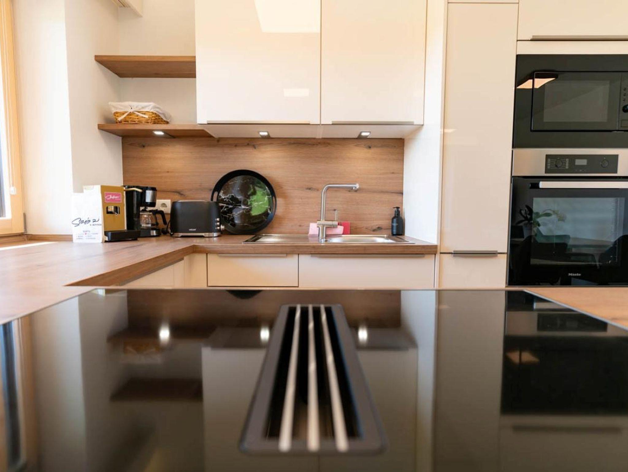88m² / Wohnzimmer / 2 Schlafzimmer / Badezimmer mit Dusche / 3 WCs / Küche mit Miele-Geräten: Geschirrspüler, Mikrowelle, Backrohr, Herd, Kaffeemaschine / Smart TV / W-LAN / Bettwäsche / Handtücher / Loggia 10,83 m² / Balkon 10m²