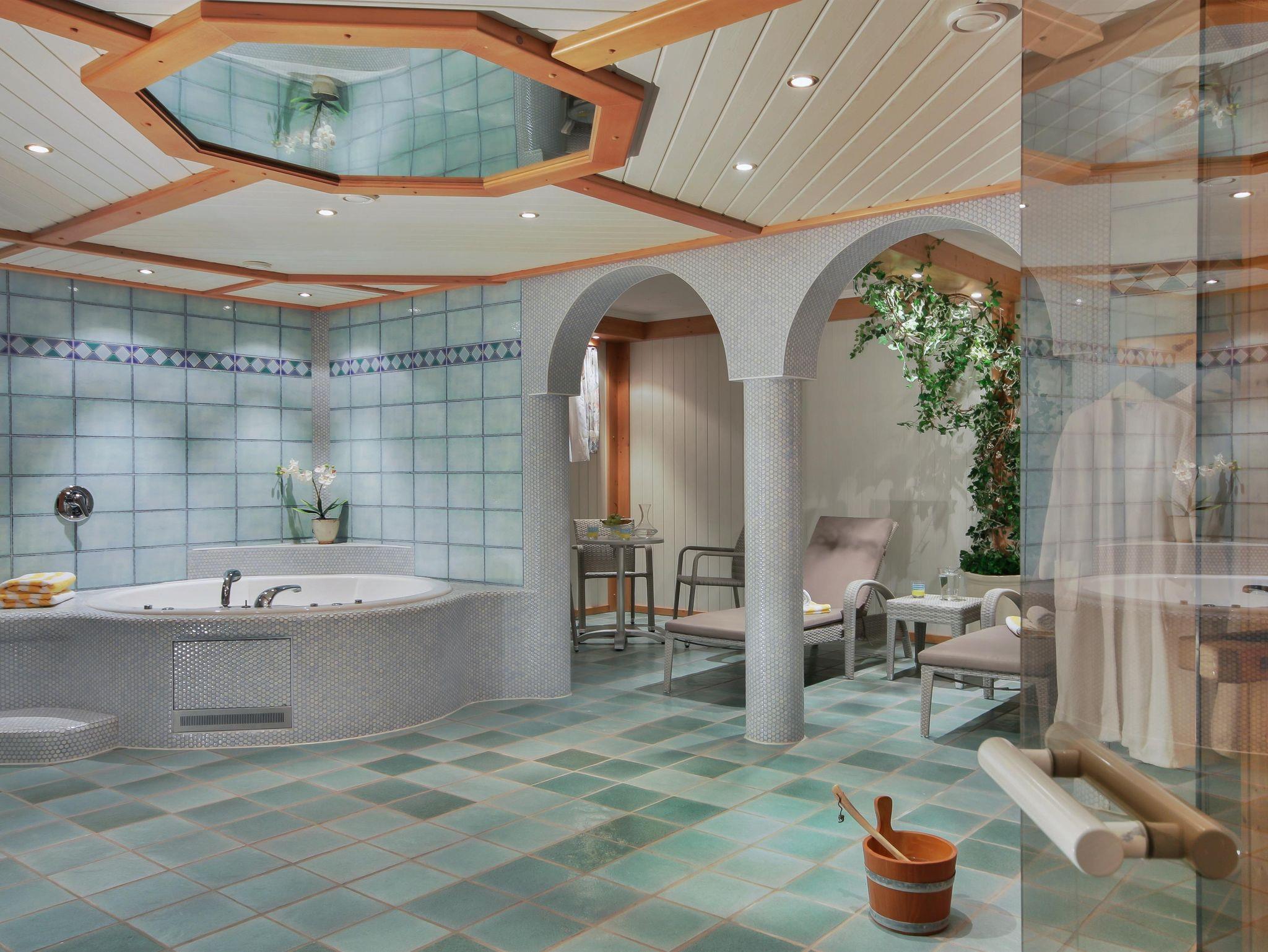 Herrliche Ruhe und Entspannung pur genießen Sie in unserer hauseigenen Saunaoase mit finnischer Sauna, Dampfbad, Whirlpool, Physiotherm-Infrarotkabine und einem Kraft spendenden Ruheraum. Unsere Gäste haben zudem freien Eintritt in das nahegelegene Badeparadies von Ramsau am Dachstein.