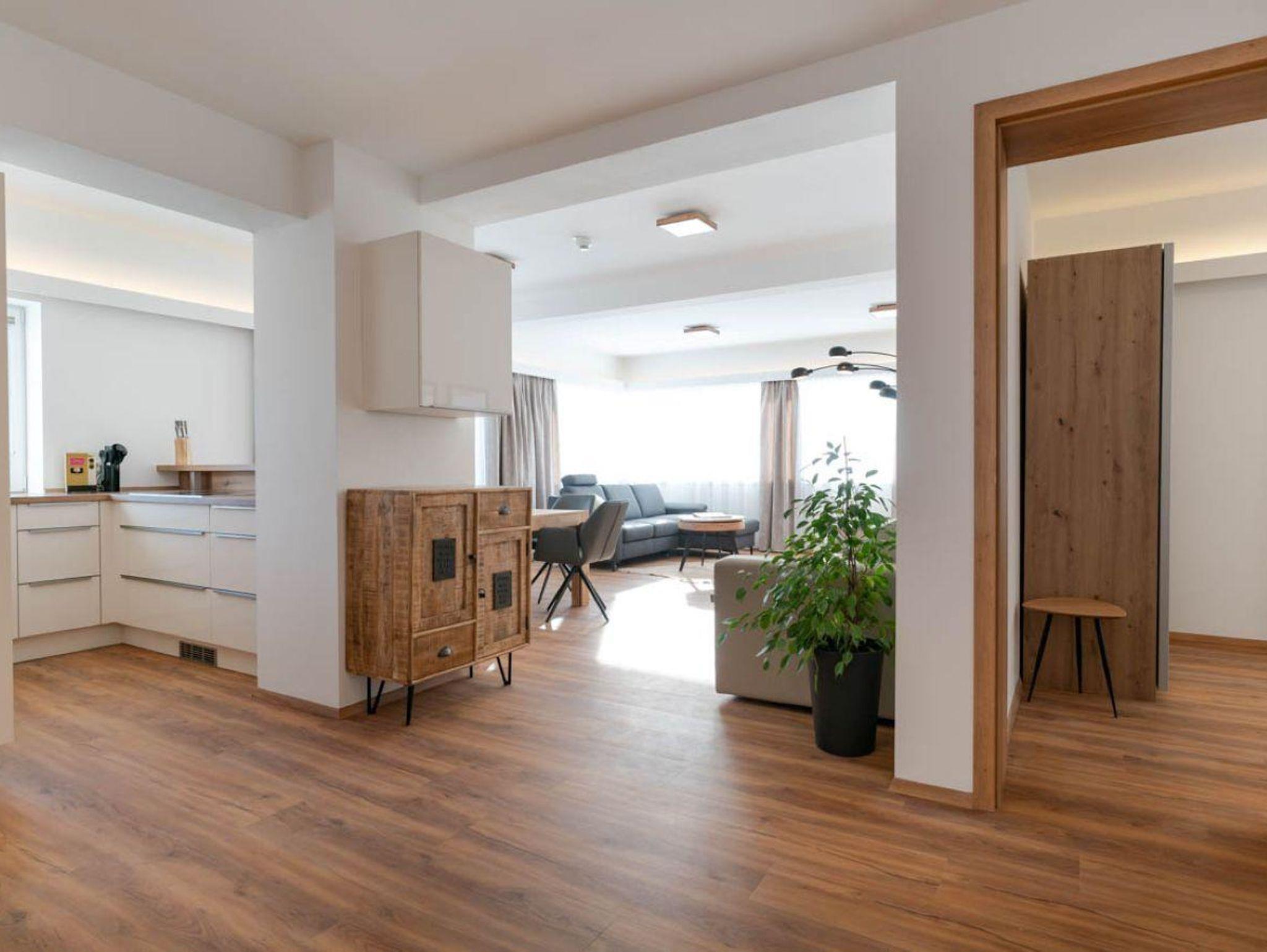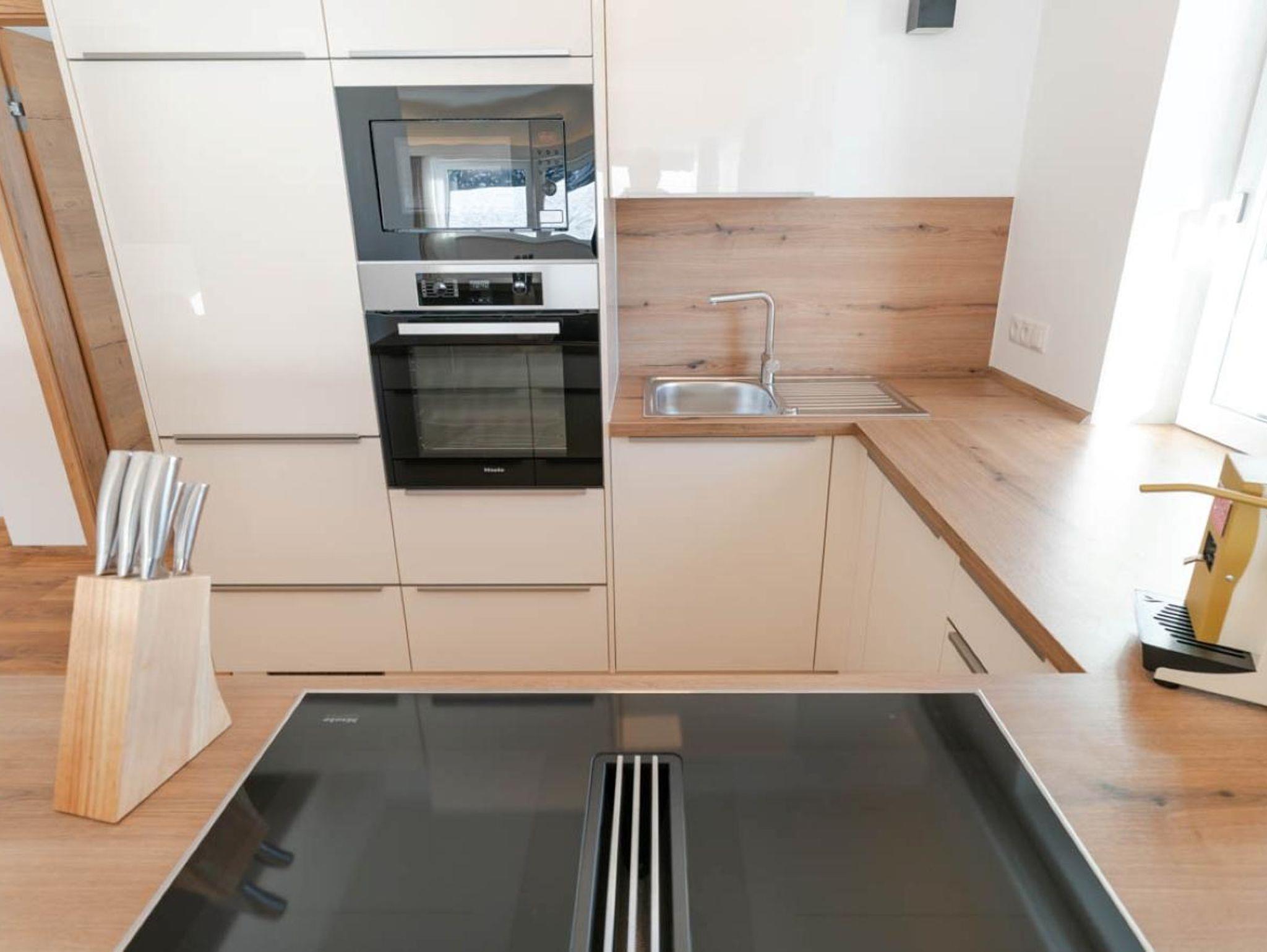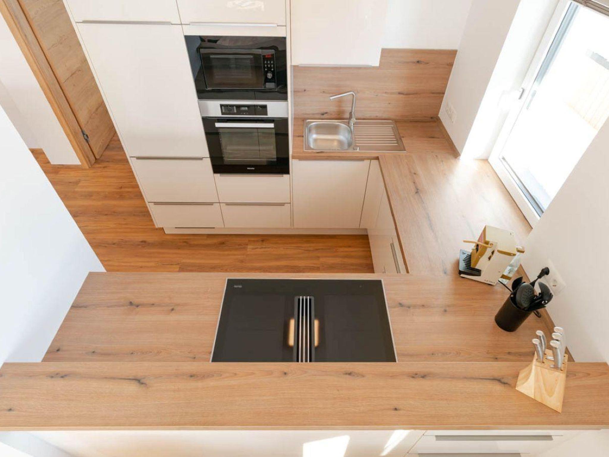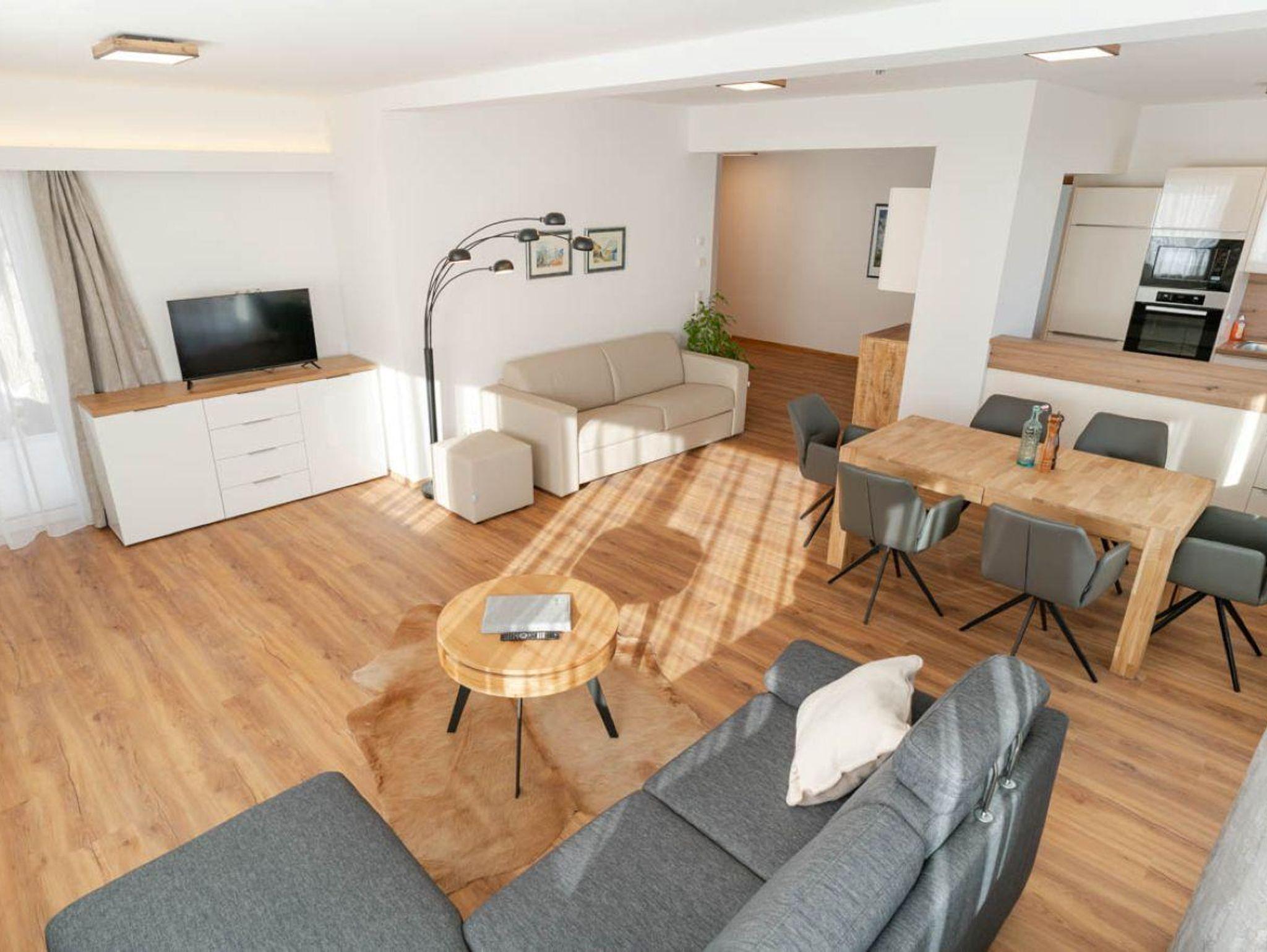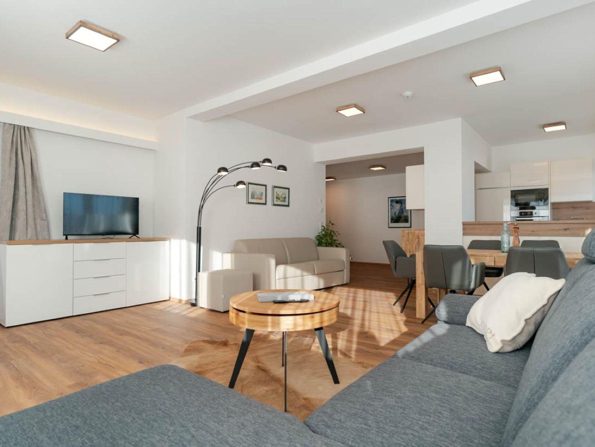 103m² / Wohnzimmer / 2 Schlafzimmer / Badezimmer mit Dusche / 2 WCs / Küche mit Miele-Geräten: Geschirrspüler, Mikrowelle, Backrohr, Herd, Kaffeemaschine / Smart TV / W-LAN / Bettwäsche / Handtücher / Terrasse 35m²