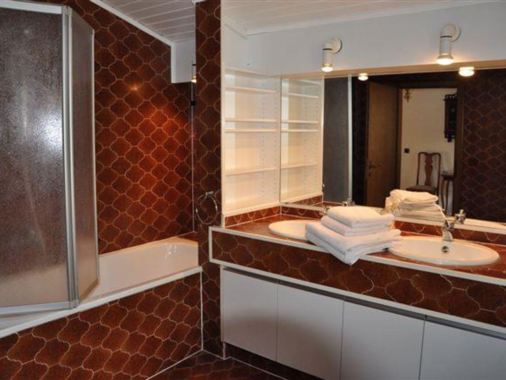 Großes Ferienhaus (200m²) für bis zu 10 Personen Wohnzimmer (45m²) mit offenem Kamin und Schiebetür zur Terrasse 4 geräumige Schlafzimmer Wellnessbereich mit Sauna und Tepidarium Grillmöglichkeit im Garten Balkone mit Panoramablick Garage