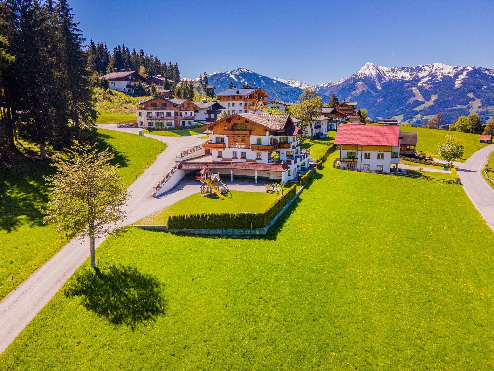 Erleben Sie traumhafte Urlaubstage in unserer 3 Sterne Pension Landhaus Kirchgasser in Ramsau am Dachstein. Umgeben von blühenden Wiesen und grünen Wäldern, mit einzigartiger Panoramasicht auf den Dachstein. Ideal für den sportlich aktiven und erholsamen Urlaub zu jeder Jahreszeit. Die erstklassige Lage ermöglicht Ihnen im Winter den direkten Einstieg in das 220km umfassende Loipennetz sowie auf die 70km präparierten Winterwanderwege. Sie befinden sich inmitten des familienfreundlichen Skigebietes - “Kali`s Erlebnispisten” von Ramsau am Dachstein. In nur 5 Fahrminuten sind Sie am bekannten Rittisberg mit der beleuchteten Nachtrodelbahn. Der Dachstein Gletscher ist 10km und das Skigebiet in Schladming-Dachstein 7,5km von uns entfernt. Im Sommer befinden sich zahlreiche markierte Wanderwege, Mountainbike - und 8 verschiedene Nordic Walking Strecken direkt vor der Haustür. Einen ganz besonderen Spaßfaktor für die ganze Familie verspricht die Slalom Kard Bahn “Formel 1 der Berge” die Sie in 5 Gehminuten erreichen. Unsere drei komfortablen Ferienwohnungen namens: Dachstein, Rittisberg oder Tauern bieten Platz für 2 - 5 Personen. Jede Ferienwohnung empfängt Sie mit gemütlichen Schlafzimmern und einer voll ausgestatteten Wohnküche mit einladender Sitzecke. Zusätzlich bieten wir Ihnen vier weitere liebevoll ausgestattete Studios mit 32m² bis 36m² und ein geräumiges Doppelzimmer. Alle Kategorien haben einen W-Lan Anschluss, sind mit hellen Holzmöbeln eingerichtet und verfügen über einen eigenen sonnigen Balkon oder Terrasse. Genießen Sie die frische und klare Bergluft oder erleben Sie einen einzigartigen Sonnenuntergang. Zum Frühstück bieten wir unseren Gästen im Landhaus Kirchgasser ein reichhaltiges Frühstücksbuffet mit regionalen und hauseigenen Bio Produkten wie frischem Obst, einer Auswahl an Müslis, selbstgemachten Fruchtsäfte und Marmelade. Auf Wunsch gibt es am Abend ein 4 Gänge Menü. Ruhe und Entspannung finden Sie in unserem modernen Wellnessbereich. Nach einem anstrengendem Urlaubstag erholen Sie sich in der Dampfsauna, Infrarotkabine, finnischen Sauna, ruhen auf den Wärmebänken oder Panoramaliegen mit freiem Blick auf den imposanten Dachstein. Ein besonderes Erlebnis für unsere Gäste, ist der beheizte Whirlpool auf der Außenterrasse der Sommer wie Winter gerne genutzt wird. Auf unserem Spielplatz gleich neben dem Haus, können sich die Kinder beim Gokart fahren, auf der Schaukel, im Spielhäuschen und am Trampolin so richtig austoben. Im Winter bietet unsere Wiese viel Spielraum für Schneeballschlachten, zum Iglu bauen oder einfach zum Herumtollen. Verbringen Sie Ihren wohlverdienten Urlaub mit Ihrer Familie im schönen Landhaus Kirchgasser in Ramsau am Dachstein! Ihre Familie Kirchgasser