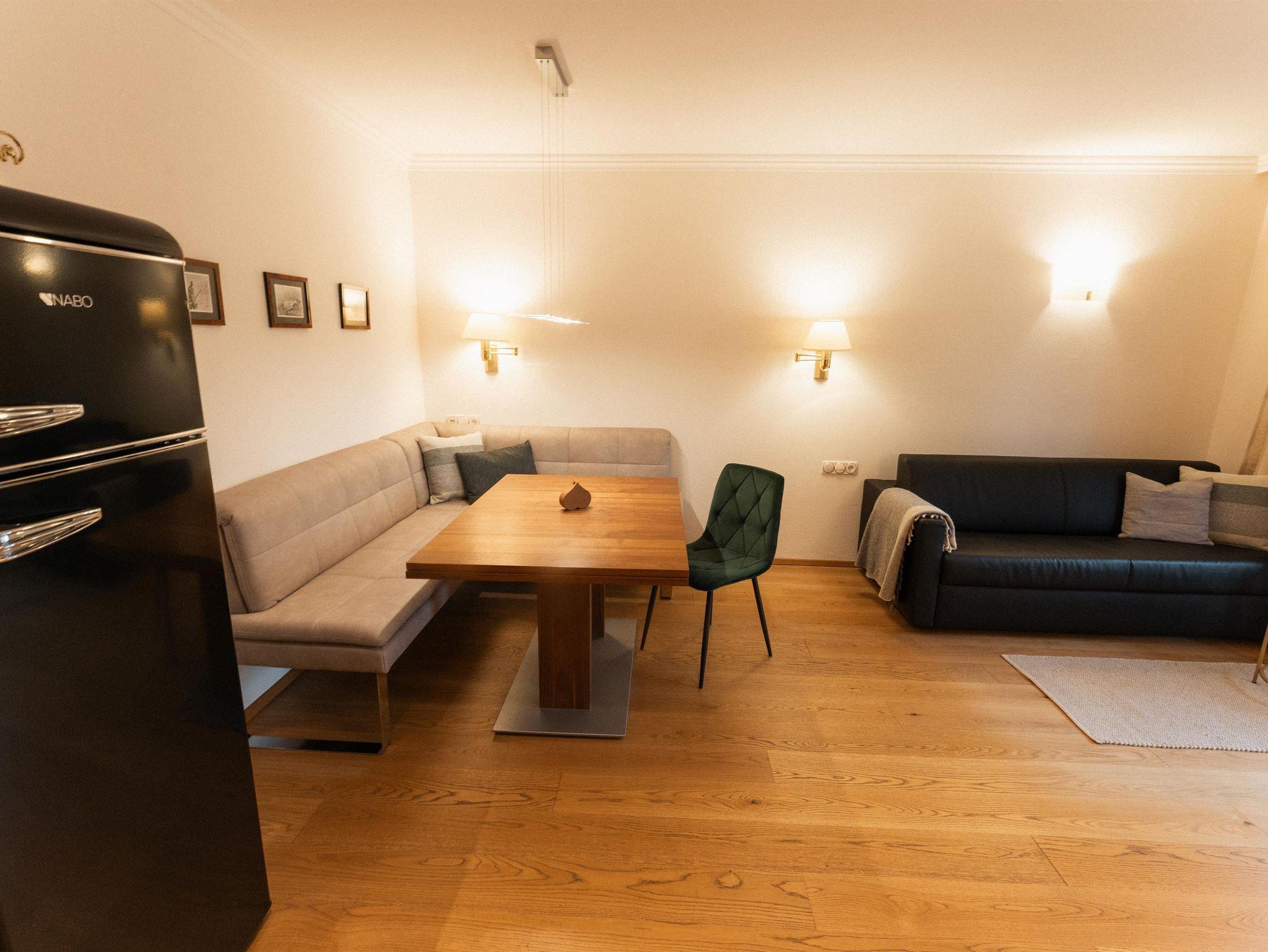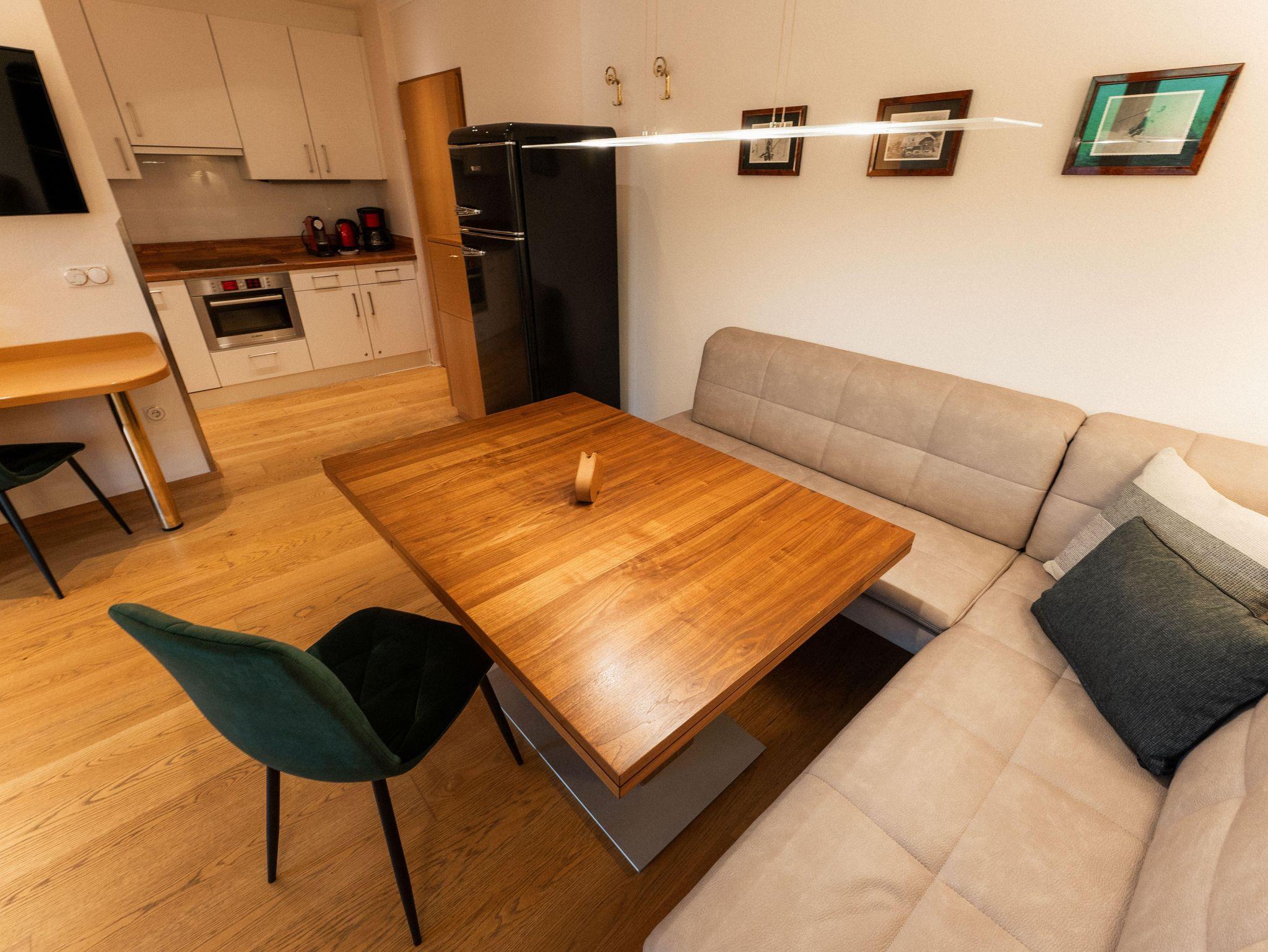 Allergenfreie Apartements, mit Holzböden, 2 Schlafzimmer, 1 Studio mit hochwertig eingerichteter Küche (Kühl-Gefrierschrank, Filterkaffee -und Espressomaschine, Mikrowelle und Backrohr, Induktionskochfeld, Geschirrspüler, Wasserkocher ), 3 x Dusche/WC, Bademäntel, Hand- und Badetücher. 3 x 42 SMART-TV, W-Lan und Lan, Balkone mit wunderschönem Rundumblick auf die Bergwelt der Dachstein-Tauern. Frühstück und tägliche Reinigung inklusive.