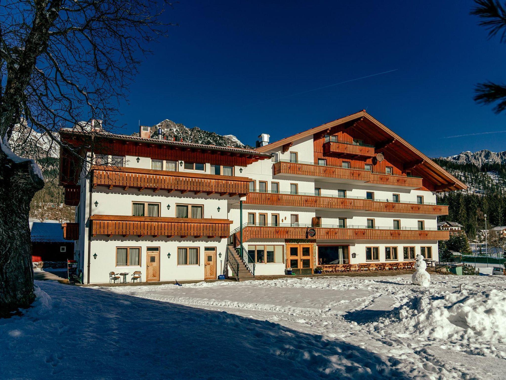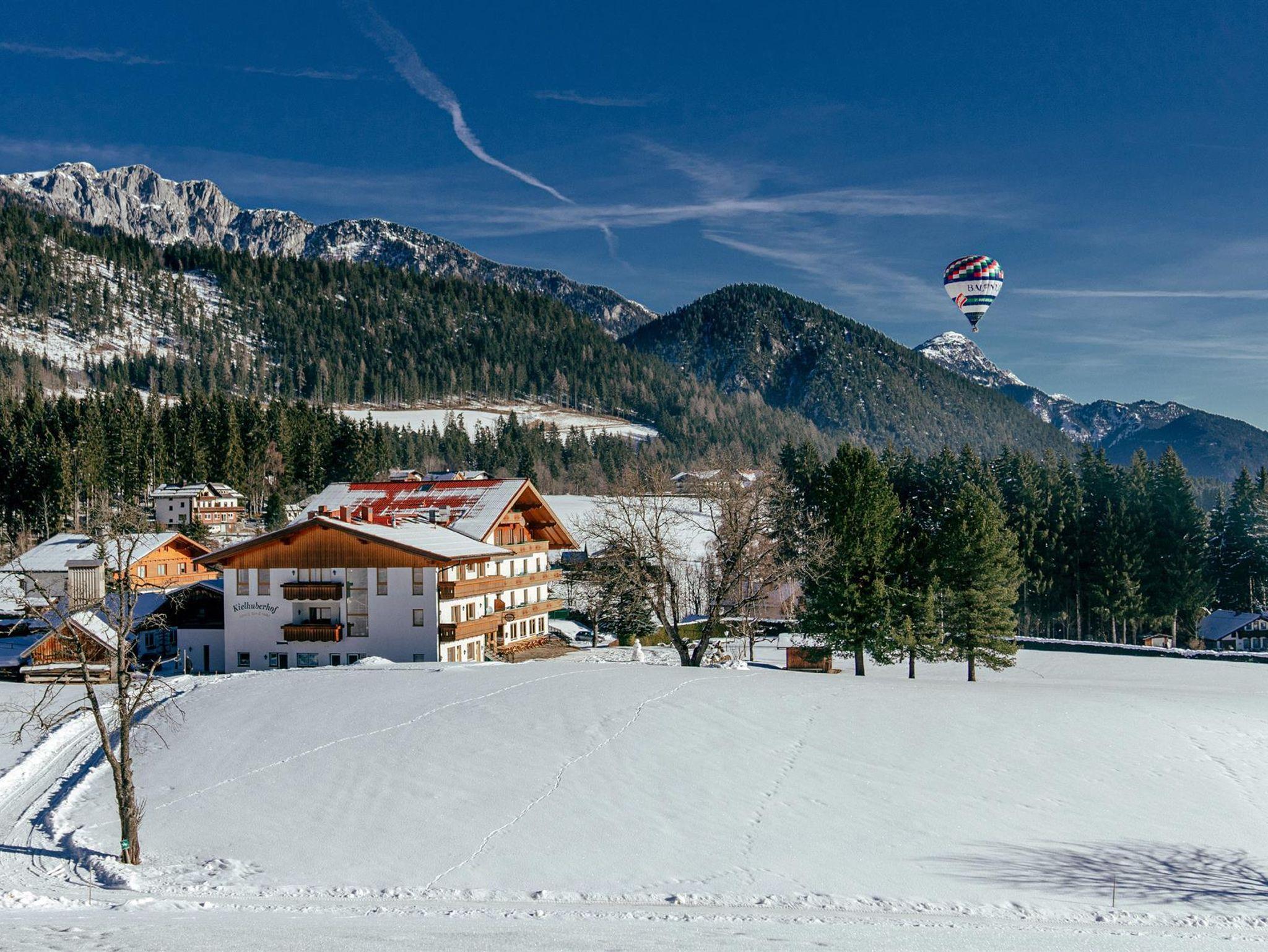 Unser Landhotel Kielhuberhof liegt im südlichen Teil der Ramsau, inmitten der eigenen grünen Wiesen: eine traumhaft ruhige und sonnige Lage am Fuße des Dachsteins mit freiem Panoramablick auf die Planai und die Niederen Tauern. Die vielen Sport- und Freizeitmöglichkeiten wie langlaufen, wandern oder Ski fahren laden zu einem einzigartigen Urlaub in die Ramsau ein! Der Skibus in die familienfreundlichen Skigebiete Ramsau und Ski amadé hält direkt beim Hotel Kielhuberhof. Der Kielhuberhof bietet Ihnen gemütliche Einzel- und Doppelzimmer, ein ebenerdig begehbares, barrierefreies Doppelzimmer mit Zugang über eine eigene Haustüre, geräumige Familienzimmer sowie Appartements und Ferienwohnungen für bis zu 6 Personen. Auch größere Gruppen sind bei uns im Hotel Kielhuberhof gerne willkommen. Alle Zimmer und Ferienwohnungen sind im modernen Landhaus-Stil eingerichtet und verfügen ab der Kategorie 25m² über neue große Wohlfühl-Badezimmer und über einen herrlichen Balkon mit Aussicht auf die umliegende Bergwelt. In den geräumigen Familienzimmern für 2 - 5 Personen finden Sie einen Vorraum mit Garderobe und eine kleine Küchenzeile mit bequemer Essecke. Gerne bieten wir Ihnen auch 1 barrierefreies Zimmer mit einem speziell auf die Bedürfnisse von Rollstuhlfahrern abgestimmten Badezimmer an. Für Ihr leibliches Wohl sorgen wir mit unserem reichhaltigen Frühstücksbuffet mit Produkten heimischer Bauern und dem köstlichen 3- oder 4-Gang Wahlmenü mit vegetarischer Alternative, Salat- und Dessertbuffet. Im Sommer laden wir einmal wöchentlich zu einem gemütlichen Grillabend ein. Das Hotel Kielhuberhof bietet Ihnen eine Freizeithalle mit Tischtennis, Tischfußball und Billard, einen 400 m² großen Natur-Schwimmteich, eine Liegewiese, 2 Tennisplätze und einen Sportplatz für Fußball, Volleyball und Badminton. Nach einem aktiven Tag mit Wandern oder Langlaufen, entspannen Sie im neu gestalteten Wellnessbereich des Landhotels Kielhuberhof. Der Panorama-Wellnessbereich erstreckt sich über 2 Etagen und bietet eine urige Blockholz-Sauna-Hütte. Relaxen Sie auch in der Bio-Sauna, dem Kräuterdampfbad, der Infrarotkabine und im Ruheraum mit Blick auf das Dachstein-Massiv. Auf Anfrage organisieren wir für Sie entspannende Wohlfühl-Massagen. Von der Sonnenterrasse genießen Sie bei einem hausgemachten Apfelstrudel einen herrlichen Ausblick auf die Naturkulisse der Dachstein-Tauern-Region. In der gemütlichen Stube mit offenem Kamin verbringen Sie gediegene Stunden mit einem spannenden Buch oder bei einem Glas guten Österreichischen Weins. Im Sommer lädt Sie die idyllische Umgebung der Ramsau am Dachstein zu gemütlichen Spaziergängen, aktivem Nordic-Walking und Wanderungen auf die urigen Almen der Region ein. Für Kinder bieten Hochseilgärten, Freizeitparks und Naturlehrpfade spannende Erlebnisse. Den Winter in der Ramsau verbringen Sie auf den herrlich präparierten Pisten der Skigebiete Ramsau und Planai, auf den traumhaft gespurten Langlaufloipen, auf den Winterwanderwegen zu Fuß oder im Pferdeschlitten, oder ganz gemütlich in einer der umliegenden Hütten. Familie Tritscher freut sich schon sehr, Sie im Landhotel Kielhuberhof in Ramsau am Dachstein zu begrüßen und zu bewirten!