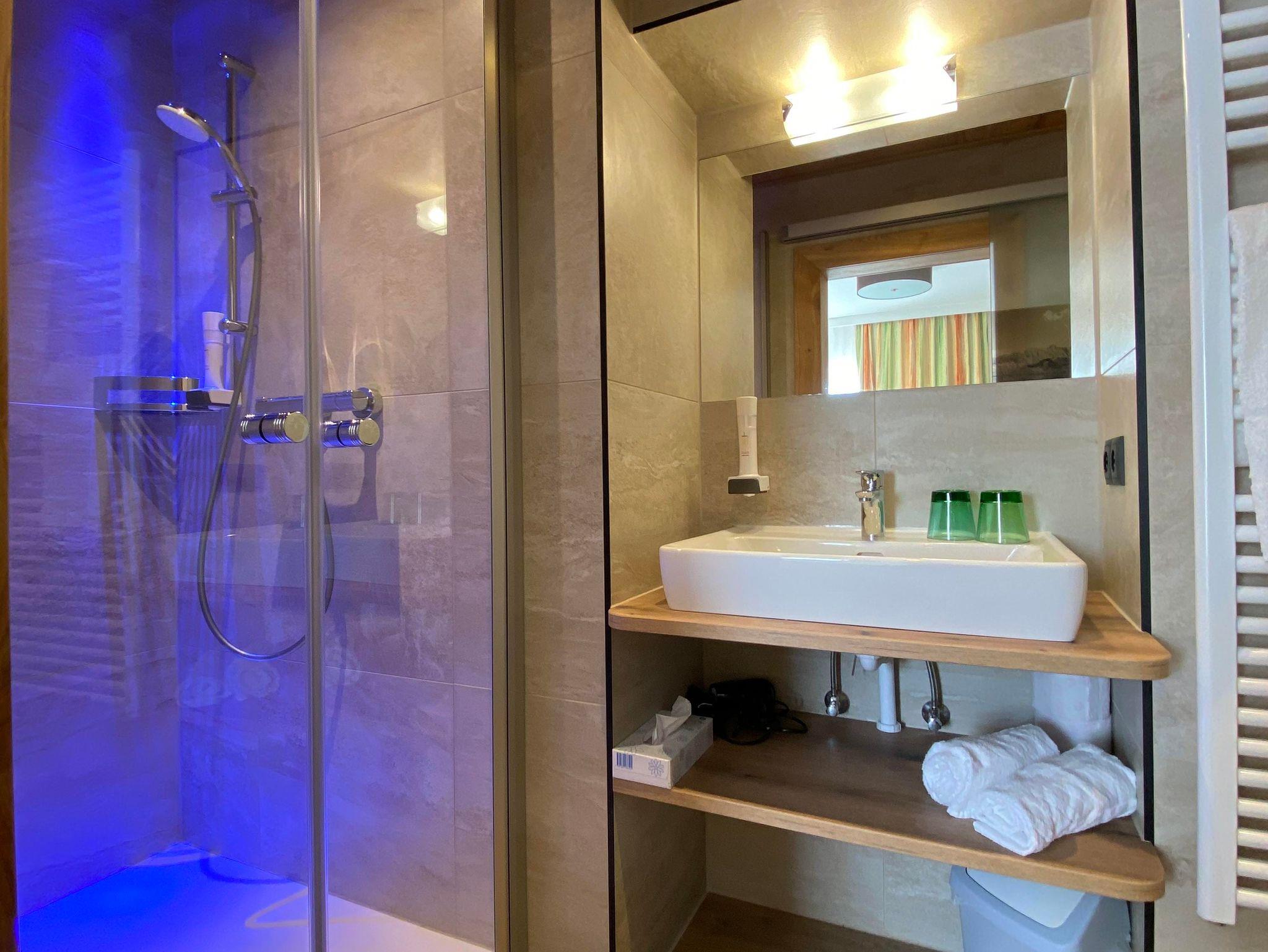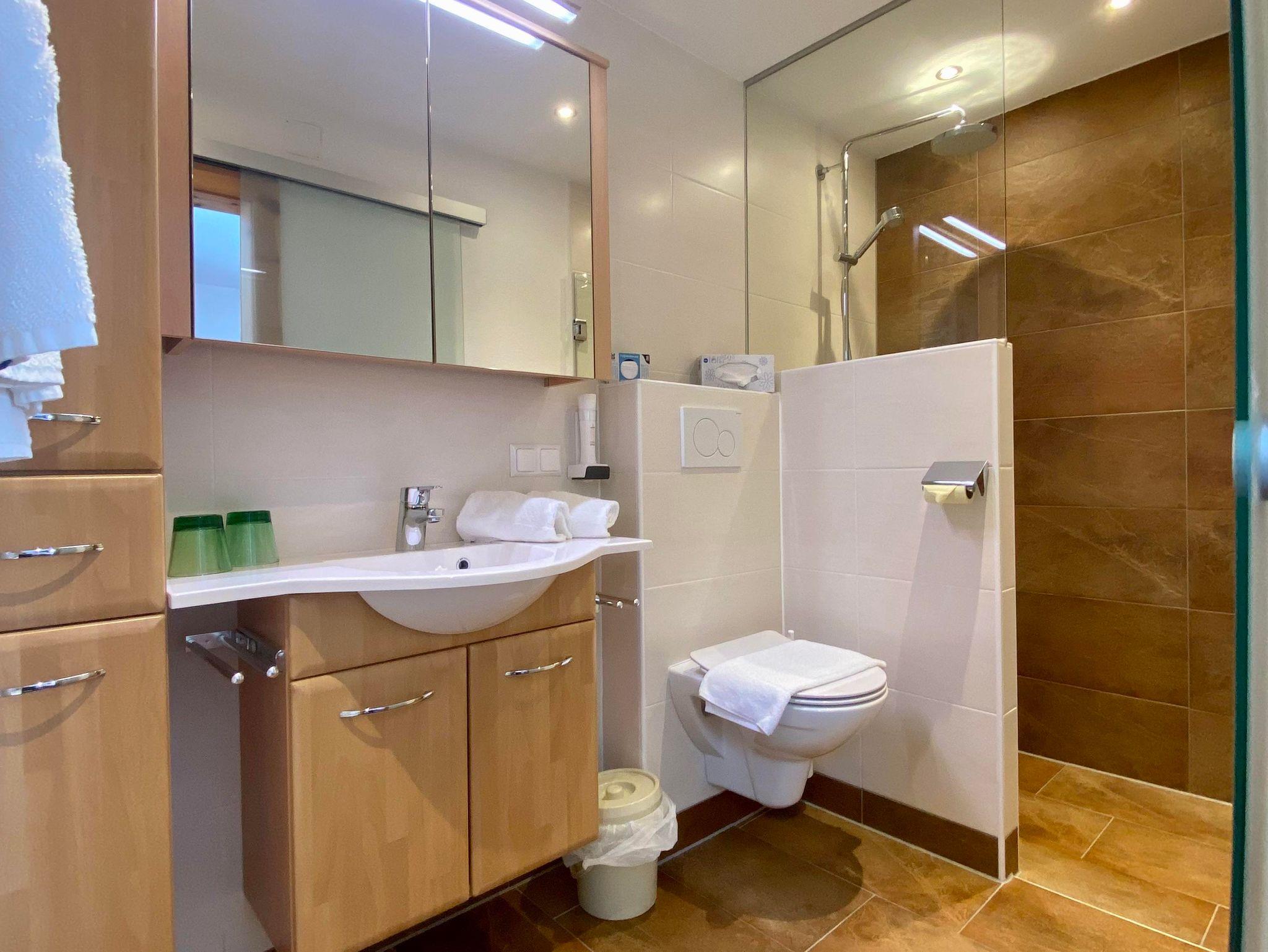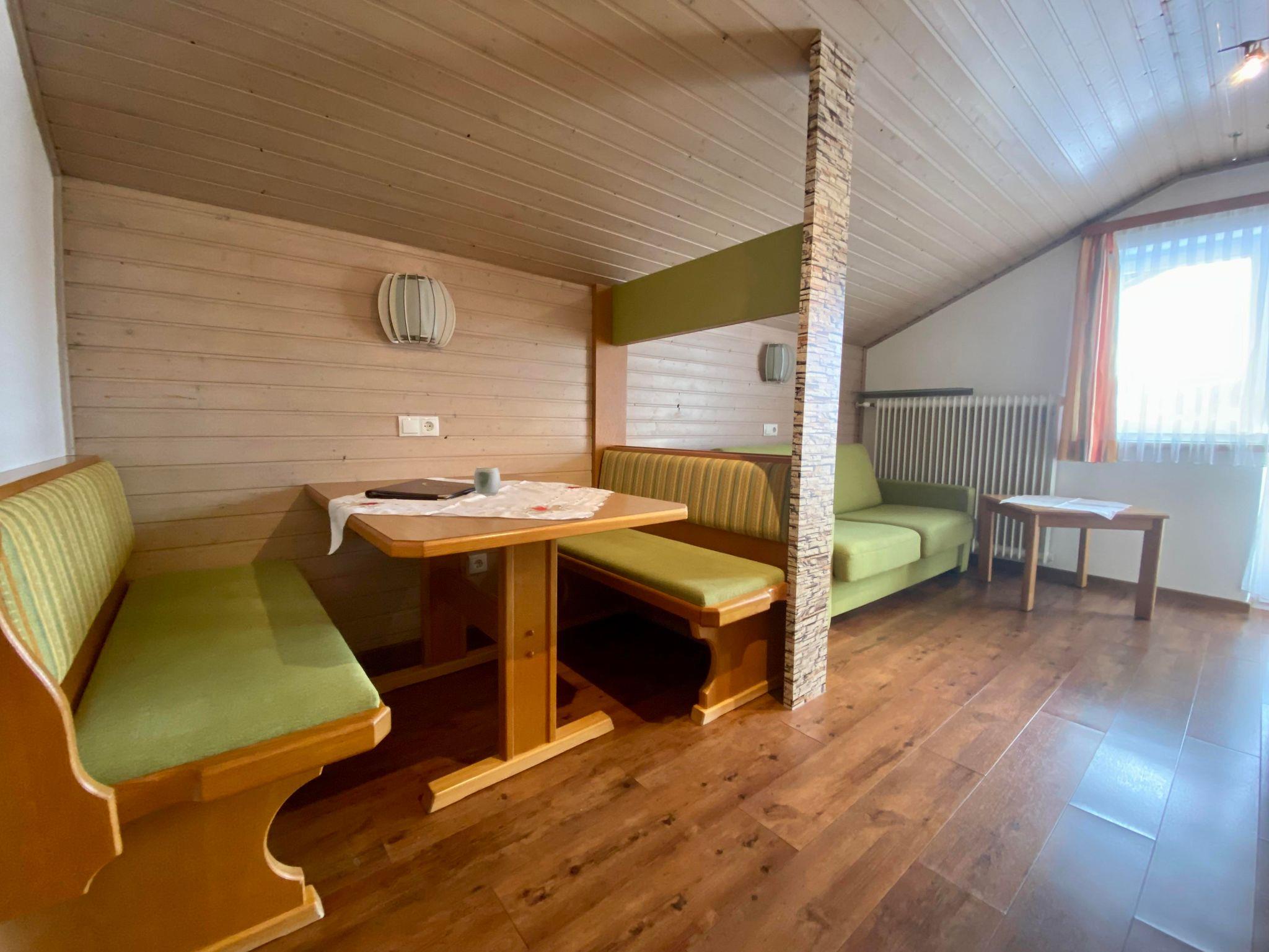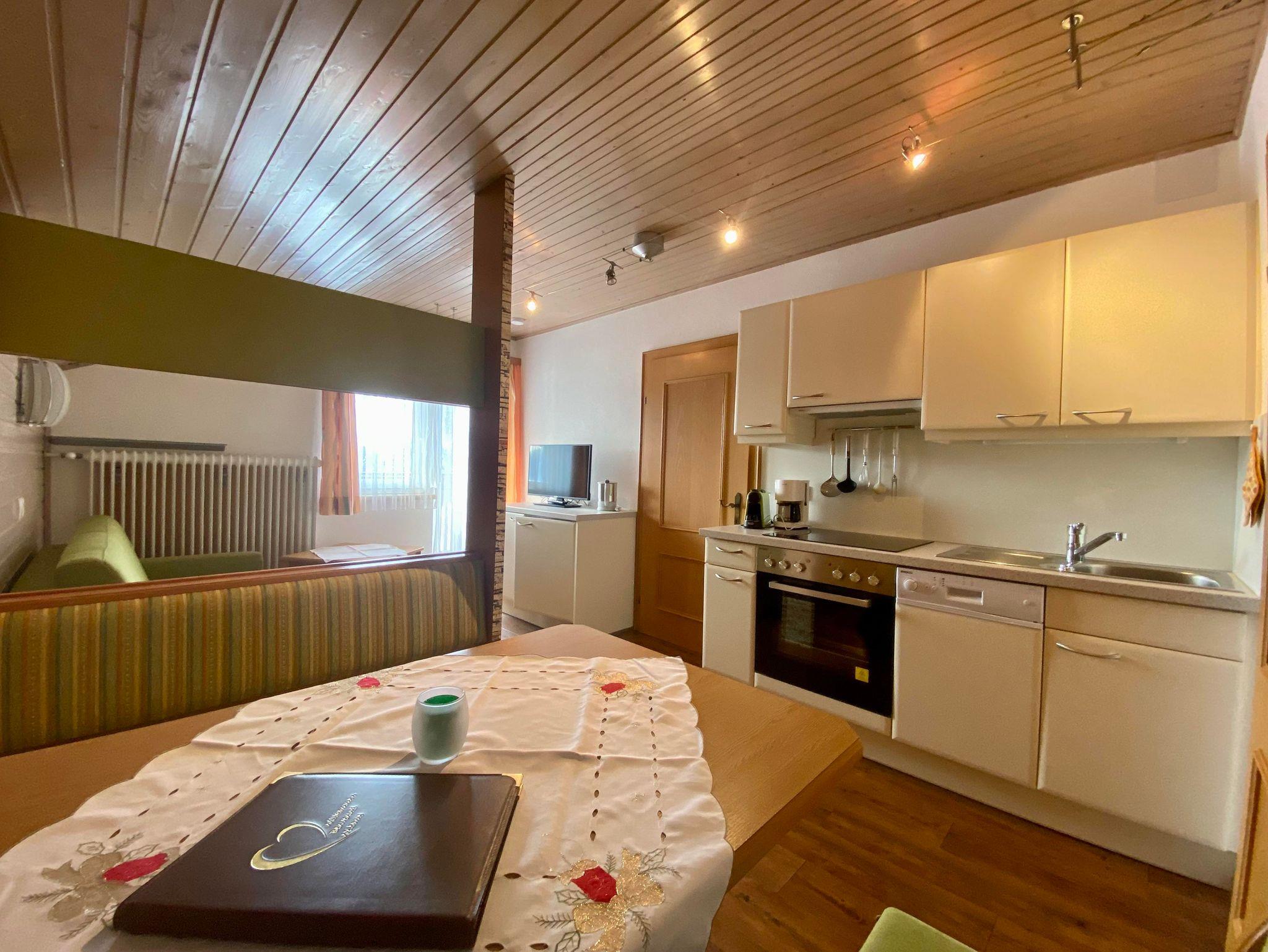 Unser Appartement Tauern (35m²) besteht aus einem Schlafzimmer mit Doppelbett, Wohnzimmer mit ausziehbarer Doppelcouch , Dusche/WC, komplett eingerichteter Küchenzeile, Kühlschrank mit Gefrierfach, Backofen, Mikrowelle, Geschirrspüler, Sat-TV, Telefon, südseitiger Balkon.