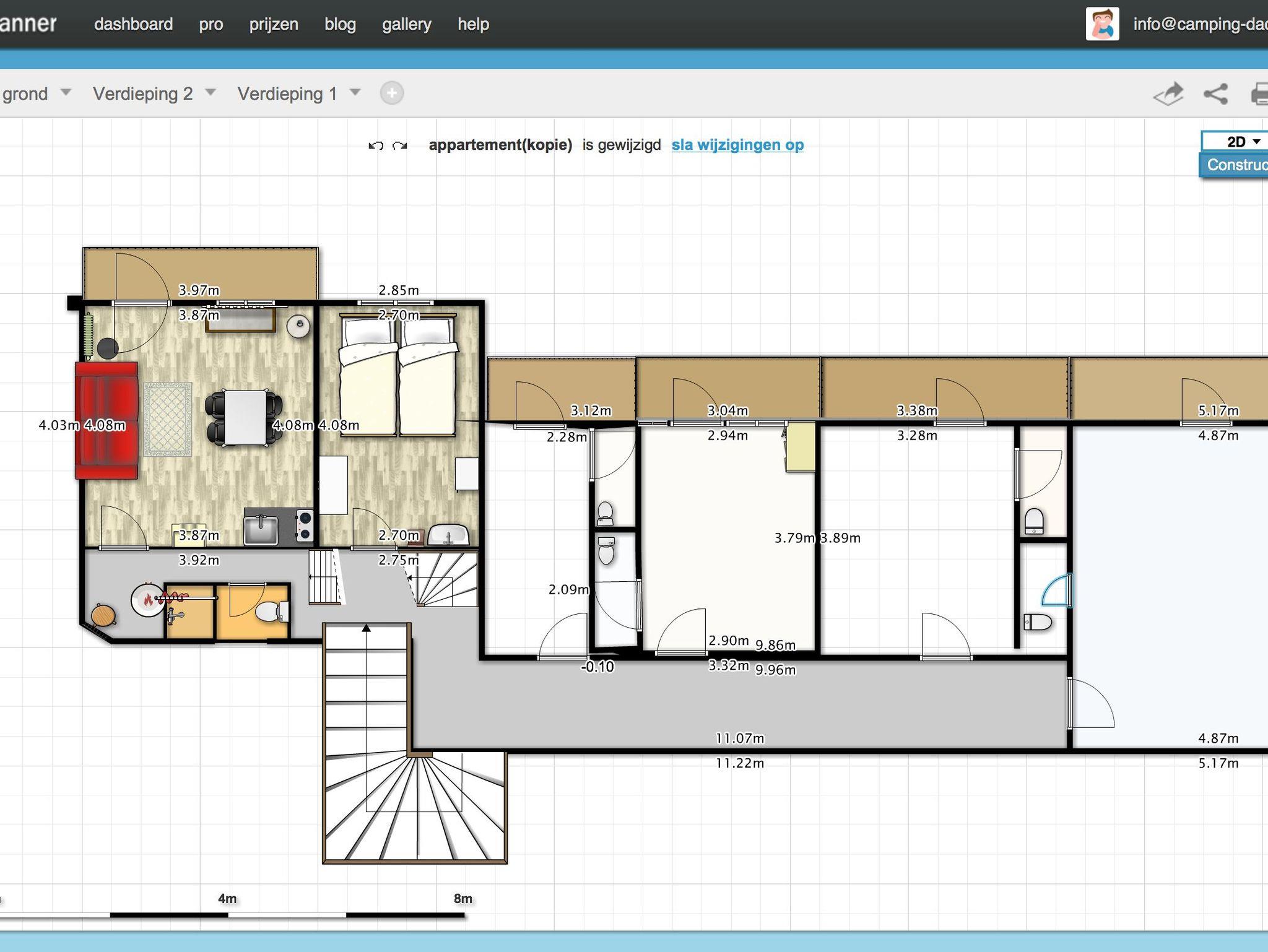 21 Quadratmeter mit Doppelbett 2 Meter x 1,80 Meter und Einzelbett 2 Meter x 1 Meter