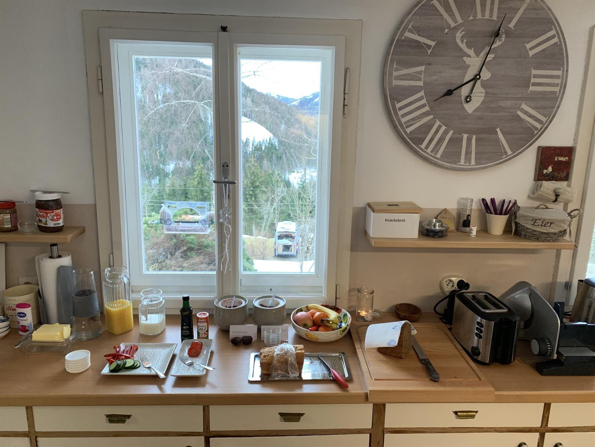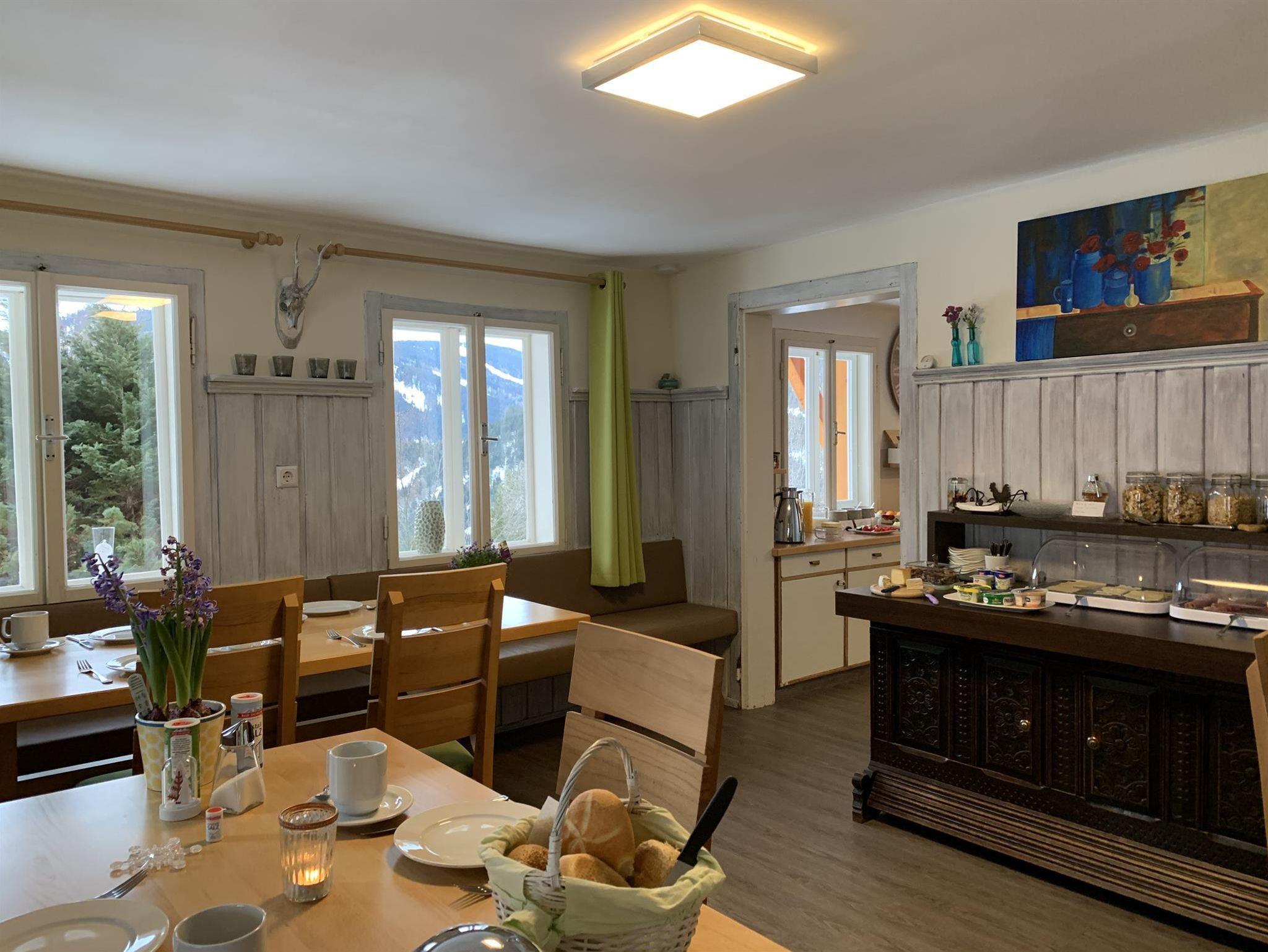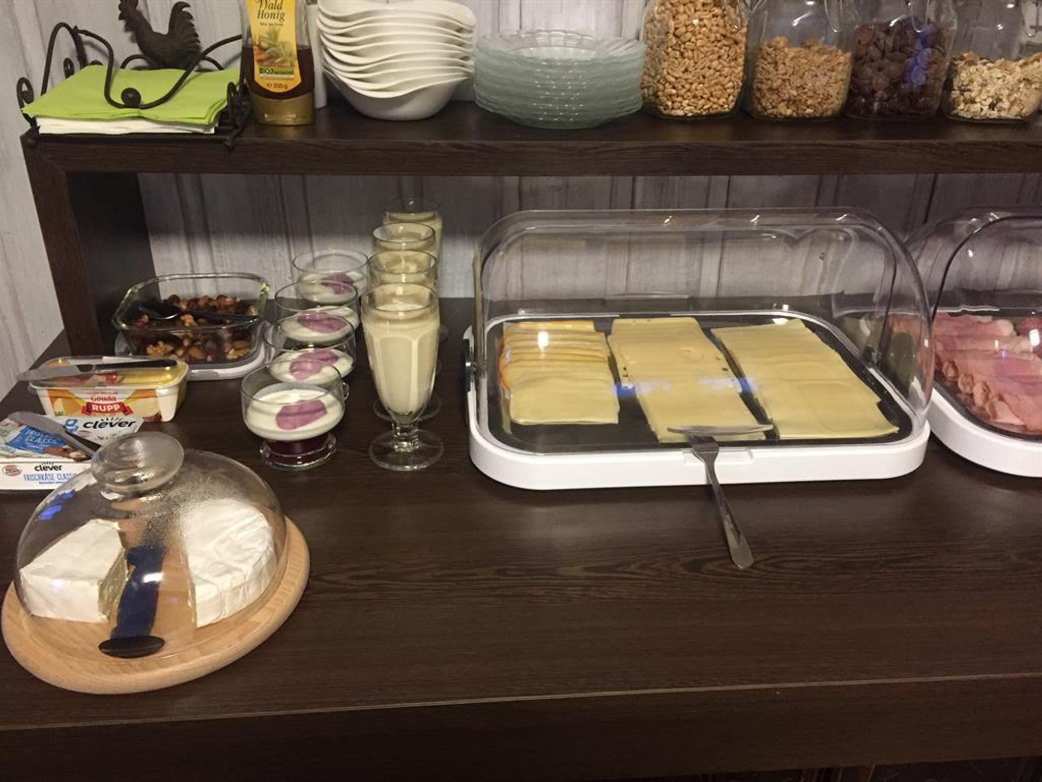Starten Sie ihren Tag am vielfältigen Frühstücksbuffet mit vielen frischen Produkten im kleinen und gemütlichen Frühstücksraum.