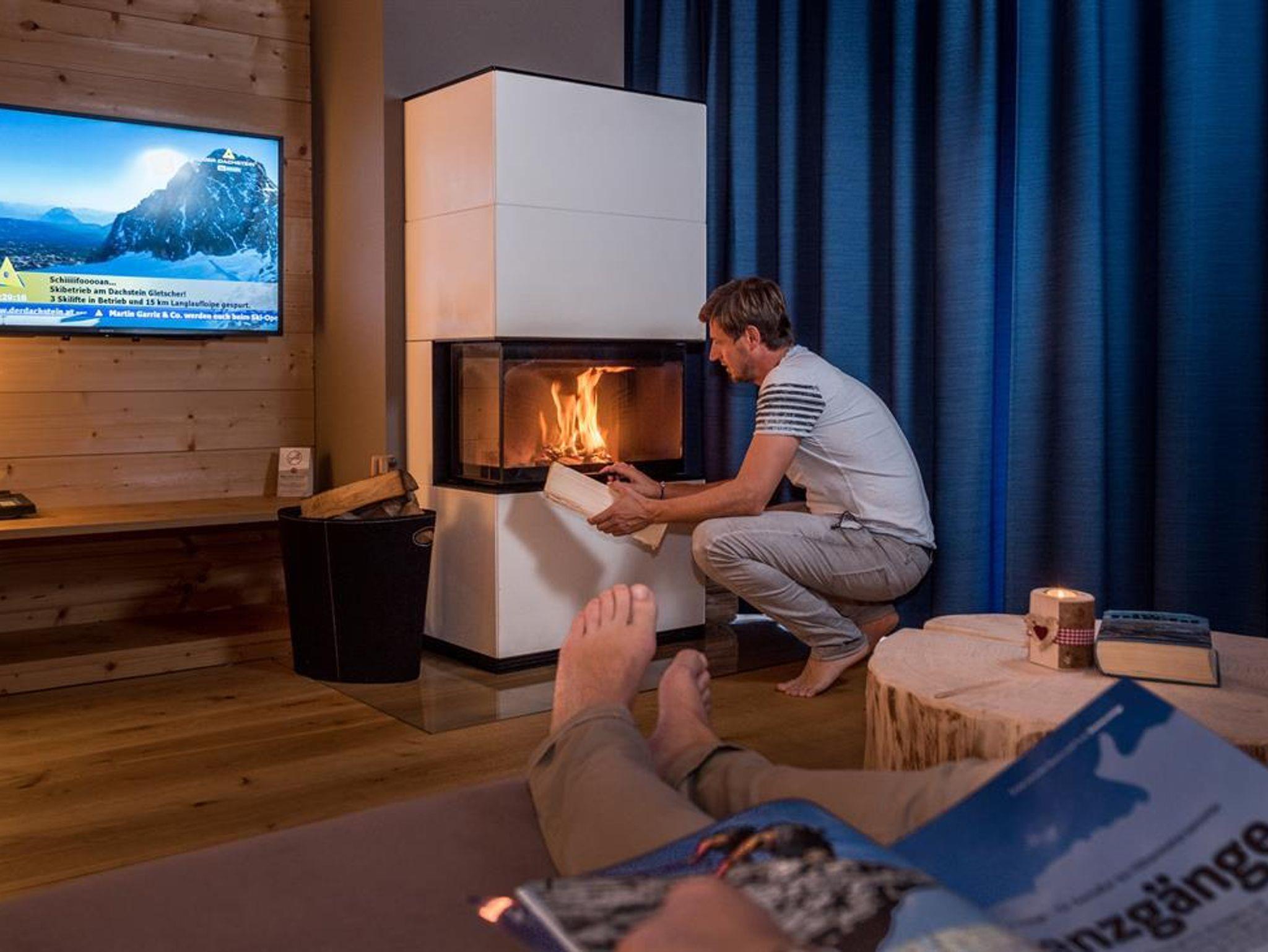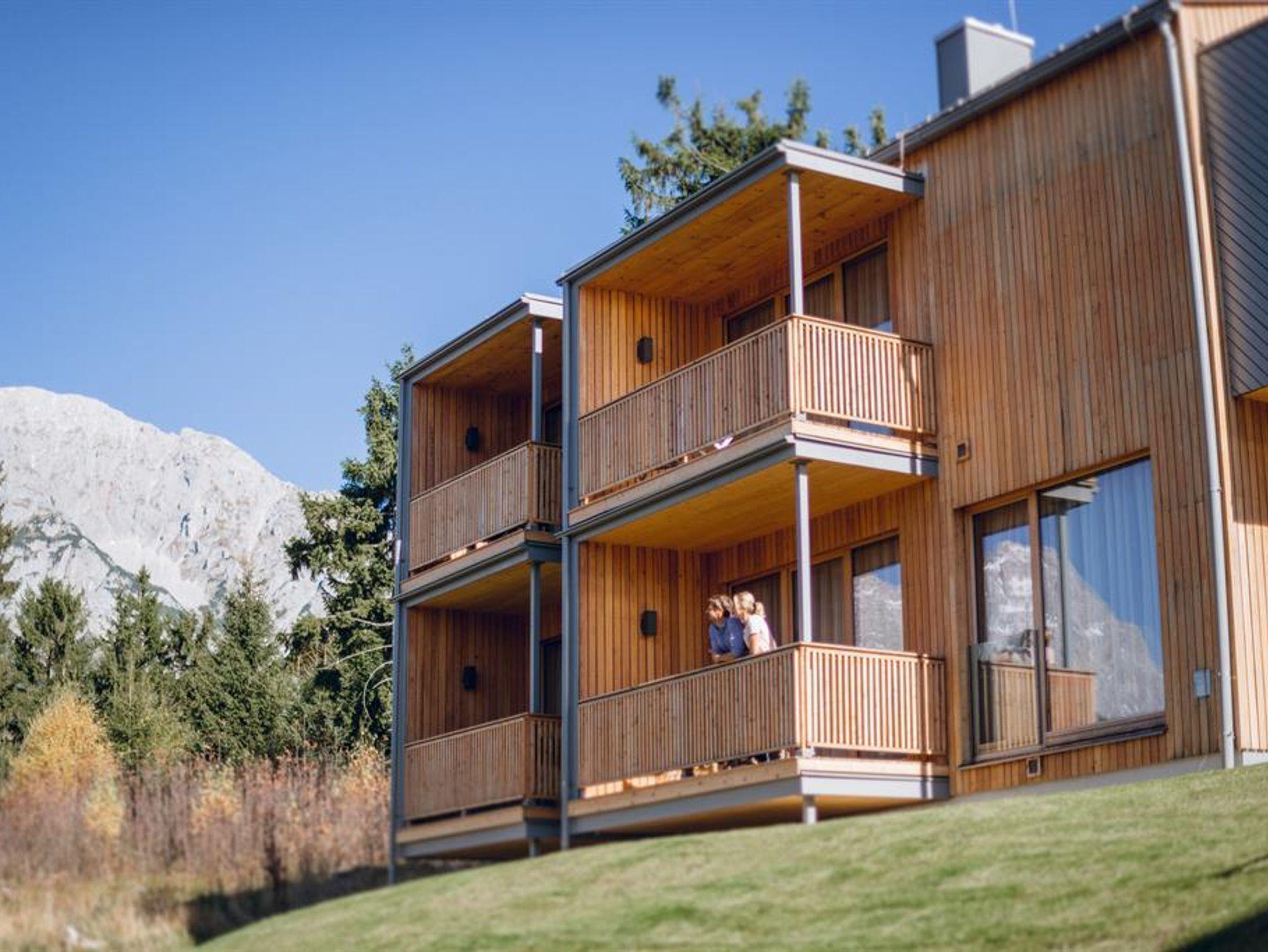 Wohlfühl Appartements am Fuße des Dachsteins. Insgesamt stehen 15 neue und modern eingerichtete Appartements für 2 - 8 Personen in unseren Naturholz-Chalets im Ortsteil Vorberg zur Wahl. Jedes Appartement ist mit eigener, ca. 4m² Sauna und offenem Kamin ausgestattet. Zusätzlich bieten wir geräumige Doppelzimmer mit Schlafcouch (38m²) mit tollem Frühstücksbuffet, großzügige Familiensuiten mit 2 Schlafzimmern (102m²!), ein Penthouse (116m²) und eine Wohlfühloase mit Finnischer Sauna, Zirbenholz-Ruhebereich mit Schaukelliegen, Vitalecke, Fitnessraum und Massageangebot an!