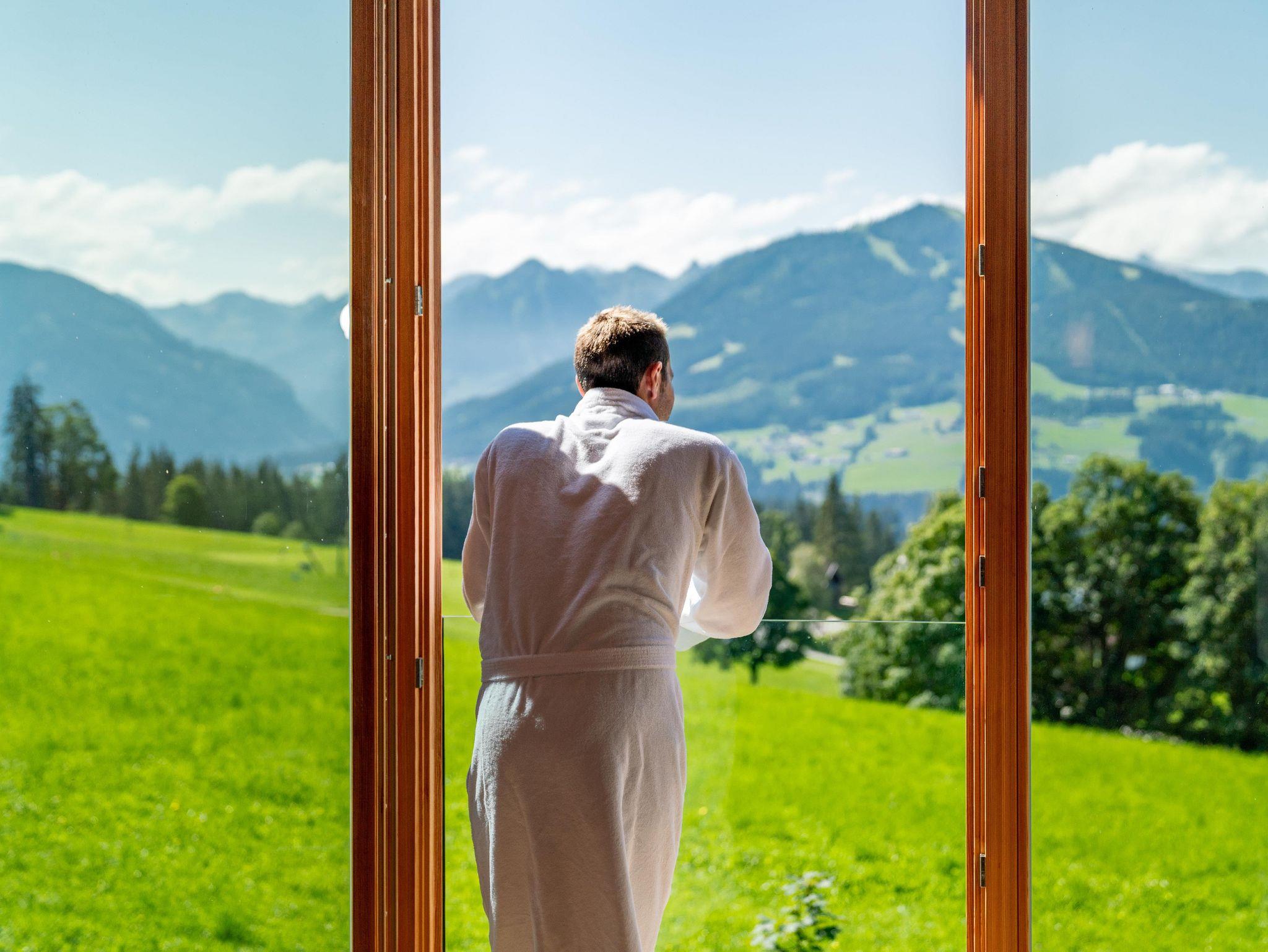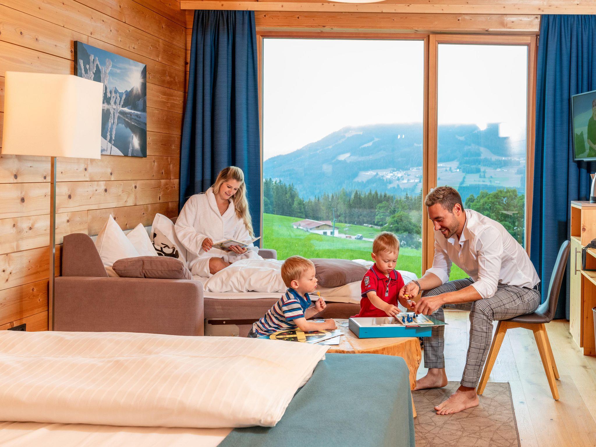 Zum weiteren Komfort zählen eine Parkgarage mit E-Tankstelle, individuelle, beheizbare Depots fürs Sportequipment und eine Tages/Cafe/Bar mit Bier vom Faß und schönen, österreichischen Qualitätsweinen - die gibt's zu attraktiven Vinothekpreisen auch zum Mitnehmen für den Genuß am Zimmer oder im Appartement! Rasant durch die Berge und Täler geht es mit den Leihmountainbikes oder mit den Leih-E-Mountainbikes!