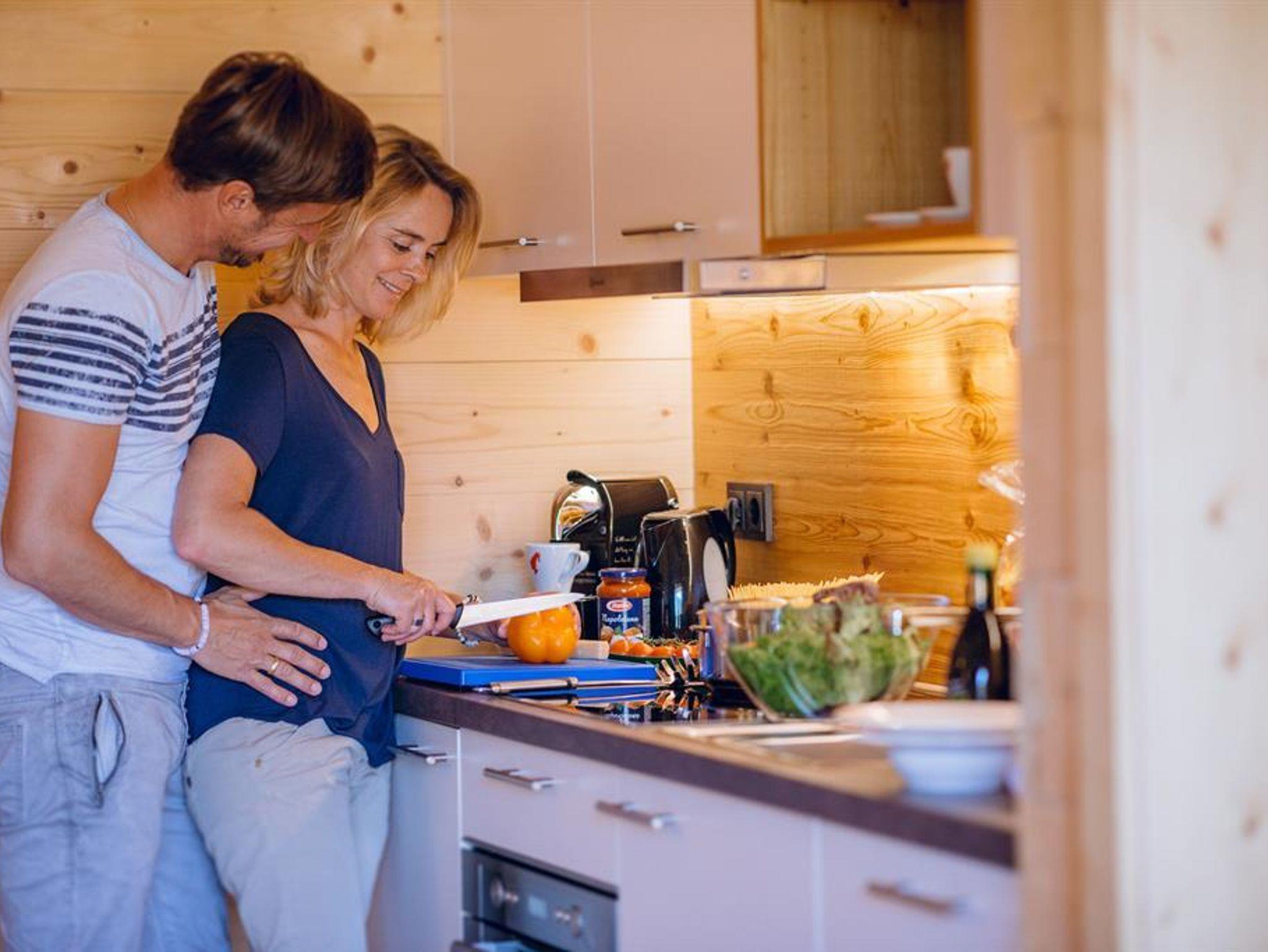 64 m² Wohnfläche für 2 - 4 Personen, ein Schlafzimmer mit Doppelbett, ein Wohnraum mit Essecke und ausziehbarer Couch für 1 - 2 Personen, ein Badezimmer mit Dusche, WC und privater 4 m² Sauna, Radio, Kosmetikspiegel, Haartrockner, ein zusätzliches Badezimmer mit WC, Dusche und Waschbecken, Küchenzeile mit Elektro-Herd, Backrohr mit Mikrowelle, Kapsel-Kaffeemaschine, Wasserkocher, Geschirrspüler und Kühlschrank, Kamin, französischer Balkon oder Balkon, Bademantel, Schlapfen, Saunahandtücher, Flat-HD-SAT-TV mit Radio, free Wi-Fi, Safe, Telefon.