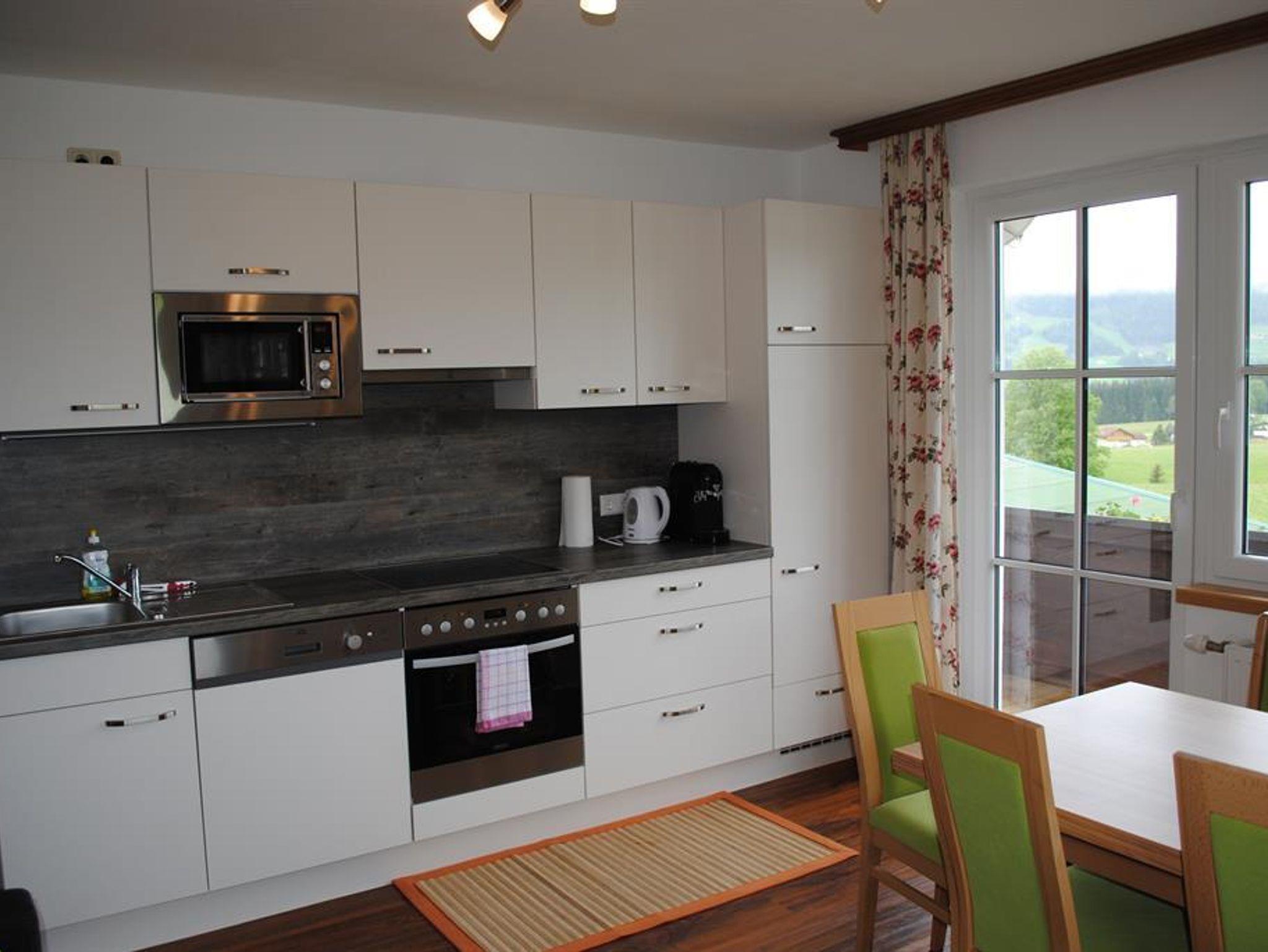 Die Küche ist mit allem Inventar ausgestattet und hat einen Geschirrspüler, E-Herd, Kühschrank mit Gefrierteil, Mikro, Espressomaschine und Wasserkocher...