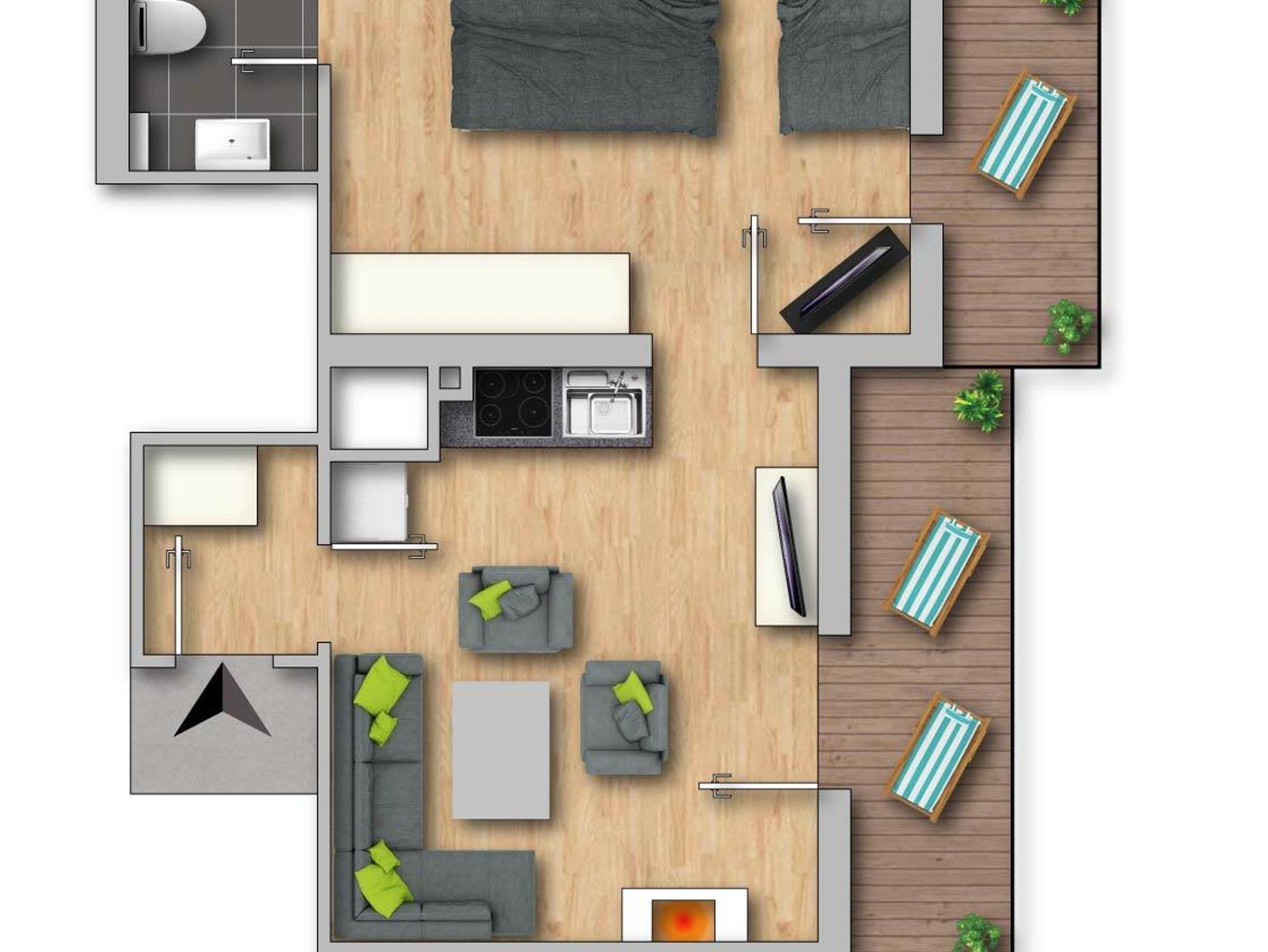 Mit einer Größe von rund 37 m², 1 Schlafzimmer, 1 Bad und einer gemütlichen Wohnküche bietet sie Platz für insgesamt 3 Personen.