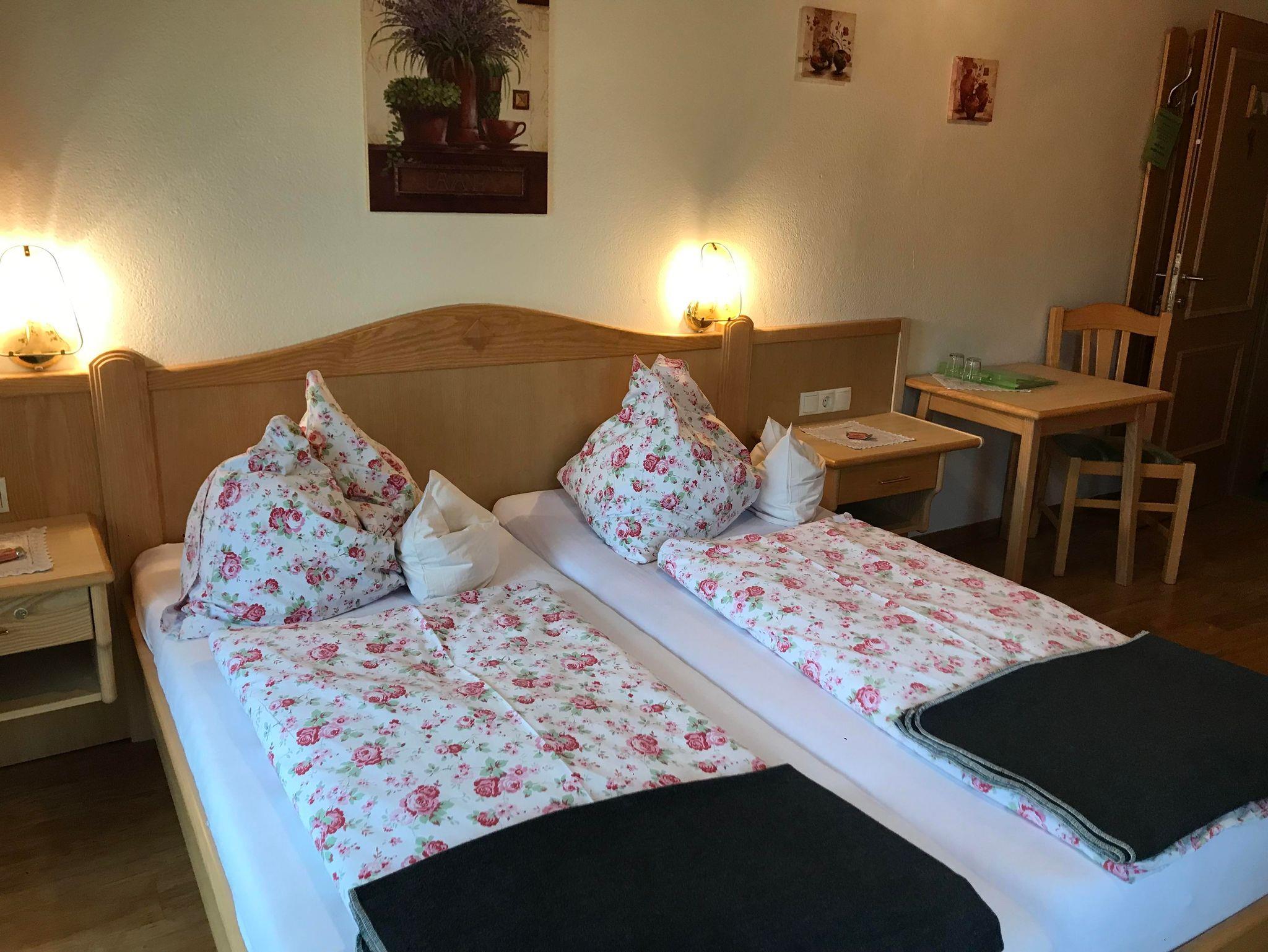 Gemütlich eingerichtete Familienzimmer (2 Zimmer mit Verbindungstüre) mit Dusche und WC getrennt . TV und Balkon, Kühlschrank finden Sie am Gang, großer Kinderspielplatz, Liegewiese, gratis W-Lan. Wunderschöner Blick ins Ramsauer Bergpanorama. Gemütlicher Balkon einfach zum Seele baumeln lassen und genießen.