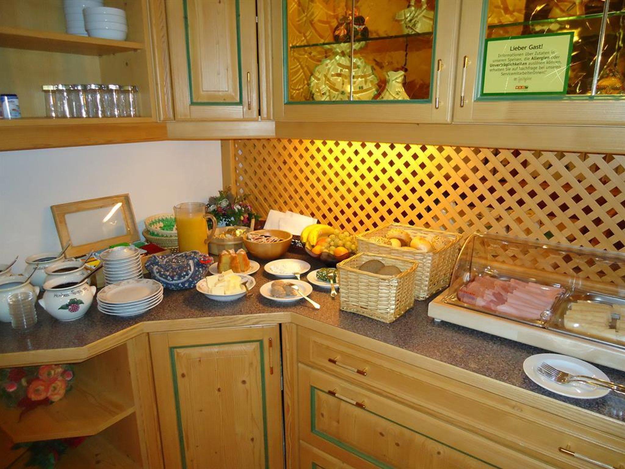 Am Morgen verwöhnen wir Sie gerne mit unserem reichhaltigen und ausgiebigen Frühstücksbuffet. Frische Produkte aus der eigenen Landwirtschaft wie hausgemachter Marmelade, verschiedenen Müslisorten, Aufstriche oder selbstgebackenem Kuchen.