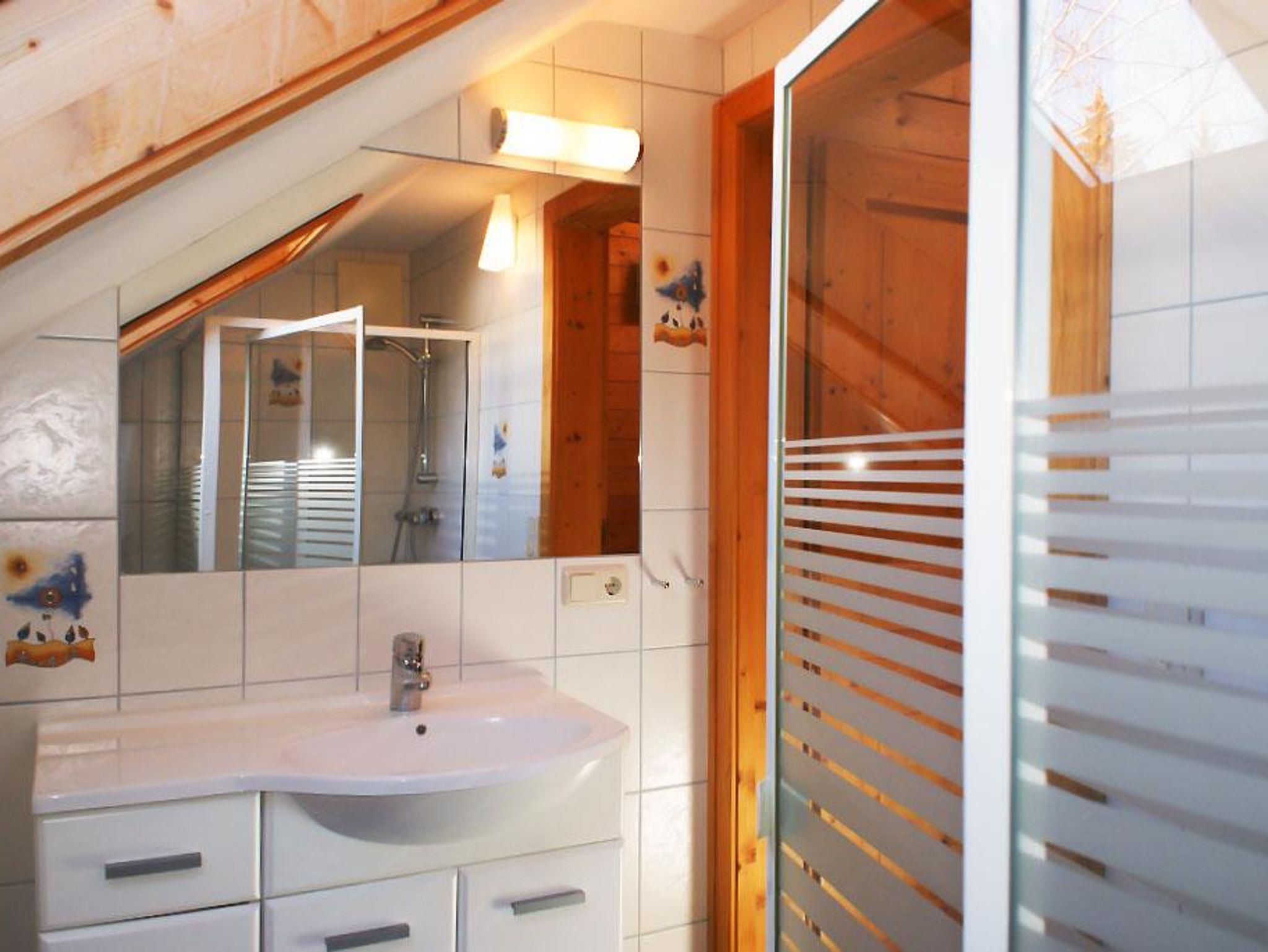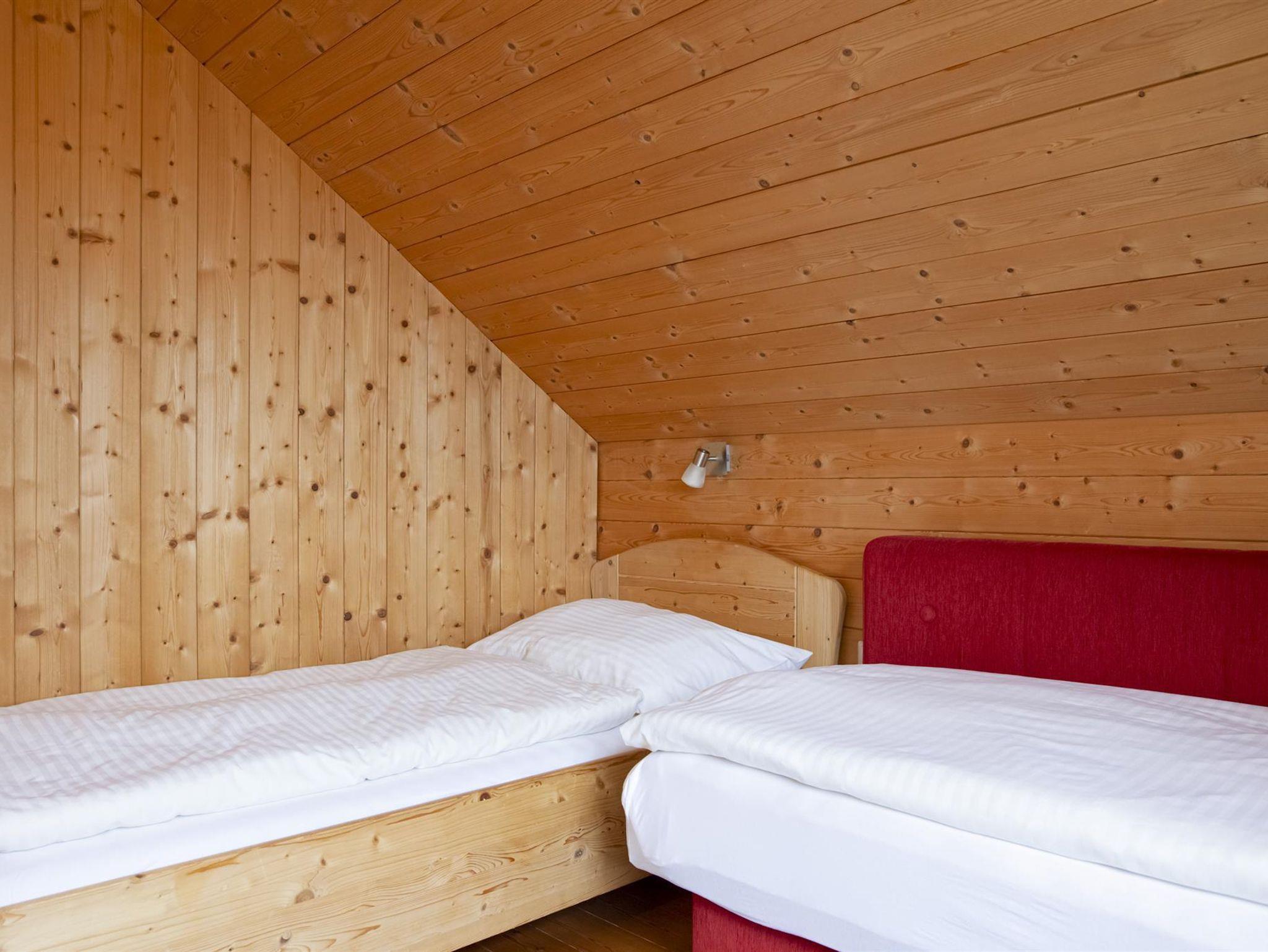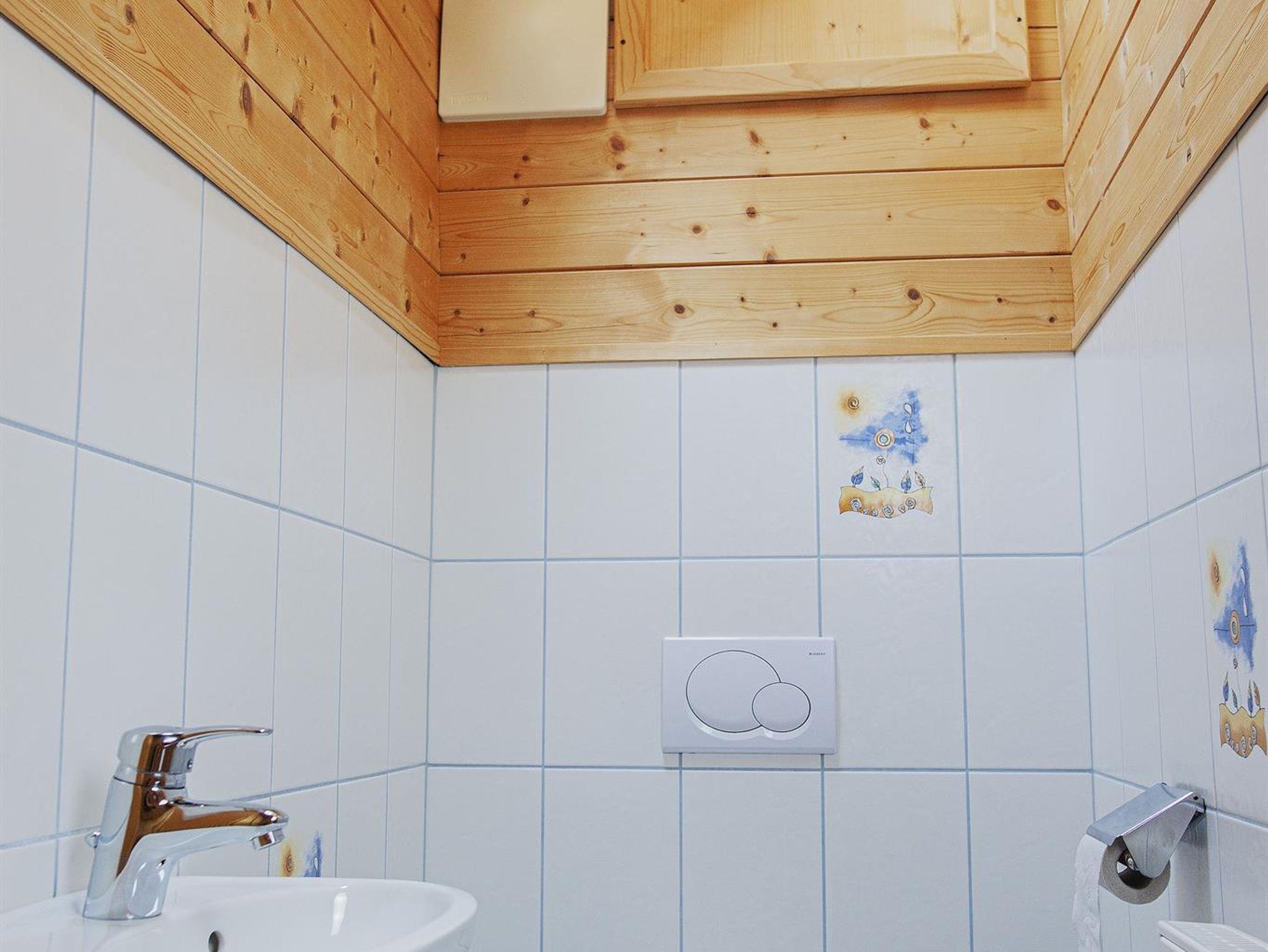 Im 1. Stock befinden sich 2 Schlafzimmer mit Vollholzmöbel, ein Badezimmer mit Handtüchern, Fön, separatem WC und Infrarotsauna.