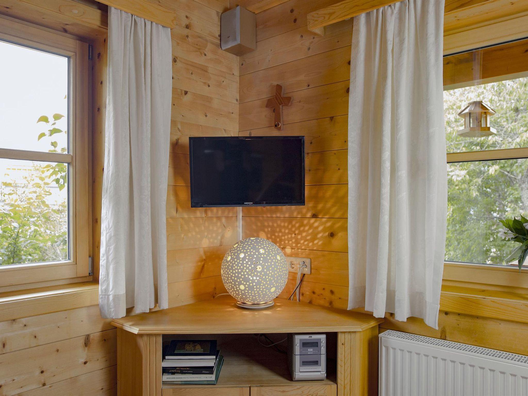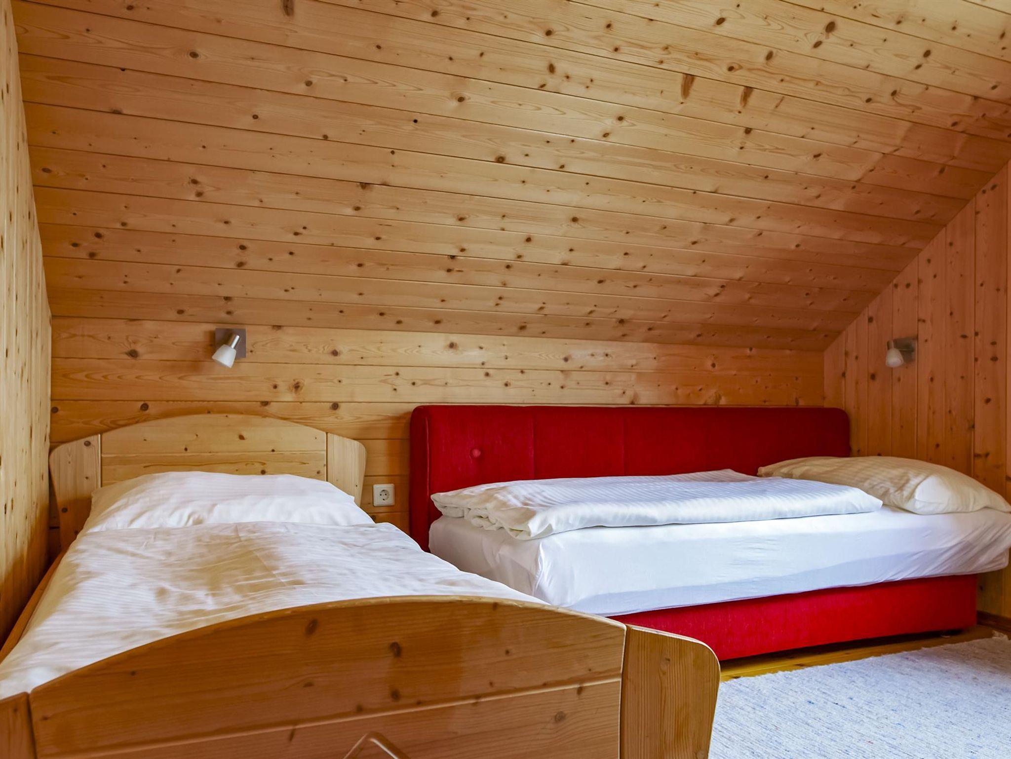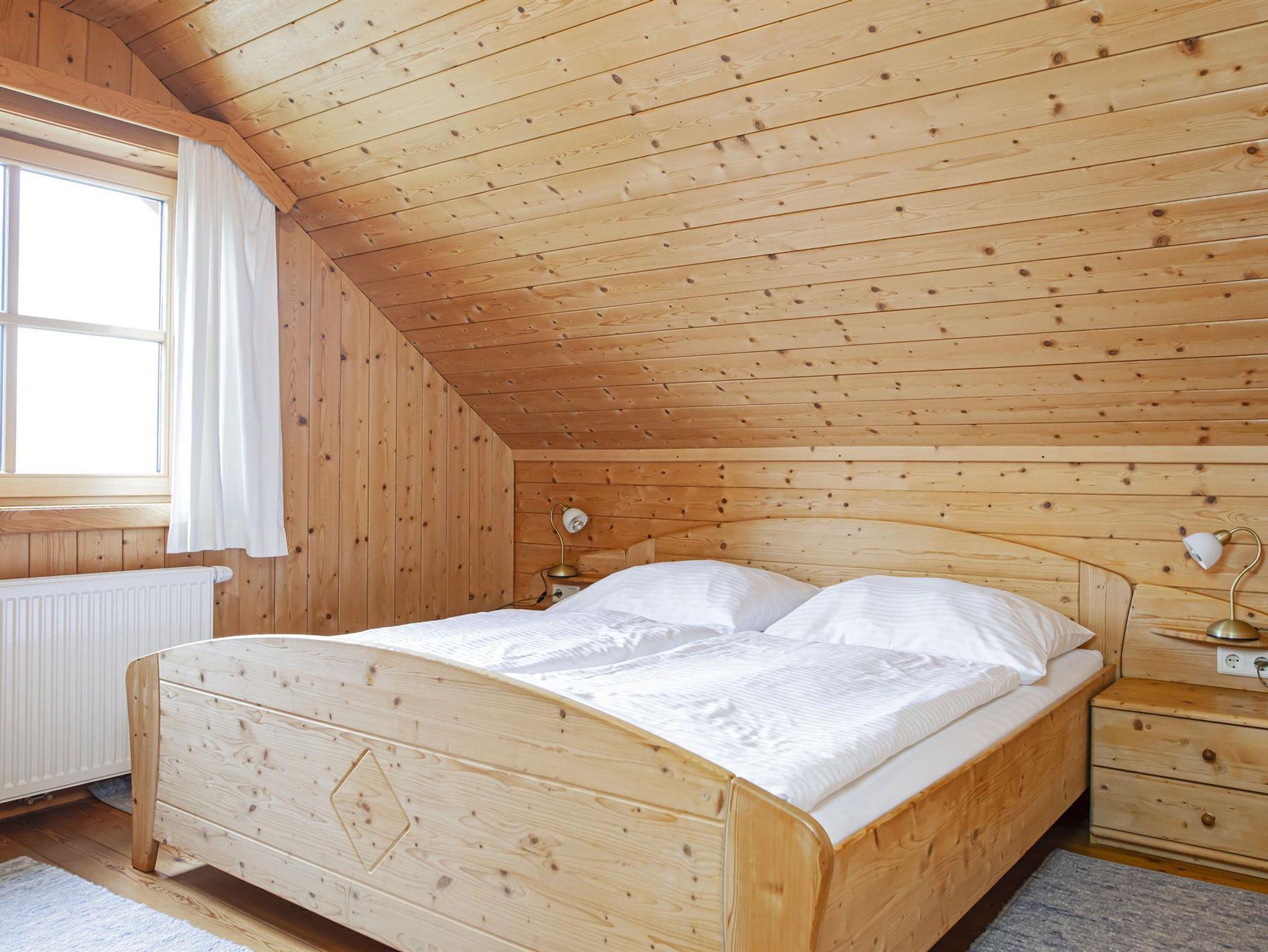 Im 1. Stock befinden sich 2 Schlafzimmer mit Vollholzmöbel, ein Badezimmer mit Handtüchern, Fön, separatem WC und Infrarotsauna.