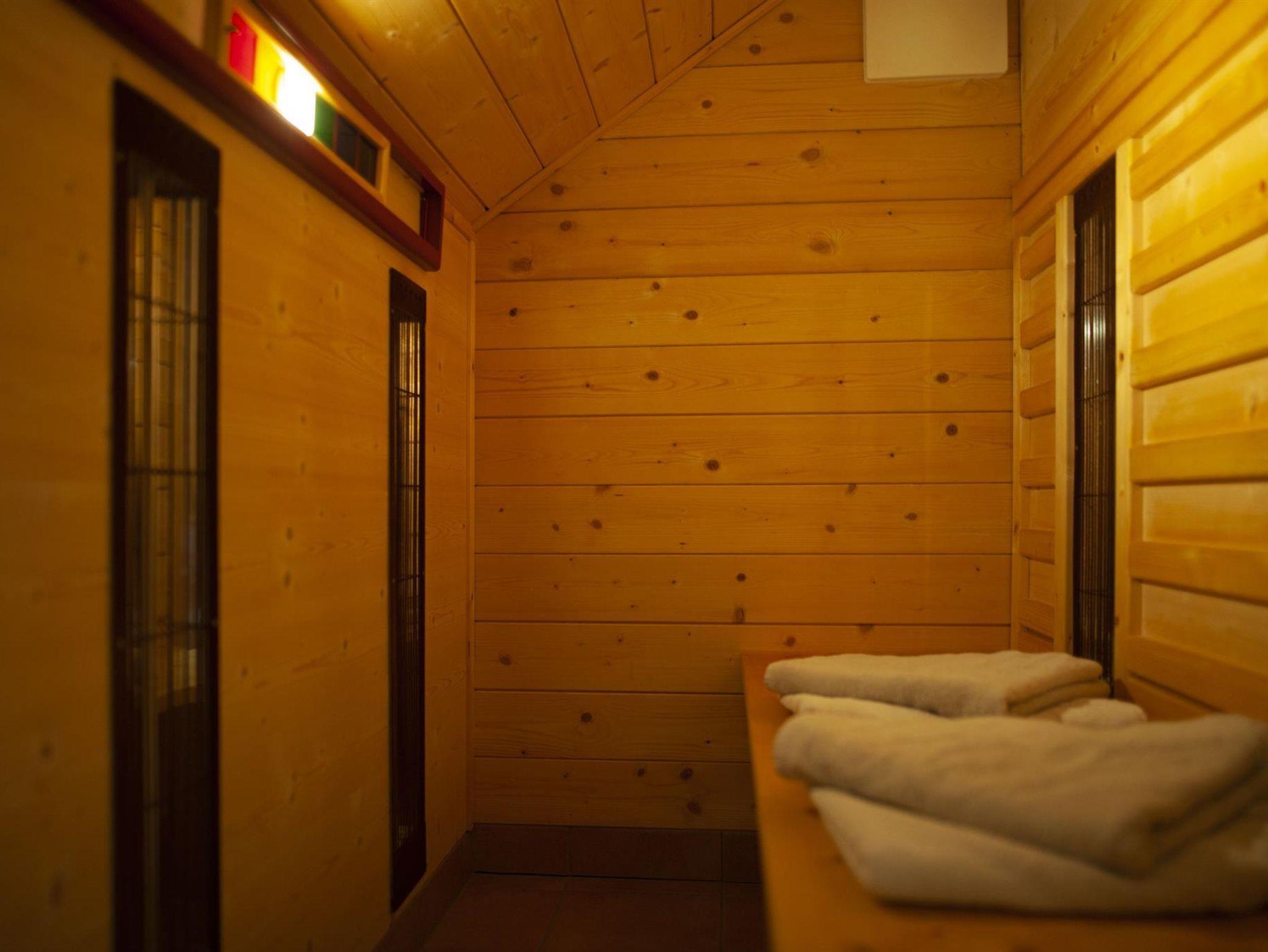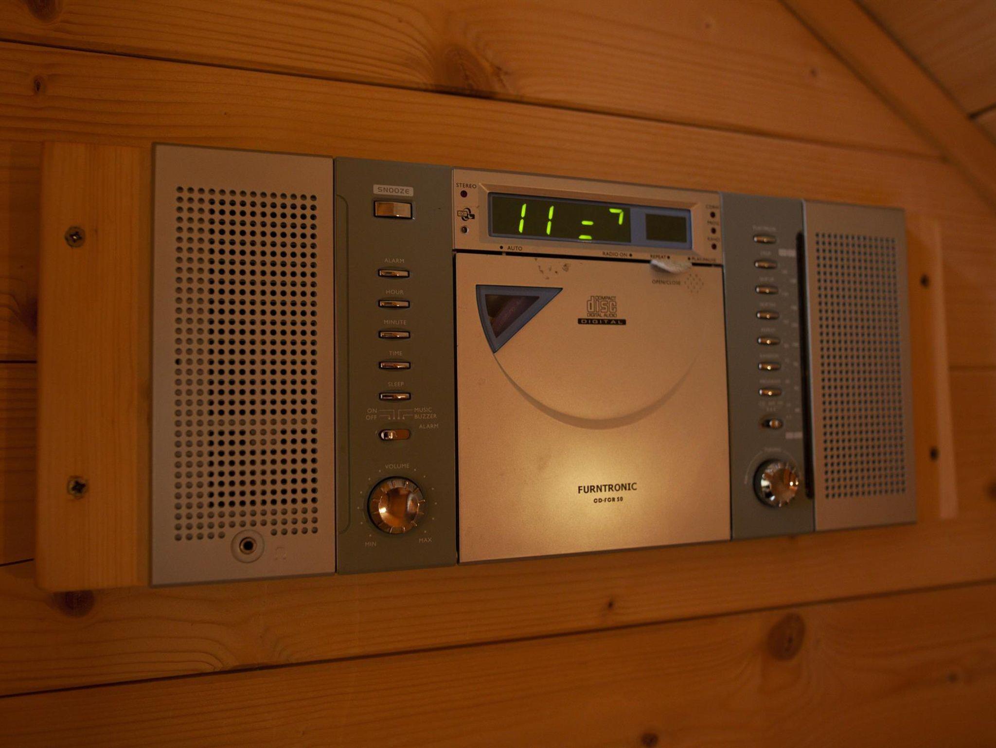 Die geräumige Infrarotsauna ist mit Hi-Fi und CDs mit Entspannungsmusik ausgestattet.
