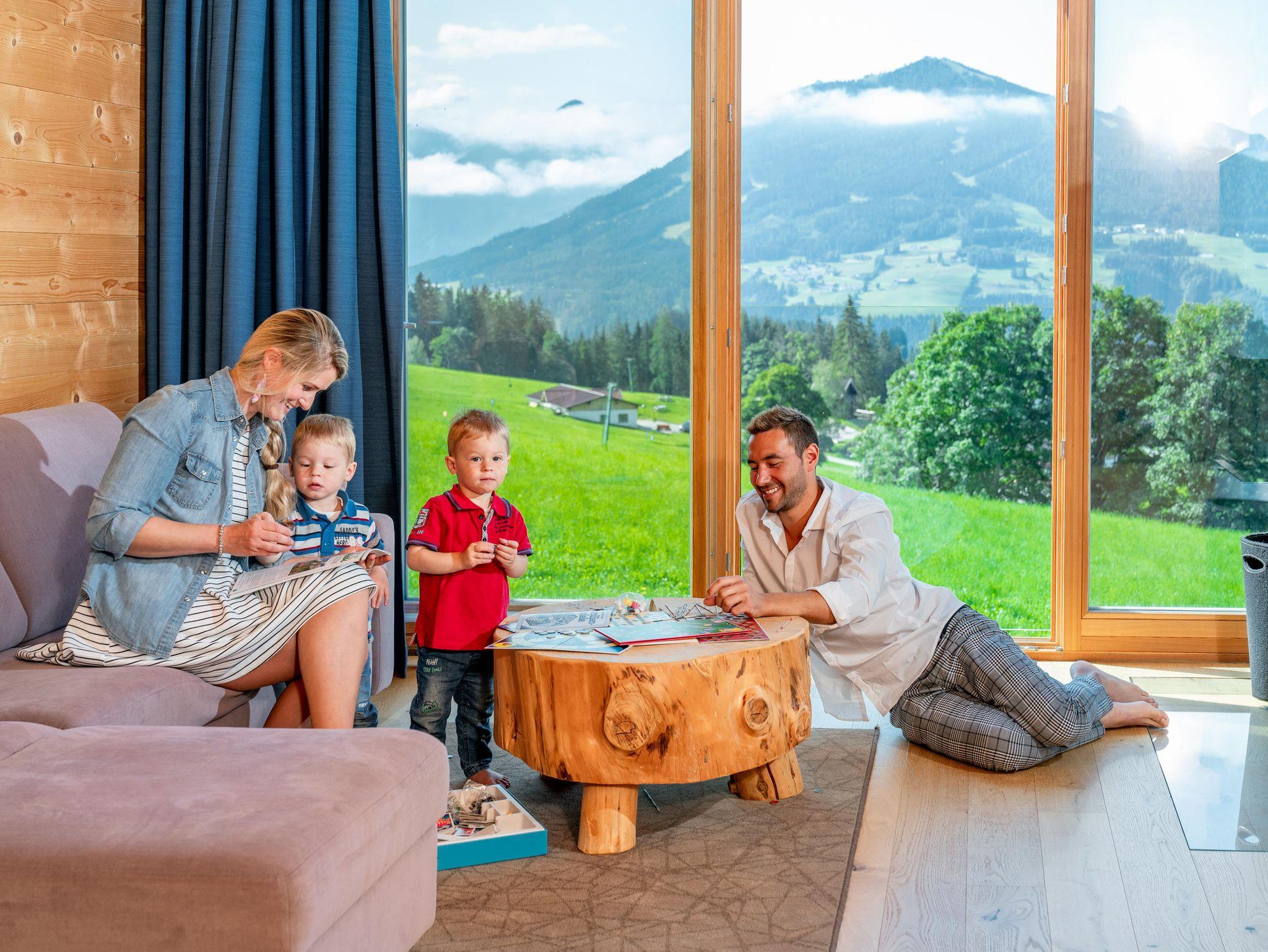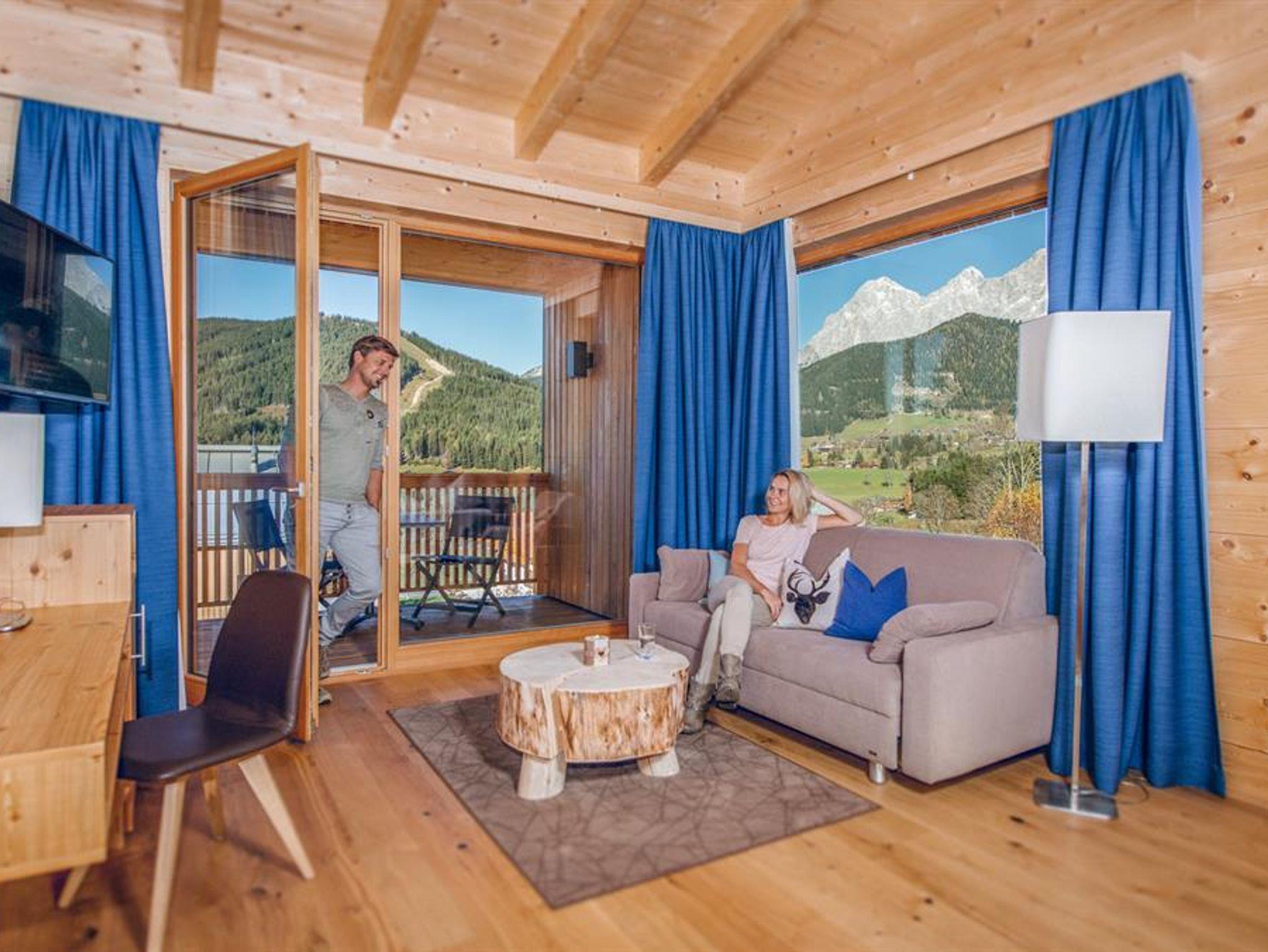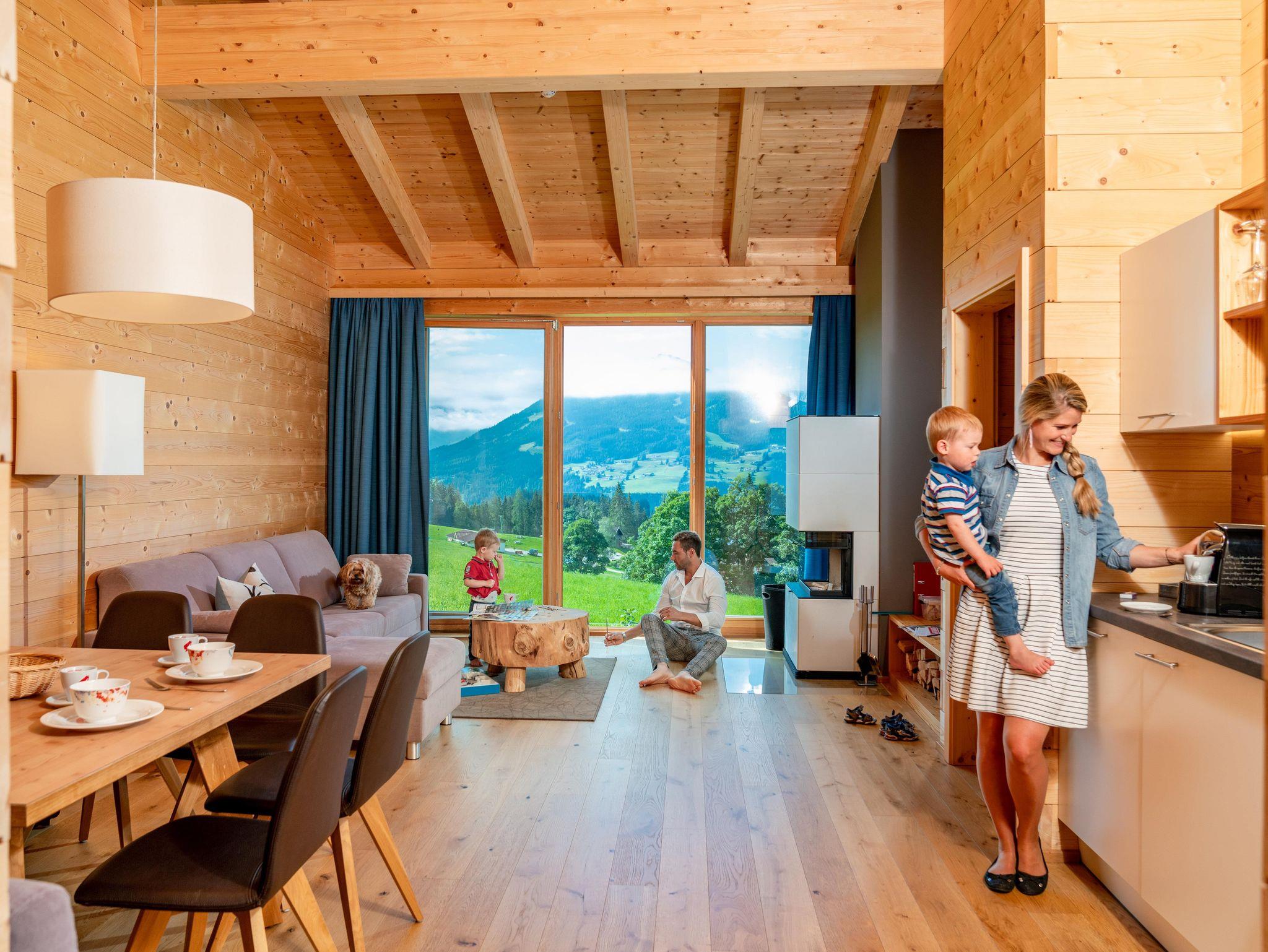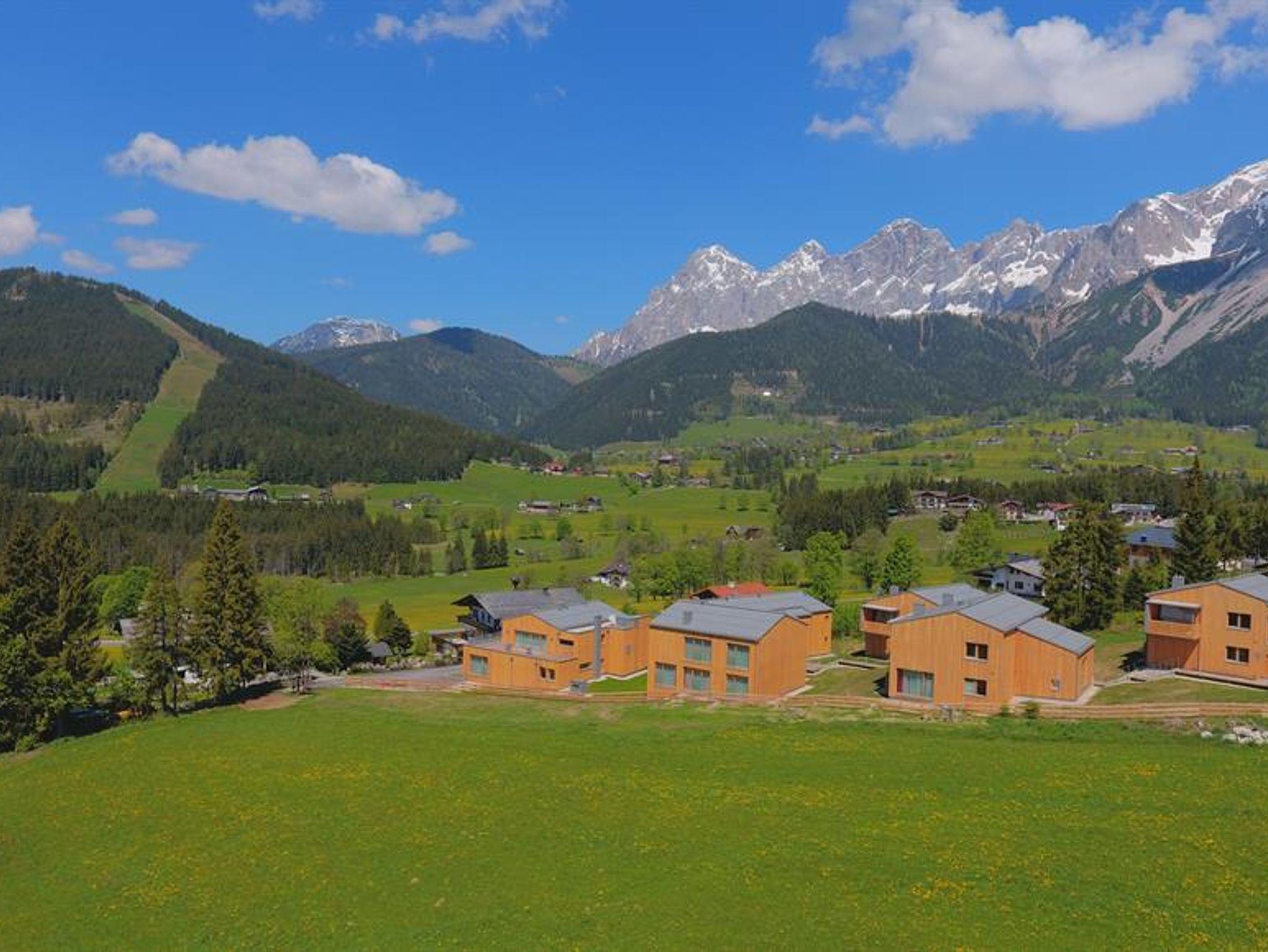 Wohlfühl Appartements am Fuße des Dachsteins. Insgesamt stehen 15 neue und modern eingerichtete Appartements für 2 - 8 Personen in unseren Naturholz-Chalets im Ortsteil Vorberg zur Wahl. Jedes Appartement ist mit eigener, ca. 4m² Sauna und offenem Kamin ausgestattet. Zusätzlich bieten wir geräumige Doppelzimmer mit Schlafcouch (38m²) mit tollem Frühstücksbuffet, großzügige Familiensuiten mit 2 Schlafzimmern (102m²!), ein Penthouse (116m²) und eine Wohlfühloase mit Finnischer Sauna, Zirbenholz-Ruhebereich mit Schaukelliegen, Vitalecke, Fitnessraum und Massageangebot an!