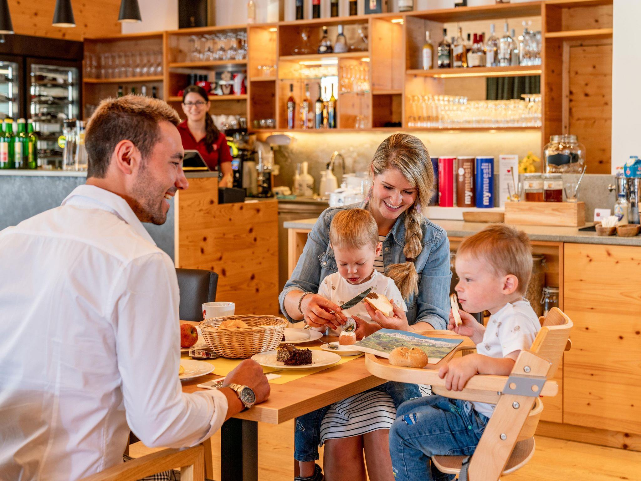 Ein tolles Frühstücksbuffet erwartet unsere Gäste (für Appartements zubuchbar) im gemütlichen Frühstücks-Restaurant. Ob bewusst mit frischem Obst, herzhaften Eiergerichten oder frischem Fisch sowie regionalen Produkten - die perfekte Ausgangslage für einen aktiven und ereignisreichen oder gemütlichen und erholsamen Tag. Für kulinarische Genüsse sorgen die Partner-Restaurants in der Umgebung!