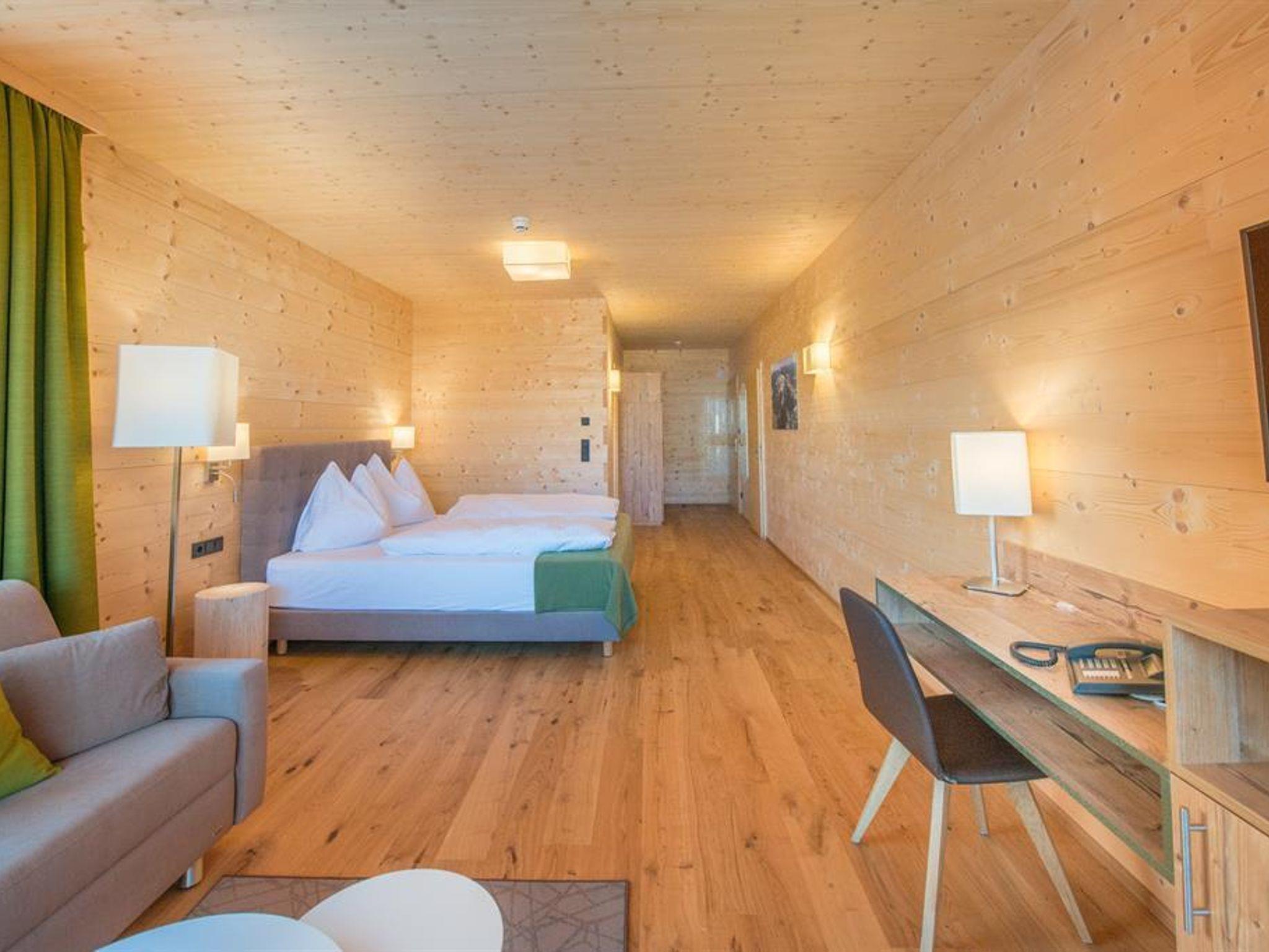 Zum weiteren Komfort zählen eine Parkgarage mit E-Tankstelle, individuelle, beheizbare Depots fürs Sportequipment und eine Tages/Cafe/Bar mit Bier vom Faß und schönen, österreichischen Qualitätsweinen - die gibt's zu attraktiven Vinothekpreisen auch zum Mitnehmen für den Genuß am Zimmer oder im Appartement! Rasant durch die Berge und Täler geht es mit den Leihmountainbikes oder mit den Leih-E-Mountainbikes!