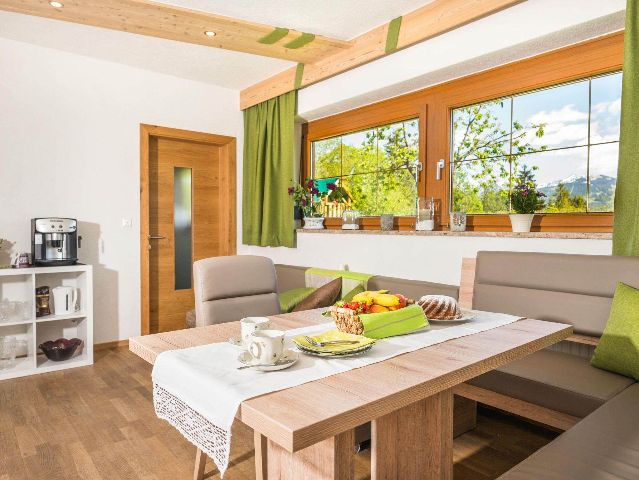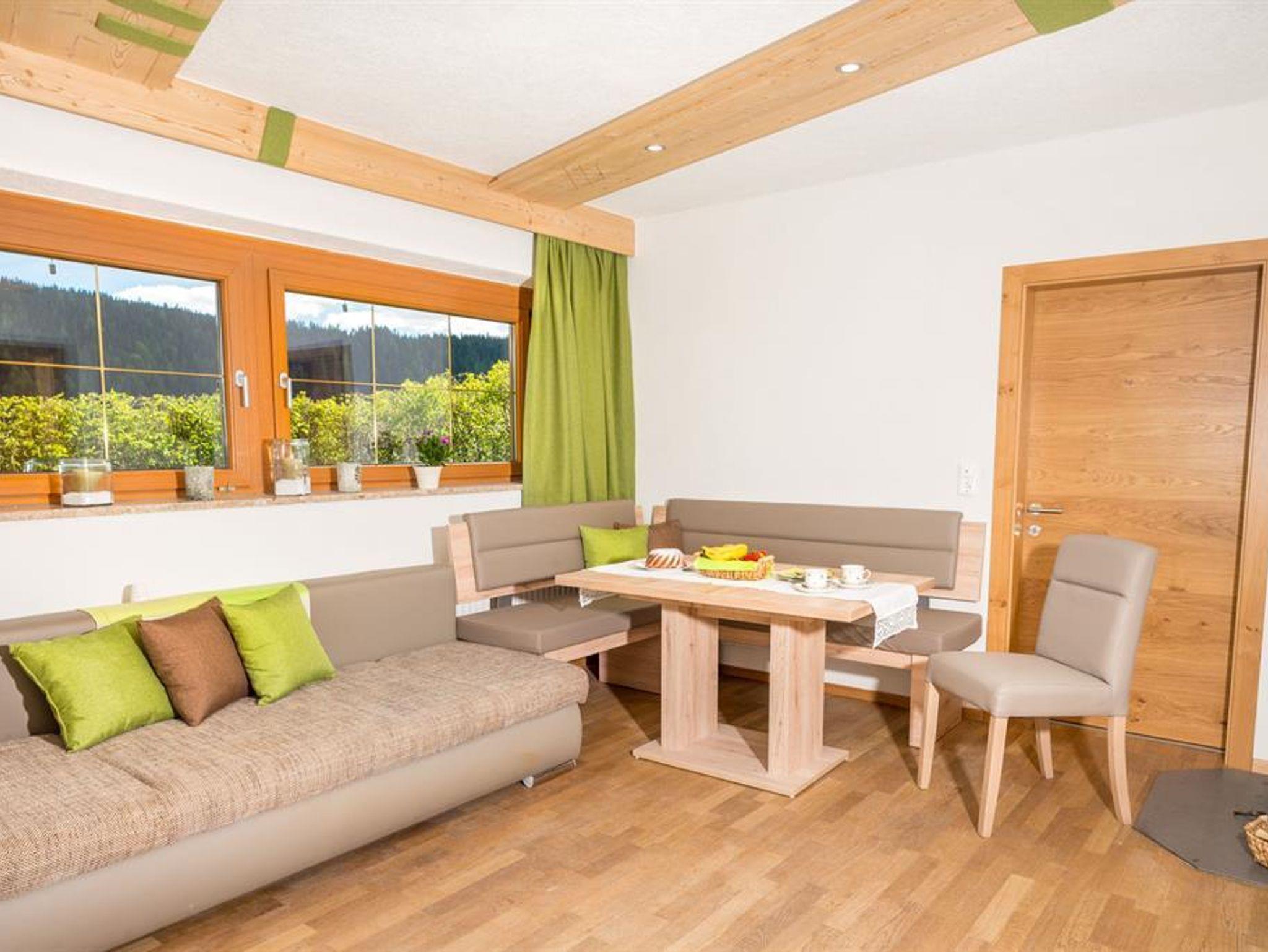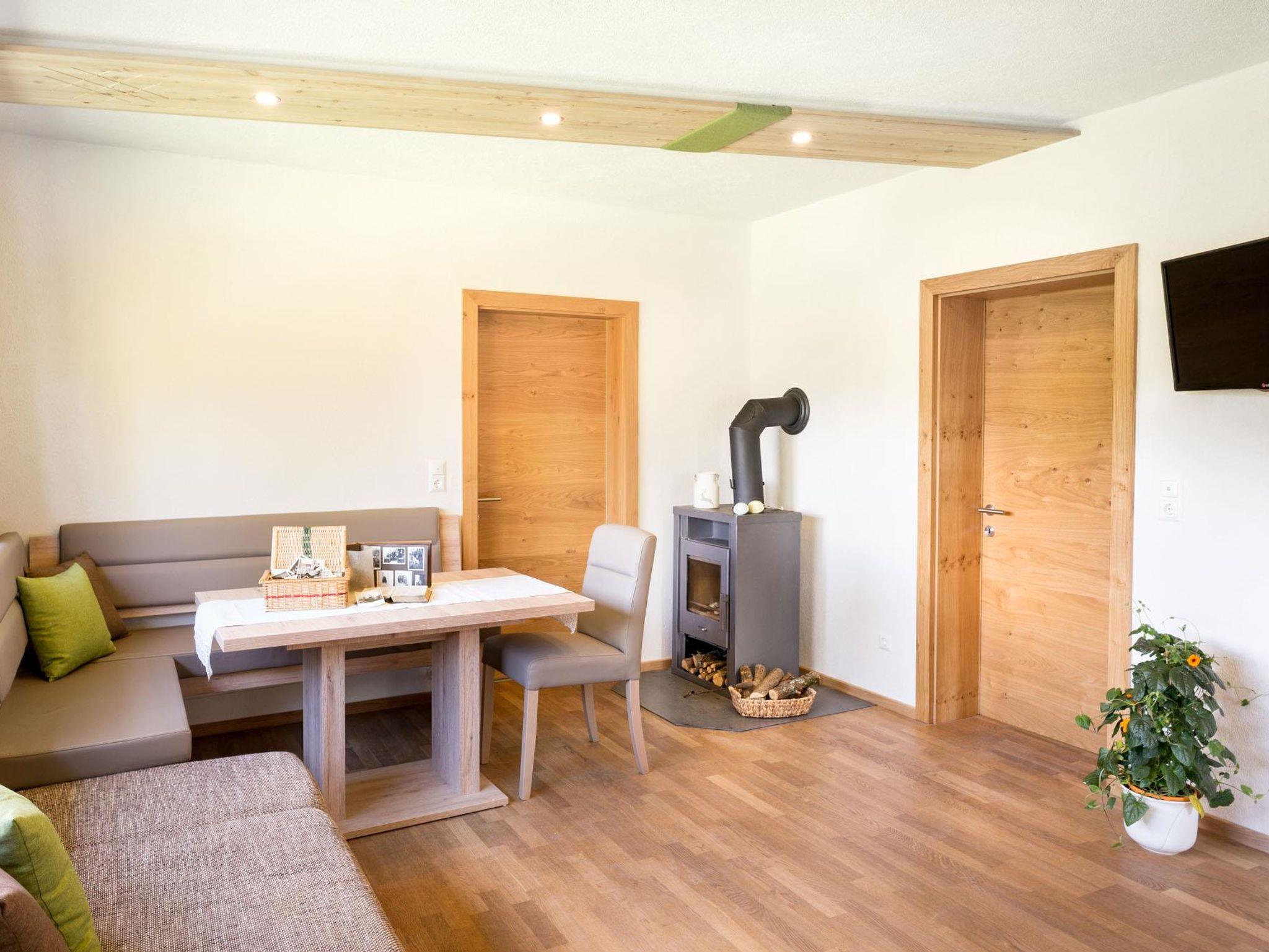 Das helle, geräumige Appartment ist südseitig ausgerichtet. Schalten Sie richtig ab und vergessen Sie Ihren Wecker. Lassen Sie sich einfach von den ersten Sonnenstrahlen und Vogelgezwitscher wecken! Genießen Sie ihr Frühstück mit herrlichem Ausblick auf die Schladminger Tauern. Im gemütlichen Wohnzimmer mit Couch, Esstisch und FlatTV lassen sich unvrergessliche Urlaubsabende am Holzofen verbringen.