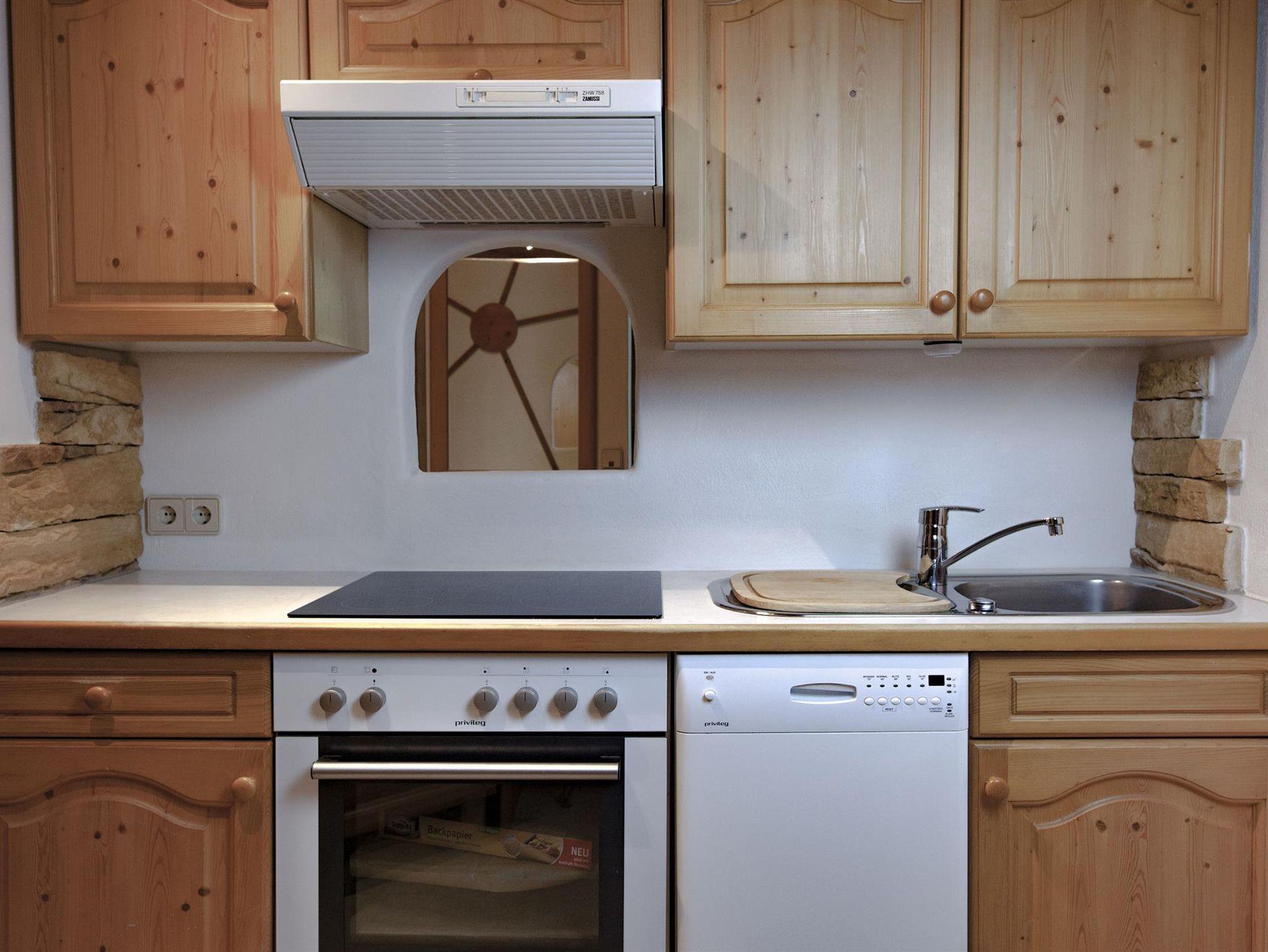 Der geräumige Vorraum mit Garderobe führt zu einer komplett eingerichteten Küche mit Geschirrspüler. Wohnzimmer mit gemütlicher Sitzecke, Flachbildschirm und Hi-Fi, Lärchenholzböden im Wohnbereich.