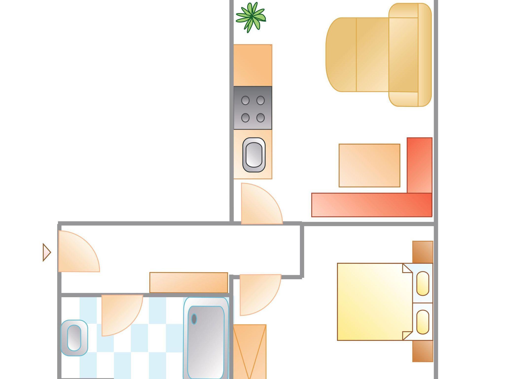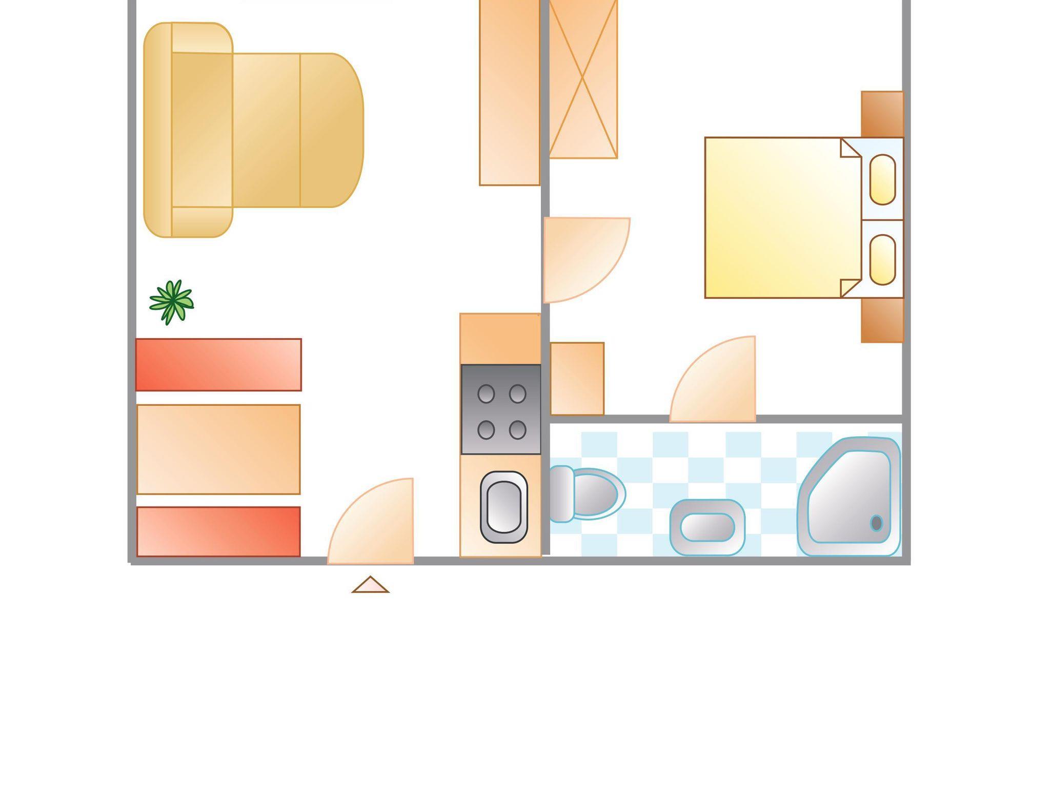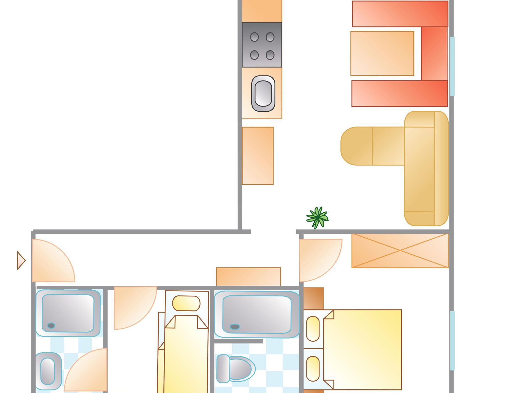 Die Wohnung (50m²) besteht aus einem Schlafzimmer, Wohnschlafzimmer, Dusche/WC, Vorraum, komplett eingerichtete Küchenzeile, Backofen, Mikrowelle, Geschirrspüler, Telefon, Kühlschrank, Sat TV und Balkon.