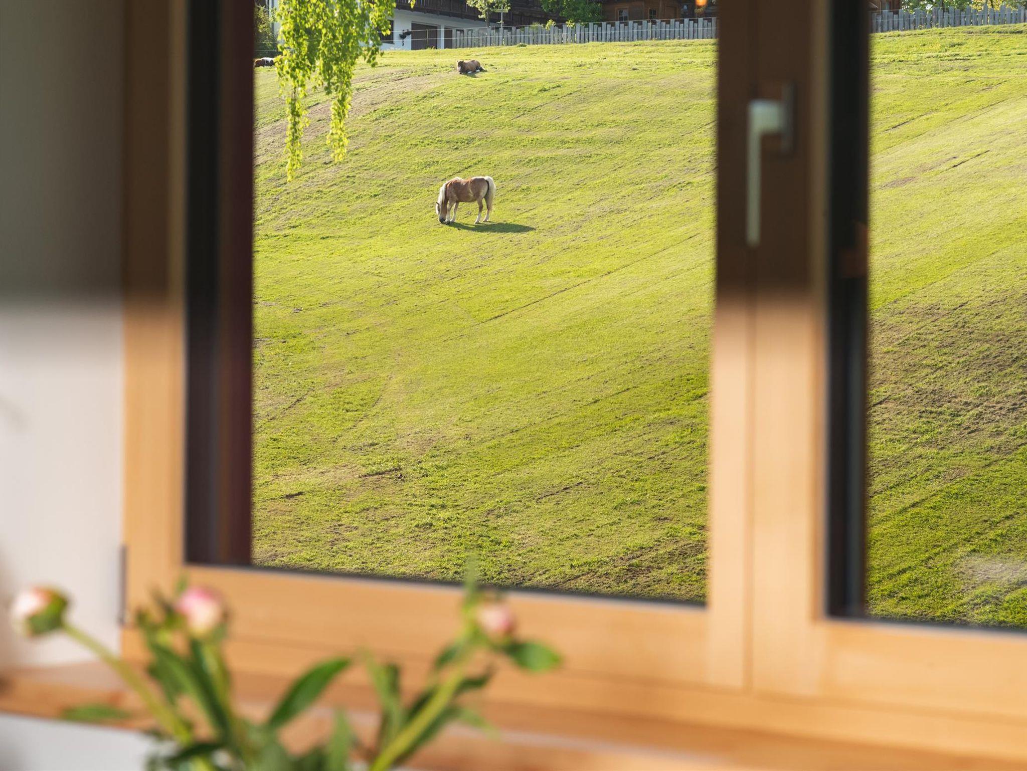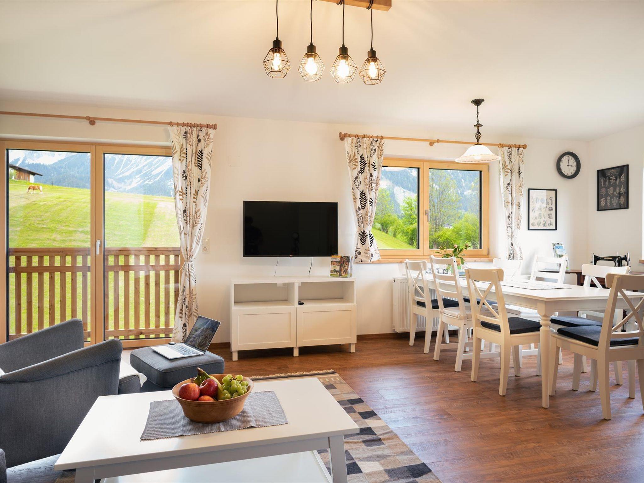 Wir bieten Ihnen ein sehr geräumiges und gemütliches Appartement, das komplett und mit viel Liebe ausgestattet ist. Die atemberaubende Aussicht und die lichtdurchfluteten Räume laden zum Ausruhen und Erholen inmitten der wunderschönen Region Schladming-Dachstein ein. Pferdefreunde aufgepasst: unsere familienfreundliche Ferienwohnung liegt in unmittelbarer Nachbarschaft zu einem der größten Reiterhöfe in der Ramsau! Tanken Sie in ruhiger Lage auf und genießen Sie trotzdem den Luxus in kürzester Zeit (8 Fahrminuten zur Planai...)Mitten im Geschehen zu sein. Im Winter führt die Langlaufloipe direkt am Haus vorbei und die Bushaltestelle ist nur wenige Gehminuten entfernt. Unsere Sommergäste profitieren selbstverständlich in vielfältiger Weise von der Sommercard! Freuen Sie sich auf einen entspannten Urlaub mit hohem Wohlfühlfaktor!