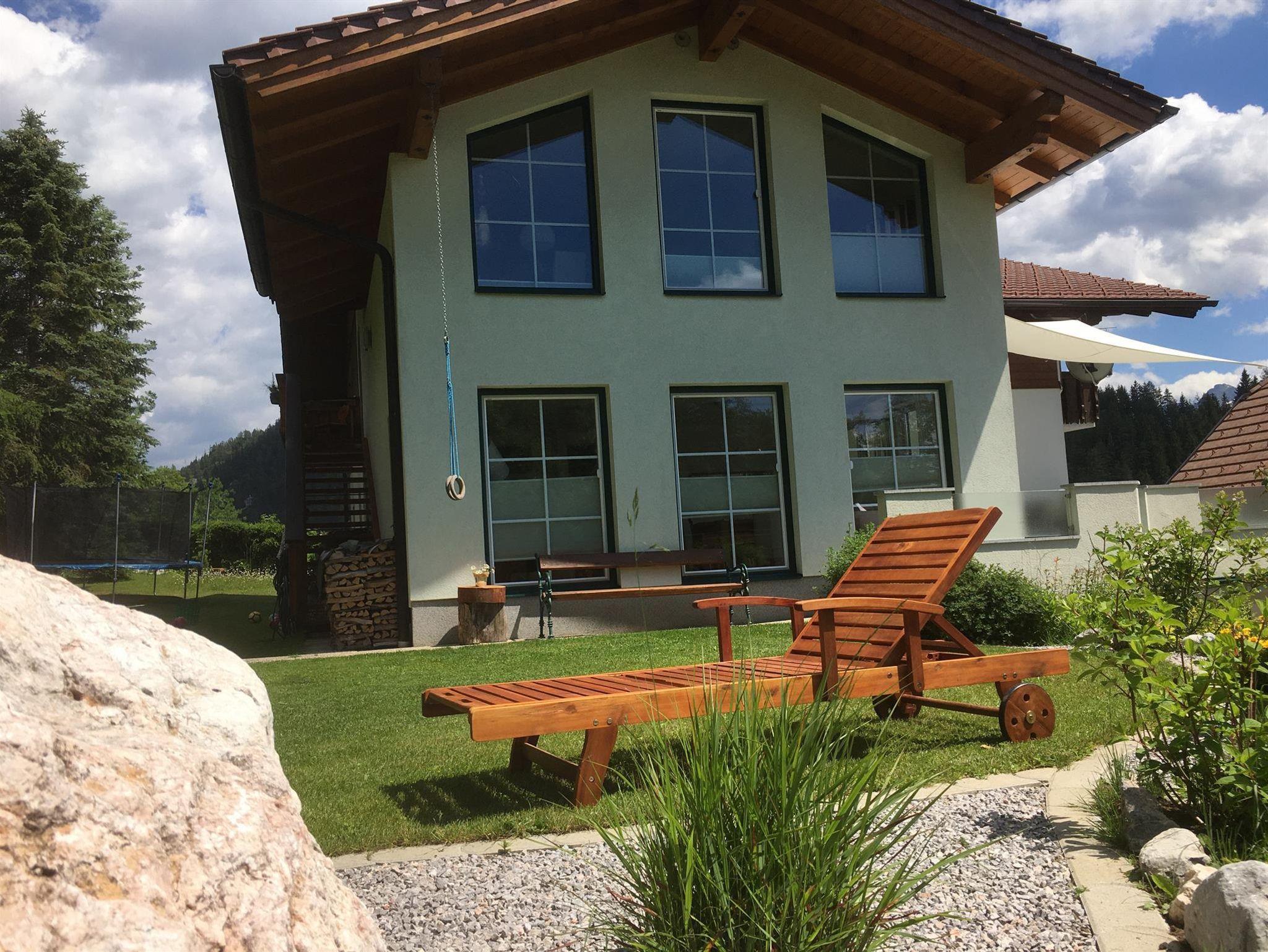 Das liebevoll eingerichtete Appartement Finis befindet sich im 1. Stock unseres Einfamilienhauses, besticht durch das großzügige Raumangebot mit fast 90 m² und bietet Platz für bis zu 3 Personen. Ein heller, offener Wohnbereich mit komplett ausgestatteter Küche, Esstisch, gemütlichem Wohnraum mit Kachelofen und komfortabler Wohnlandschaft mit großen Fenstern sowie eigenem Gartenzugang ermöglichen einen herrlichen Ausblick auf das Bergmassiv. 1 Schlafzimmer mit Umkleide, Badezimmer mit Dusche/WC sowie Vorraum stehen den Gästen zur Verfügung.Zudem verfügt das Appartement über einen separaten Eingang, eigener Parkplatz sowie Ski- bzw. Bikeraum.