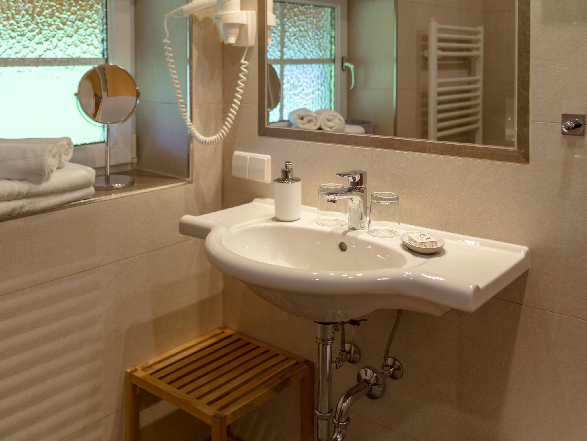 - 2 Badezimmer mit Föhn und Kosmetikartikel