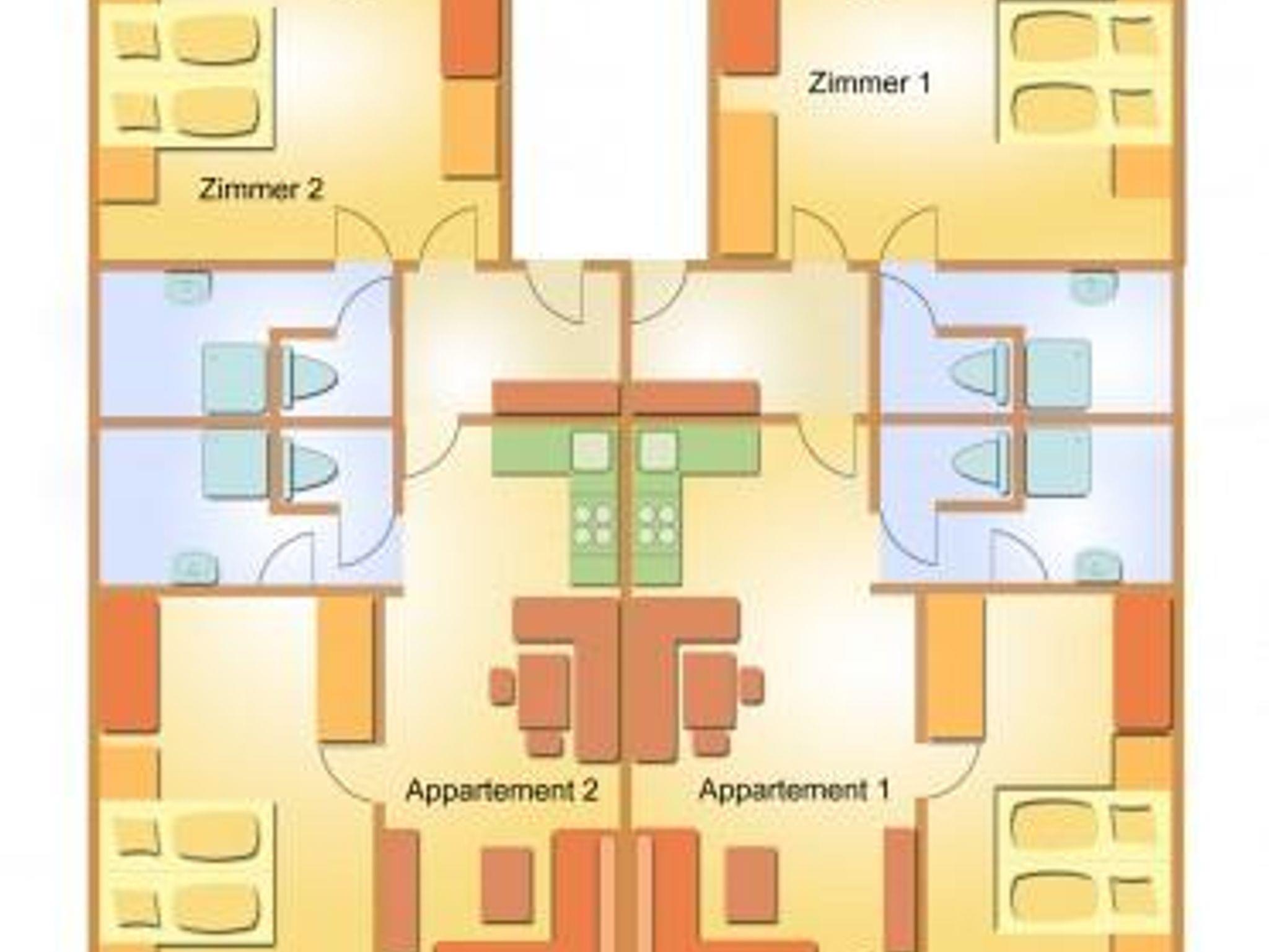 Großes Appartement mit 2 getrennten Schlafzimmern, sehr beliebt bei Familien.