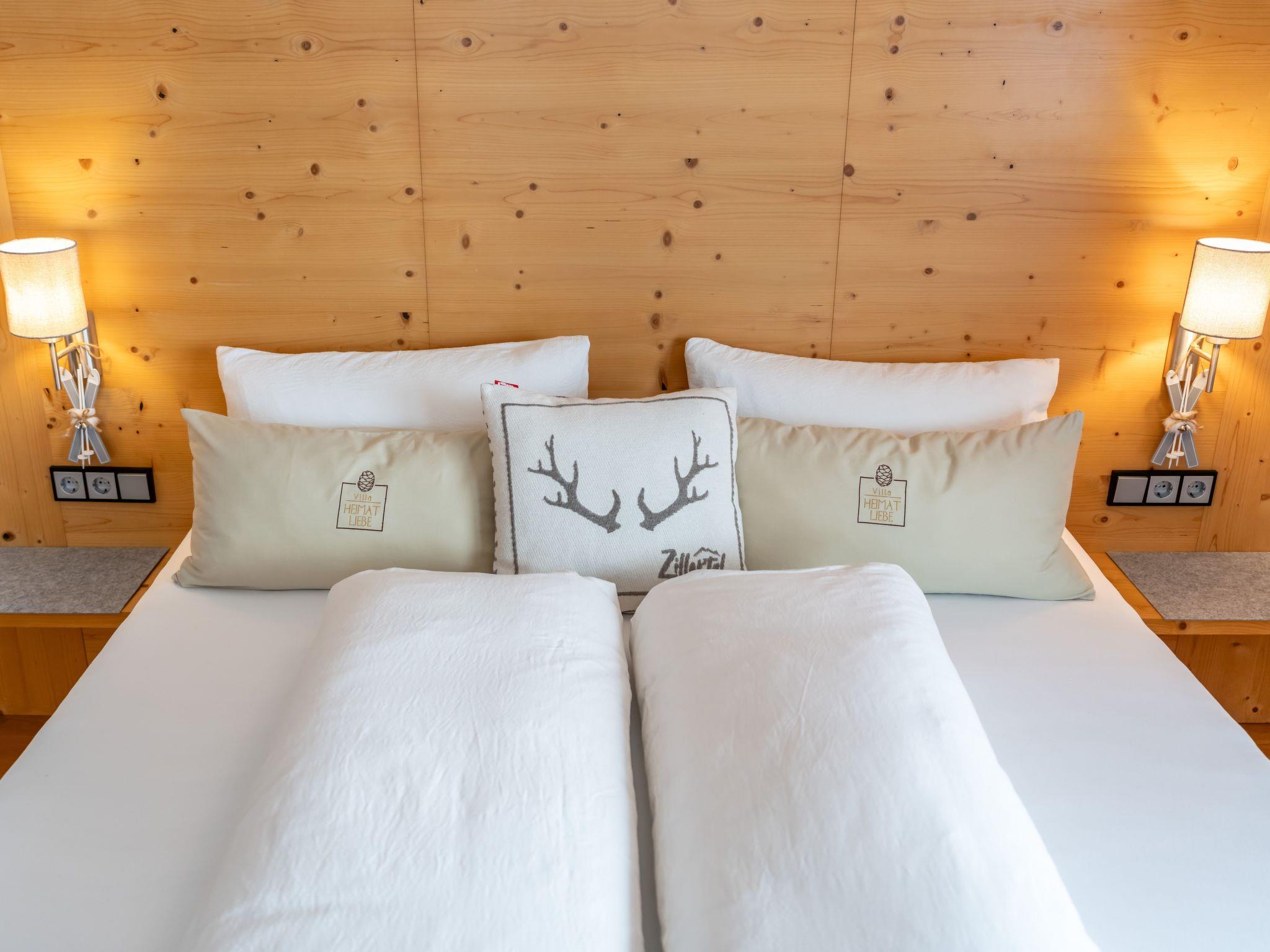 A holiday home in absolute hotel quality and all to yourself. A fenced garden of approx. 500 m² is part of the holiday paradise. You live on 250 m² over 3 floors. The villa has a 60 m² living room with adjoining conservatory, dining table and cosy sofa and lounge furniture for relaxing. 6 bedrooms, 2 bathrooms, 2 separate toilets and a fully equipped kitchen. In the basement there is a small spa area with Finnish sauna, shower and WC. There is also a relaxation room and a billiard room. You can reach the ski and bike depot directly from the car park at ground level. Mountains as far as the eye can see. This awakens the desire to experience this marvellous natural landscape with all your senses. An active holiday in the Zillertal is just what you need. Set off to the Villa Heimatliebe. Surrounded by lush green alpine pastures, pure mountain air and the indescribably beautiful mountain landscape of the Zillertal Alps, you will experience unforgettable moments in nature. Thanks to the wide range of activities on offer, such as hiking and climbing tours, Nordic walking or walks, you will always find something here to make your holiday entertaining. And if you don't feel like hiking, why not lie down in a deckchair and enjoy the magnificent mountain views from the garden? Bike paradise Zillertal The magical power of the mountains can also be felt on a bike. From a mountain bike you can experience nature from a completely different perspective, but this does not detract from its fascination. The tranquillity around our house is our strength...and it also strengthens you Magical Alpine views ...a unique panorama, in front of you, the Ahornplateu, Grünberg, Penken, Rastkogel, Zillertaler Höhenstraße on the Melchboden ... Inspiration from nature The garden world You have probably the most fascinating distant view of the Zillertal Alps from your private garden, where our 500 m² garden is located. Here on the sunbathing lawn you can let your thoughts wander, relax your mind, breathe in the fresh air and find the inner peace you have always longed for.
