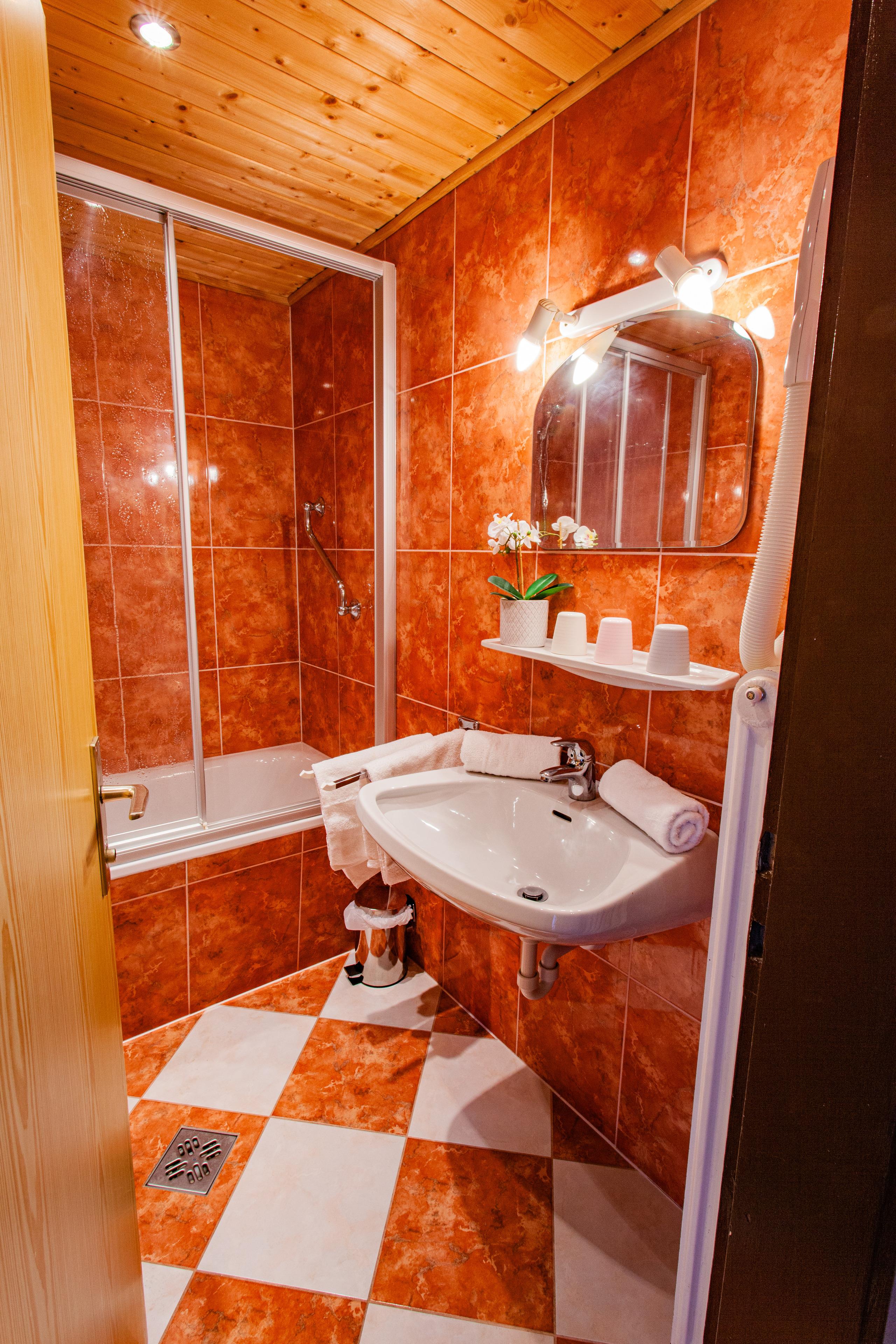 Badeværelse med bruser og badekar